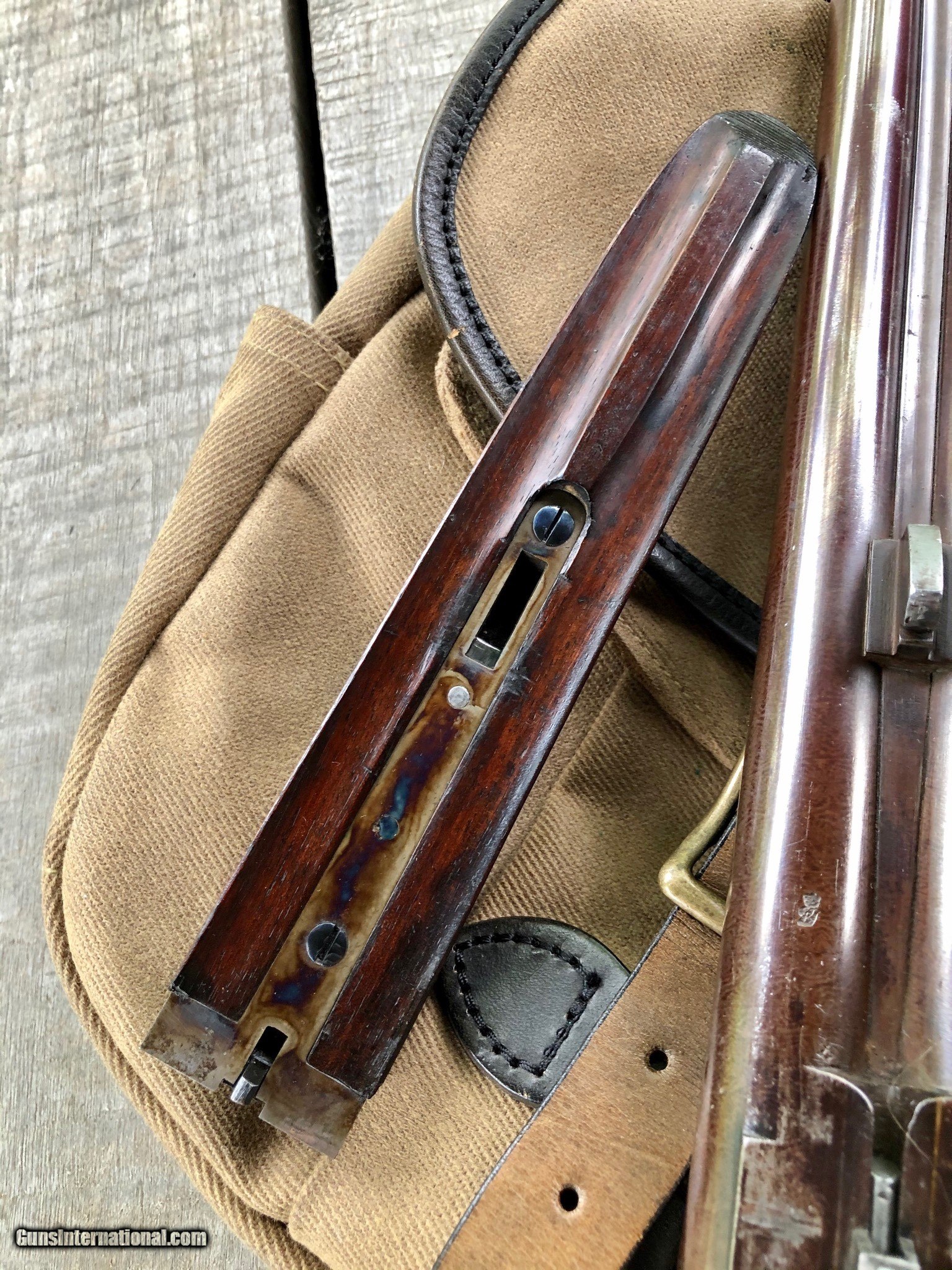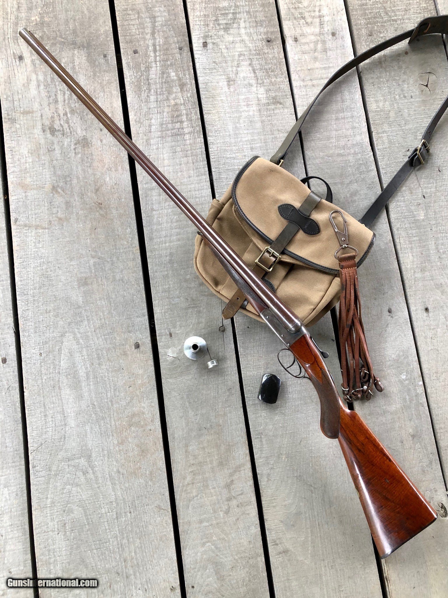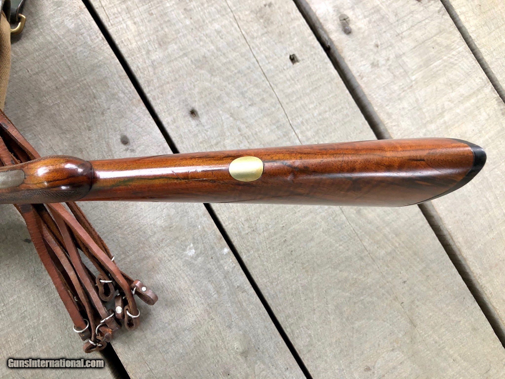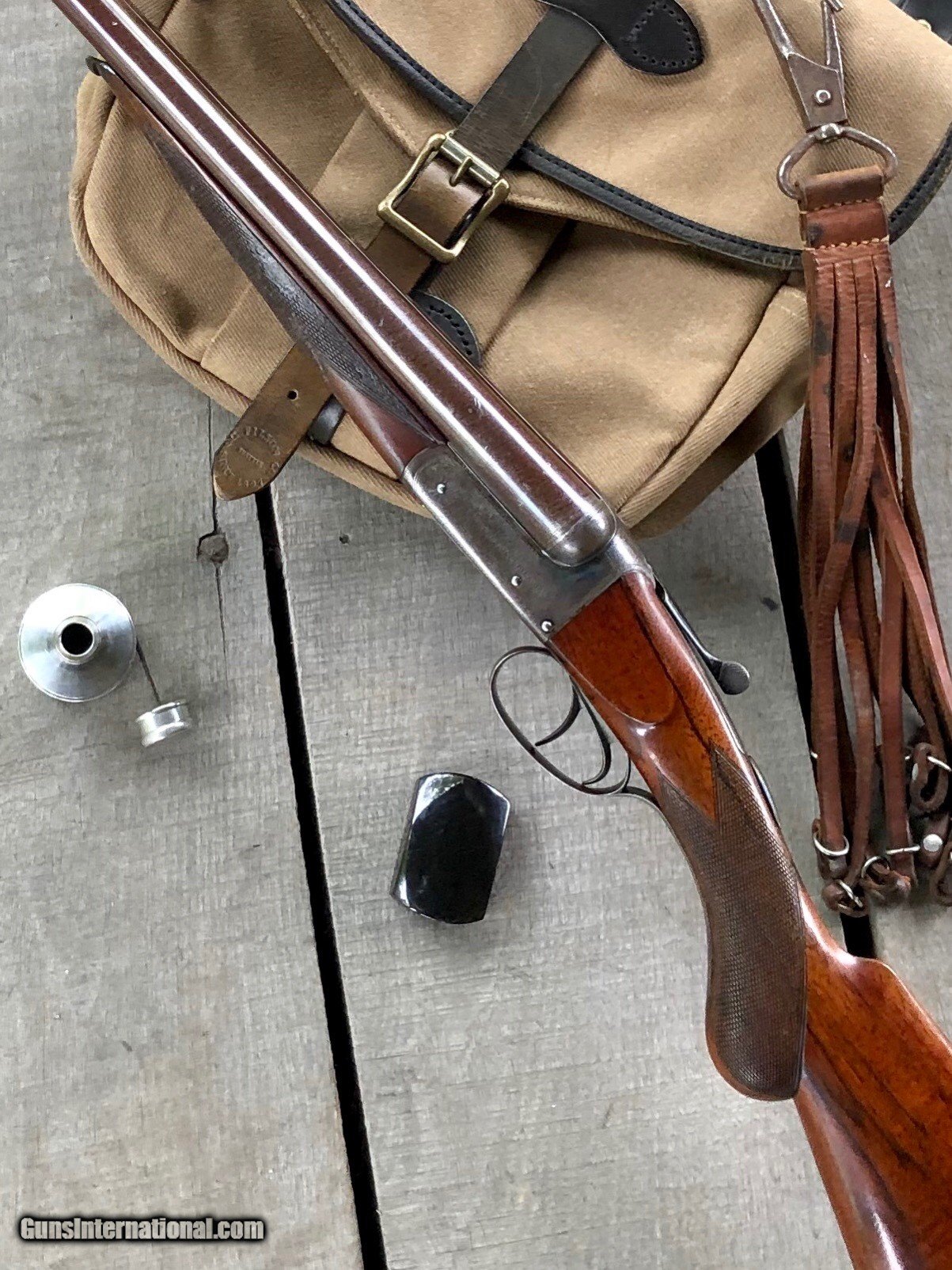 Description: A very good lightweight Lincoln Jeffries Jnr boxlock double 16 bore nitro proofed damascus sporting gun. I love the beauty of Damascus barrels but with the functionality of nitro proofing! This lovely little Anson & Deeley boxlock gun has a diminutive frame and wrist. It weighs just 5lbs 14ozs. The beautiful Damascus barrels are 30" long, have mint bores, cylinder on the right and the left choked light modified or, as the English put it, between 1/4 and 1/2, 2 1/2" chambers, and are nitro proofed. The barrels are fast to the gun with double lumps and grips and a rib extension cross-bolt similar to Greener's Wedge-fast. The configuration is thus similar to Greener's patented Treble Wedge-fast or Facile Princeps but it is an Anson & Deeley action with a cross-bolt. The gun has extractors but no ejectors. It is stocked in a Prince of Wales fashion in English walnut showing considerable curl at the butt and some interesting dark streak graining throughout, particularly through the left side of the wrist making one wonder if the wrist has been broken and repaired. It has not. The fine flat top checkering is in near excellent condition at the wrist but could stand to be freshened on the forearm. The stock has the usual bumps and bruises. The butt plate is horn. Lincoln Jeffries Jnr was in business at 120 Steelhouse Lane in Birmingham from 1917 to about 1939 making this a late Damascus barreled gun but again, it is nitro proofed. If your looking for a light and lively English side-by-side bird gun with beautiful Damascus barrels but nitro proofed to take to the field, this gun should be a contender. SOLD Curio/Relic: Yes Manufacturer: Lincoln Jeffries Jnr Model: double 16 bore sporting Serial Number: none Bore: 16 Chambers: 2 1/2” Ejectors: none Condition: very good Bore Condition: mint Barrels: Damascus Barrel Type: Damascus Action: Anson & Deeley Triggers: double Gauge Info: 16 Stock: English walnut Stock Drop: 1 3/4” Stock Heel: 2 9/16” Stock Cast: for right hand shooter Butt Pad: horn LOP: 14 1/4 Rib: game Weight: 5lbs 14 ozs Sights: brass bead Manufacture Date: 1917-1939 Choke Left: light modified or between 1/4 and 1/2 Choke Right: cylinder Extras: nitro proofed Damascus barrels Proof:Nitro: yes |