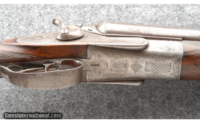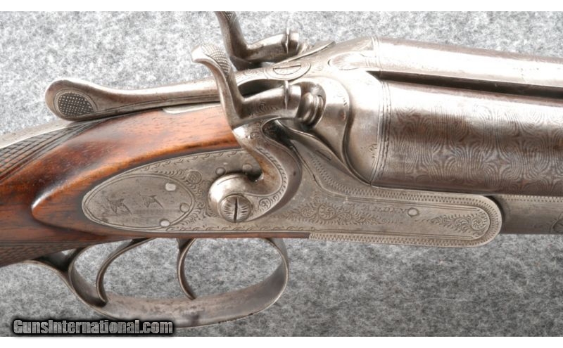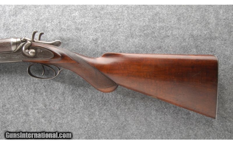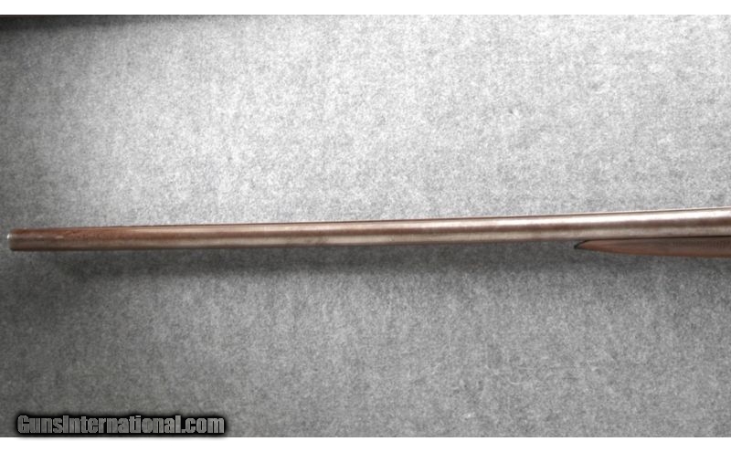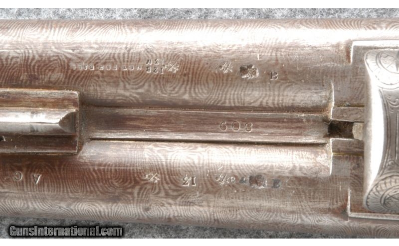 Description: SOLD Antique: Yes Manufacturer: 1880'S Caliber Info: 12 GA Chambers: 2 3/4" (most likely lengthened from 2 1/2") Metal Condition: Receiver has silvered with age, barrels show full damascus pattern, no visble rust or pitting Wood Condition: some small dings on buttstock, otherwise very clean Bore Condition: Bright and shiny Barrels: 30 Triggers: Double trigger Stock Dimensions: 13 1/4 LOP 2"DAC 3" DAH Butt Pad: Factory metal butt plate Sights: Brass Bead Chokes: Skeet 1/ Skeet 2 (relieved from original dimensions) Extras: Proof marks show that the bores were originally .719, They appear to have been opened up to .738/.736. Due to changes in bores and chokes gun is most likely no longer in proof. Item Location: Columbus, OH |