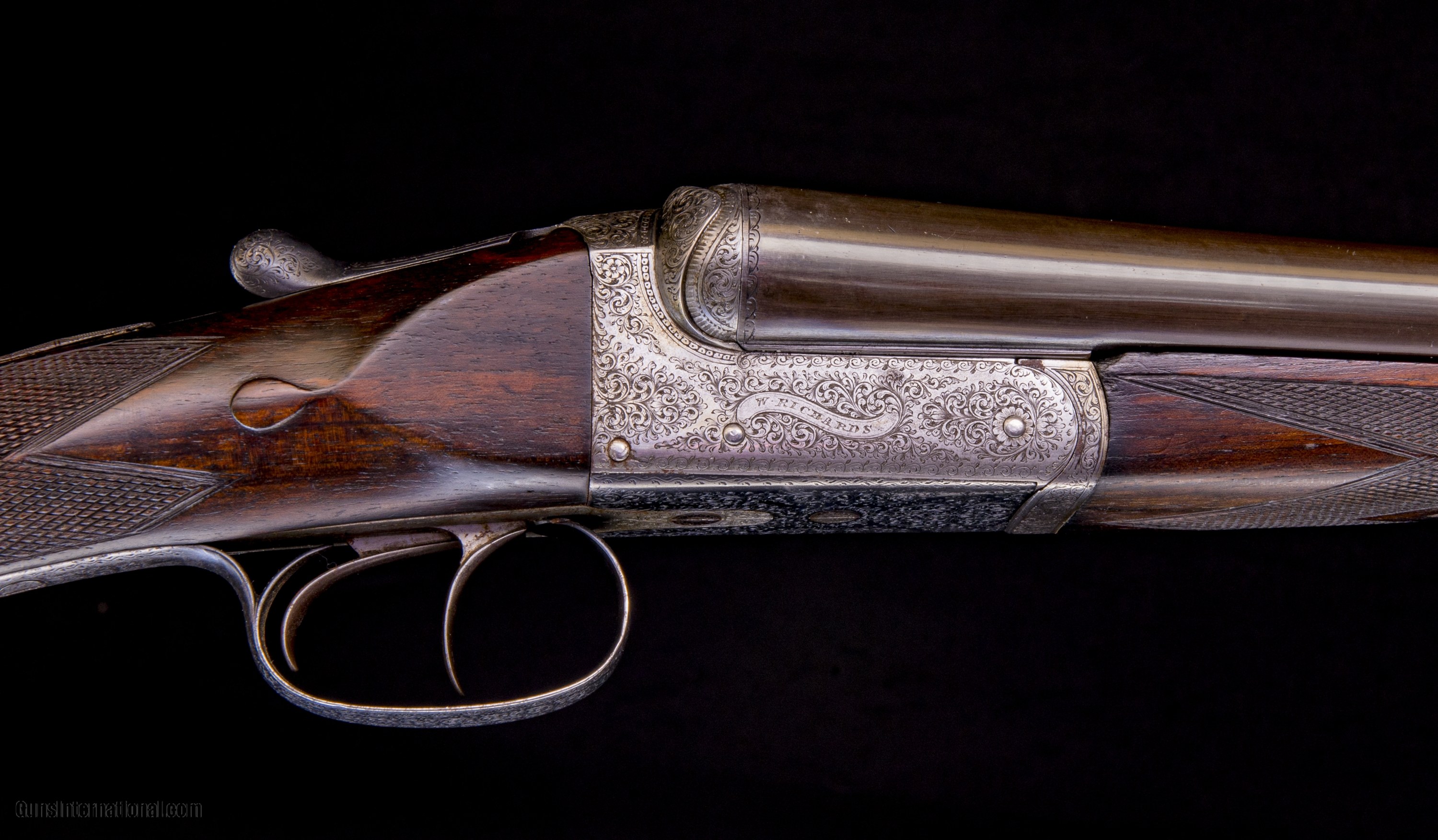 Description: Boxlocks - High modern stock dimensions on this antique! The barrels are tight to the action and the bores are clean. I love this style of high-grade period engraving with their sculpted fences. The wood is not hard to look at. *William Richards here in America is often confused with Westley Richards of Birmingham. William was in Liverpool and no way ever wanted to play off the more famous maker\'s name. *Built in 1898. *** Note: To see this gun with high resolution photos and a zoom-in feature, go to the vintagedoubles main site and search for the gun ID: 5741 or browse the main site to see our full gun collection. |