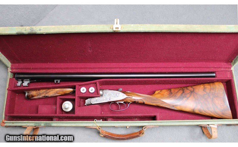 Description: Factory engraved William Atkinson & Sons Sidelock Double Barrel shotgun chambered in 20 Gauge. Estimated production between 1905 and 1925. London reproof marks from between 1954 and 1989 on the flats. 28-inch blued barrels with 2-3/4 inch chambers and ejectors along with fixed chokes that measure Improved Cylinder & Modified. Comes in a period canvas takedown case with oiler and snap caps. 20 Gauge SOLD Chambers: 2.75 inch Metal Condition: Professionally Restored Very Good with Minor Handling Marks Wood Condition: Very Good with Minor Handling Marks Bore Condition: Bright and Clear with No Pitting Barrels: 28 inch Triggers: Double Stock Dimensions: 14.75 inch LoP Butt Pad: Checkered Wood Sights: Silver Bead Front on Solid Rib Chokes: Fixed IC / M Item Location: Fort Worth, TX |