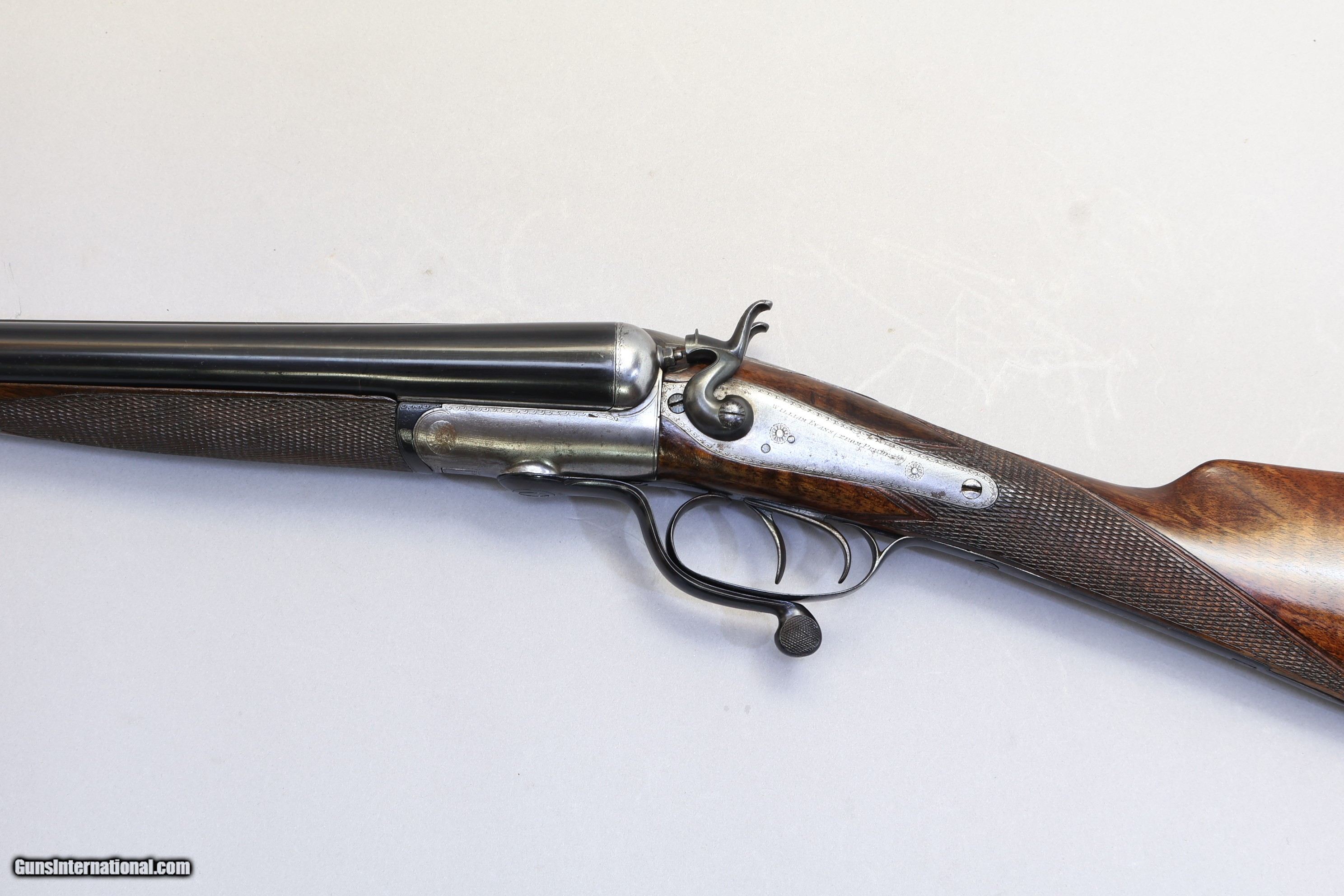 Description: William Evans (from Purdeys), Antique Hammergun, 12 Ga, 27 1/2" Barrels 2 1/2" Chambers | L: Full & R: IM | Barrels 27 1/2" | Overall Length 43 3/4" | Excellent Condition William Evans (from Purdeys) Antique Hammergun, 12 Ga, 27 1/2" Barrels is a standout example of classic English gunmaking. This top-lever, hammer-style firearm features a straight English stock and a solid rib, delivering timeless field performance and collector appeal. Rotary under-lever hammergun in excellent condition. The top rib reads "William Evans (from Purdeys) 4 Pall Mall St James London". The gun locks up tight as new, and the non-rebounding locks function crisply. Beautiful English walnut stock with a little varnish worn away. Checkering still sharp on stock, fore-end, and butt plate. Barrels in excellent condition, bar an insignificant little dent on the top rib. Brass bead sight. Dating to 1895 in United Kingdom, this hammergun features a Straight English stock with Neutral cast and LOP 14 1/4", DAC 1 3/4", DAH 2 3/8", and is chambered in 12 Ga with 27 1/2" smoothbore barrels and an overall length of 43 3/4". It is licensed for Pre-1899.
