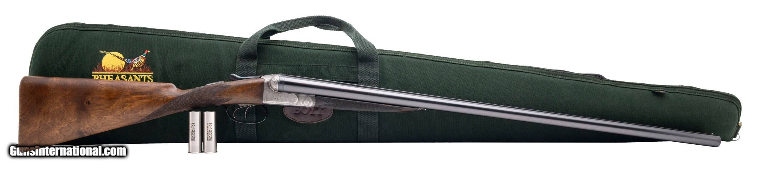 Description: "SN: 1292N made circa early 1900's. 10 gauge side by side shotgun with 30.5"" nitro proof ""Patent Clip Lump"" barrels, 3"" chambers and a set of 10-12 Gauge-Mate chamber inserts to fire 12 gauge shells. Box lock with double triggers, extractors greener style crossbolt and automatic safety hand engraved with game scenes and classic scroll. Checkered walnut furniture with a 14.5"" LOP to the lined solid wood butt. Metal has been re-blacked as most vintage British doubles have with 2 small drain holes on the bottom rib seen near the muzzle. Finish shows moderate wear and handling marks but no cracks or damage and only 1 small wood repair on the side of the forearm. Overall in very good condition for the age with excellent bores. Comes with Boyt soft case and set of Gauge-Mate chamber inserts. Curio/Relic: Yes Price: $1,895.00 Contact Seller |