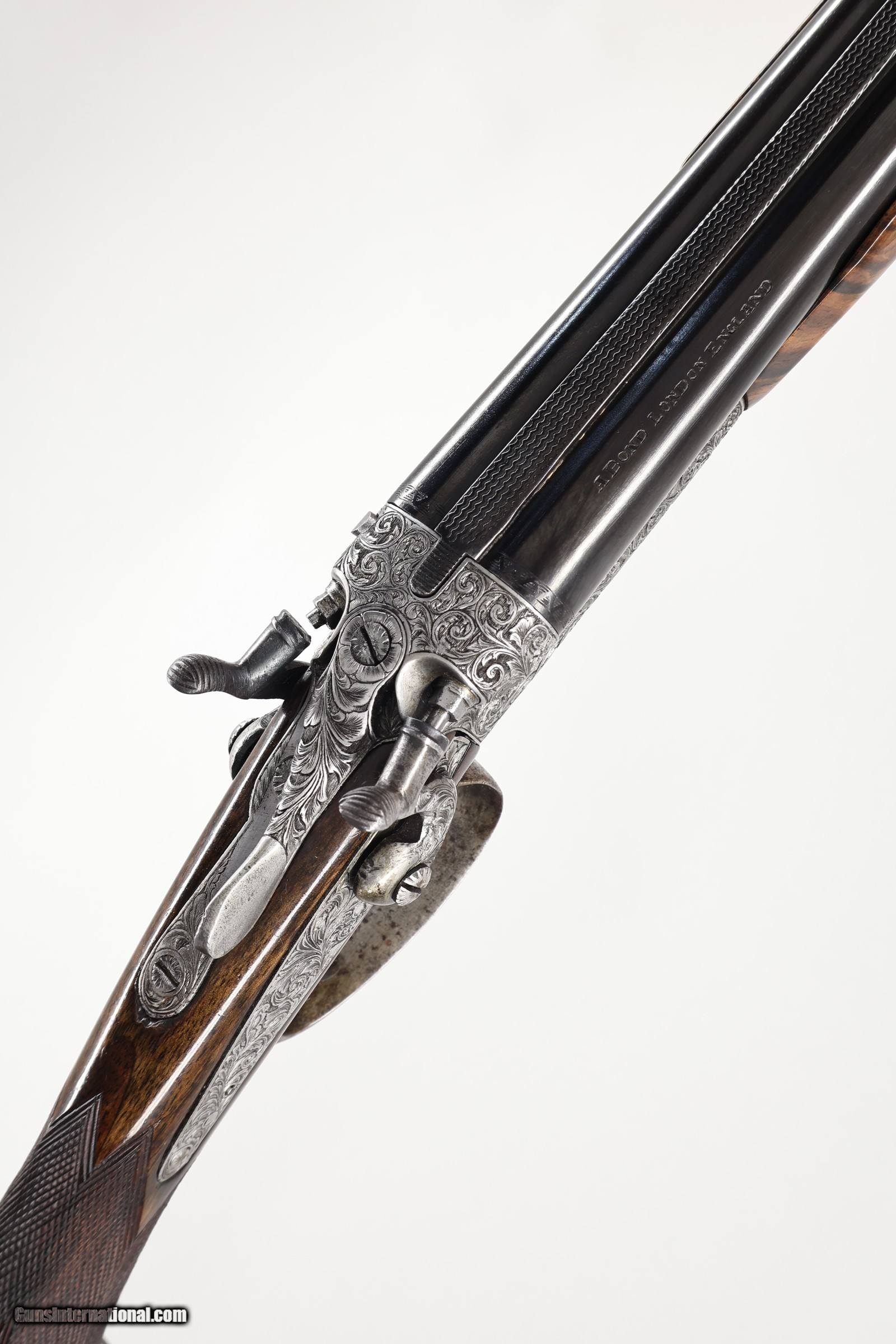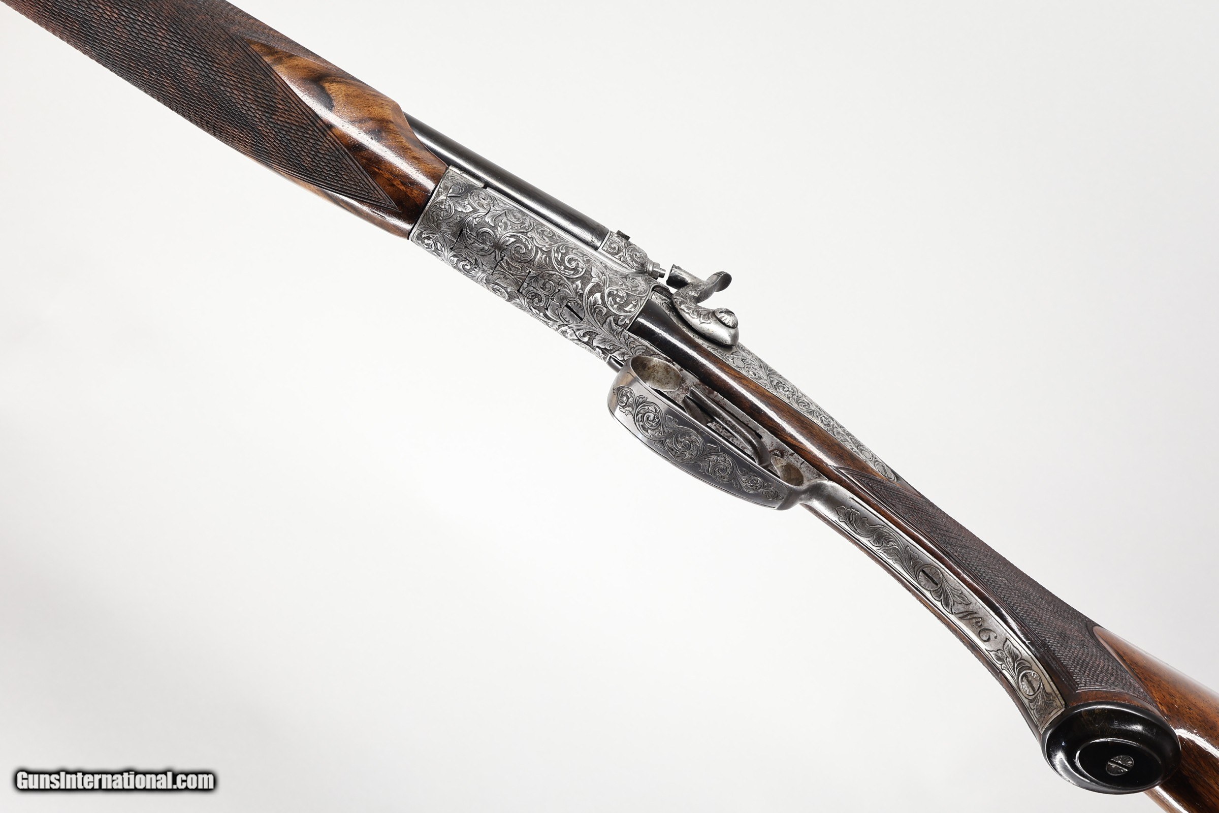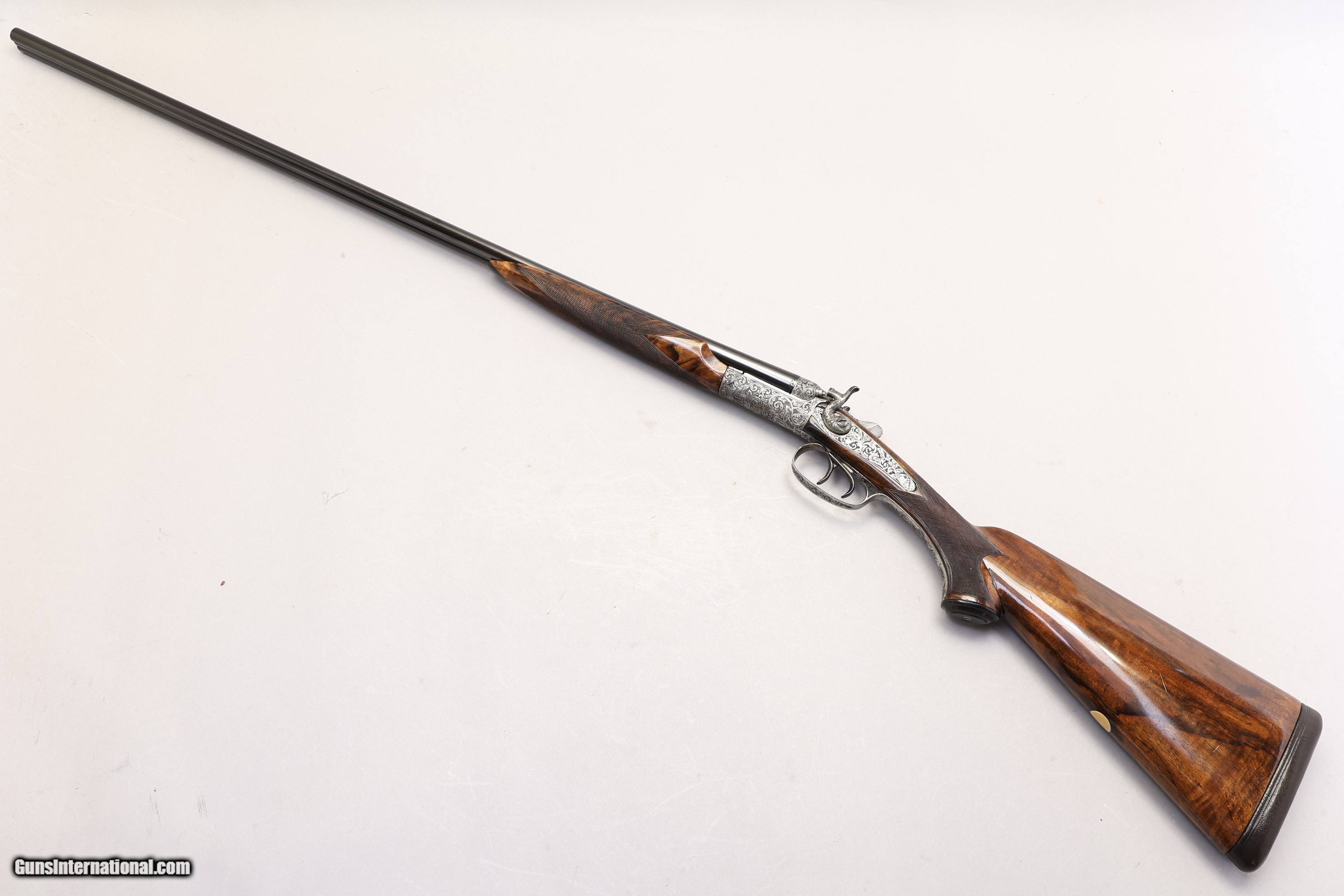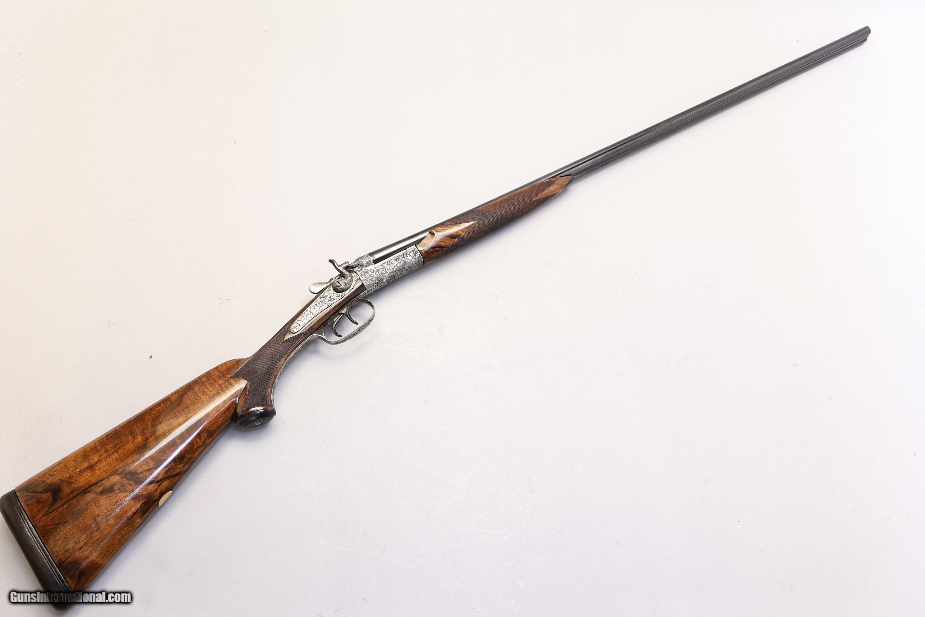 Description: Bond of London - .410 Hammer Gun 28" Barrels Bond of London - .410 Hammer Gun 28" Barrels is a classic United Kingdom-made hammer gun dating from 1936, built with 28" solid rib barrels and fixed chokes (Left: CYL; Right: IC) in a traditional SXS configuration. It features a walnut pistol grip stock for traditional field handling and the tactile appeal of a hammergun action. In excellent condition, stunning wood fitted with leather recoil pad. This example showcases LOP 15", LOP to Wood 14 3/8", Cast Right, DAC 1 3/4", DAH 3", Stock: Pistol Grip, Palm Swell: No. The barrels are 28" long with an overall length of 45", and the weight is 4 lb 11 3/10 oz. It has fixed chokes (Left CYL; Right IC) on a Solid Rib, Barrel Type: SXS. Triggers are Double, Safety is Manual, Barrel selector is Yes, Ejectors are Extractors. It is chambered in .410 Ga, with a 28" barrel and 45" overall length. This gun was made in the United Kingdom in 1936 and is licensed for C&R. Seller Inventory # 07351; Price: $4,995.