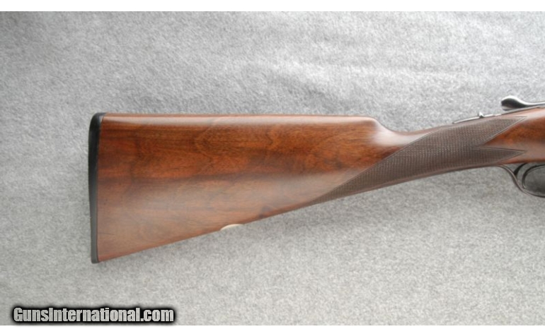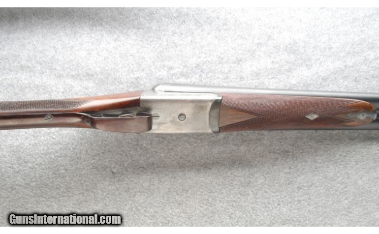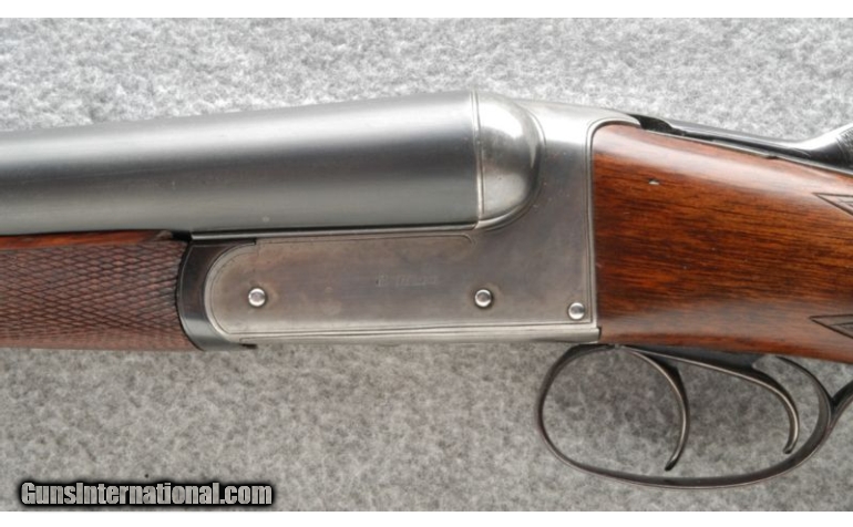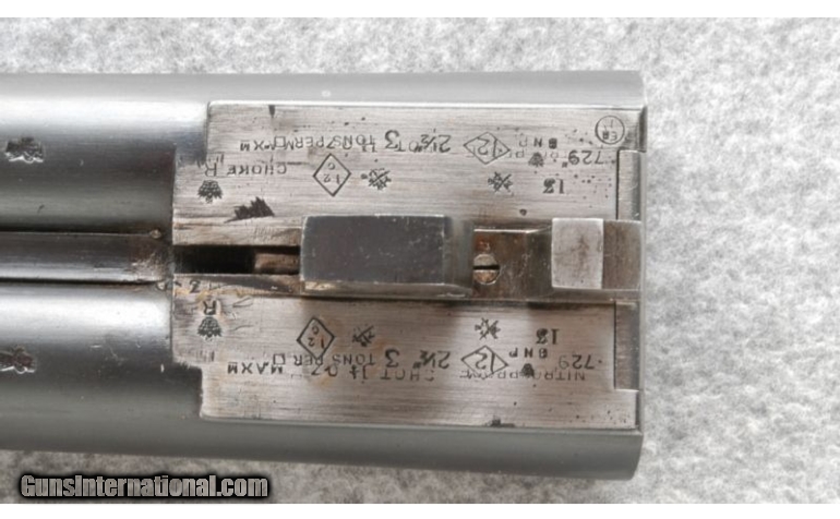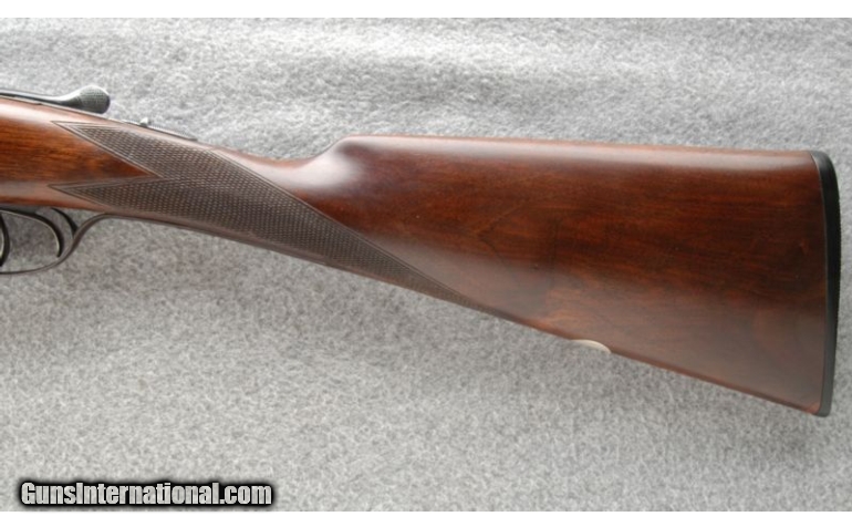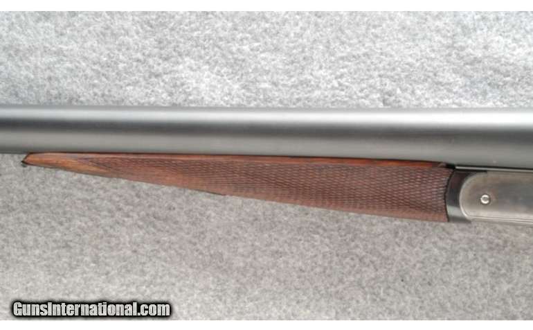 Description: Gun is in proof and on face , small amount of rust on top of barrels, other wise finish is good for a gun of this age. wood is nice with very few small handling marks and scratches SOLD Caliber Info: 12 GA Chambers: 2 1/2 Metal Condition: rebuled barrels show some rust on top rib, receiver has silverd with age Wood Condition: few small handling marks and light scratches Bore Condition: Bright and shiny Barrels: 30 Triggers: Double trigger Stock Dimensions: 14 1/2" LOP 1 1/2 DAC 2 1/2 DAH Butt Pad: Factory black butt plate Weight: 6.4 LBS Sights: Gold bead front Chokes: Skeet/Full Item Location: Sidney, NE |