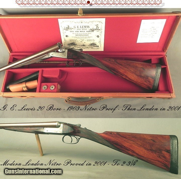 G. E. Lewis 20 BORE - ORIGINAL NITRO PROVED 28" DAMASCUS - IN 2001 LONDON PROVED - COMPLETE RESTORATION in LONDON - TRUNK CASE - SOLID WOOD - EJECTOR