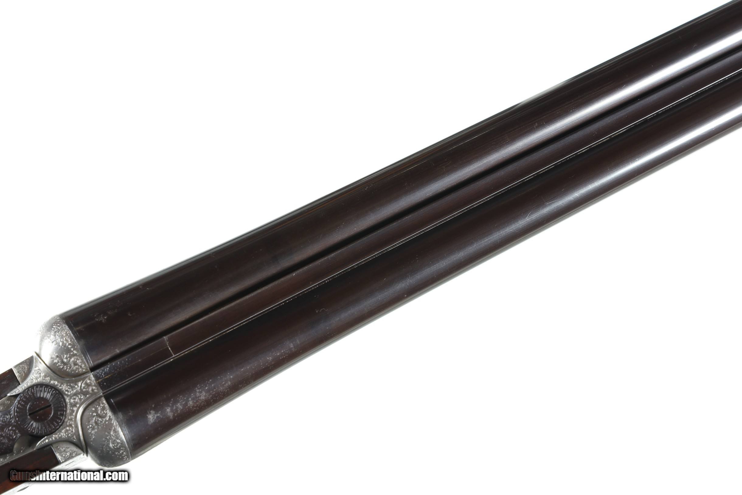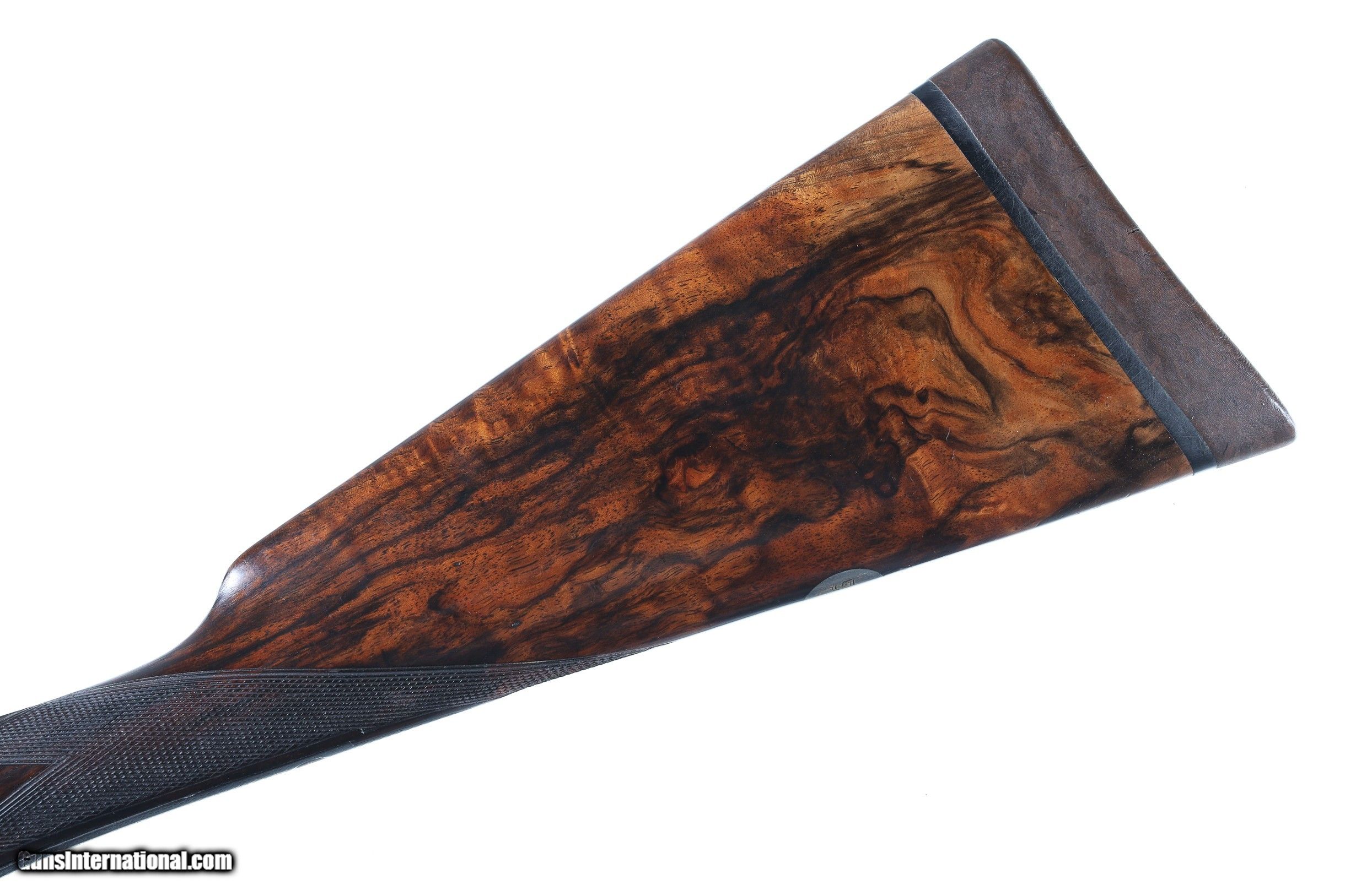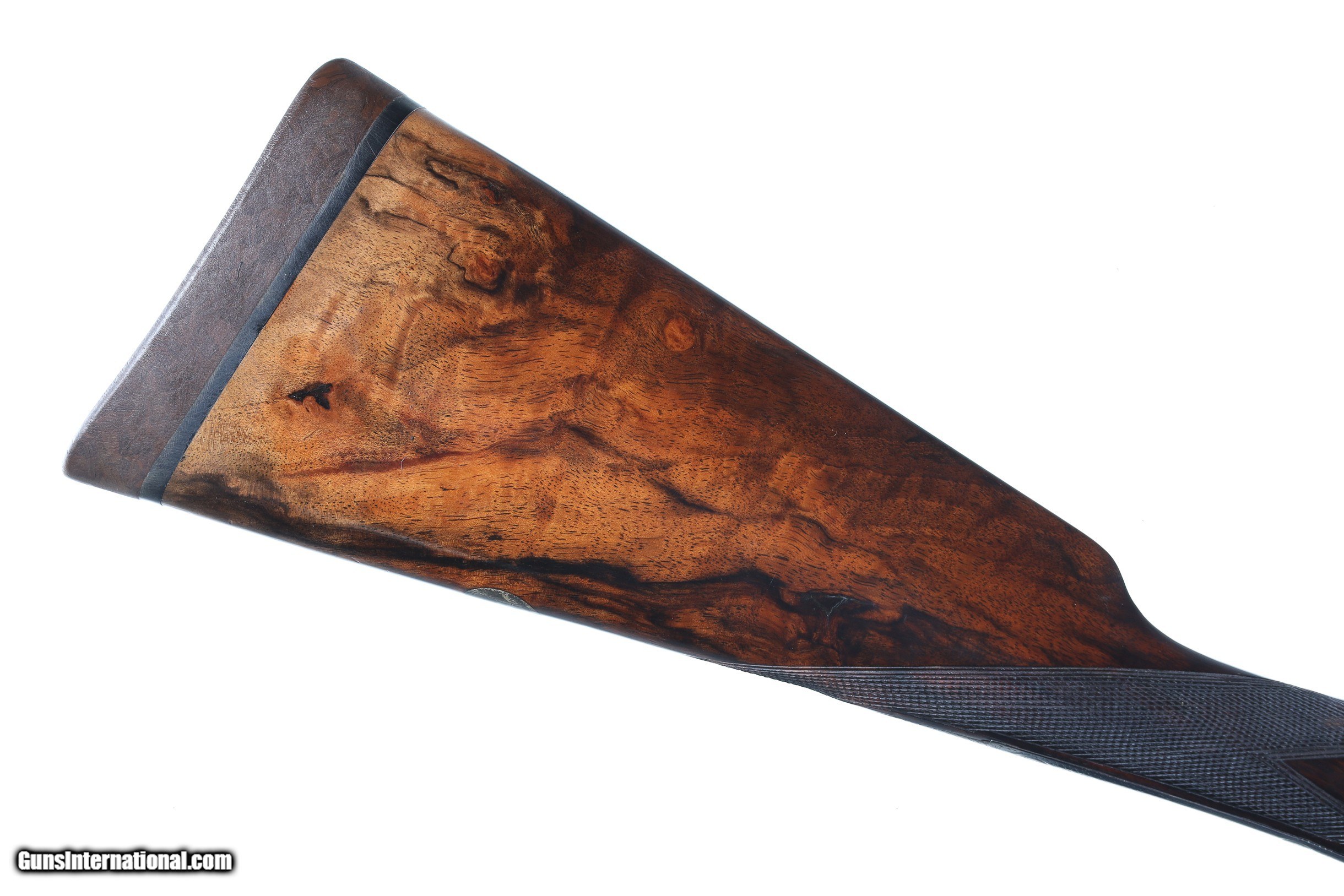 Description: Henry Atkin 7 Pin side Lock double 12 Ga, with 28" Bbl choked Mod & Cyl. 2 3/4" chamber. Double trigger with ejectors. Rose & Scroll engraved bright receiveer. . 14 1/2" LOP over highly marbled English walnut stock with 1 5/8" DAC 2" DAH 6 lbs 10 oz. Condition, Extremely fine as English refreshed. Brilliant sleeved Bores with 70mm proofs ( 2 3/4") Retaining 98% blue finish, Sharp engraving, and crisp checkering. Mechanically excellent. • Free Shipping, No Credit Card Fees. • Lay-a-way available for this firearm. • 1/3 Down, a 1/3 in 30 Days 1/3 in 60 Days. SOLD Curio/Relic: Yes Shotgun Gauge: 12 Gauge Manufacturer: Henry Atkin Model: SLE Serial Number: 2278 Barrel Length: 28 |