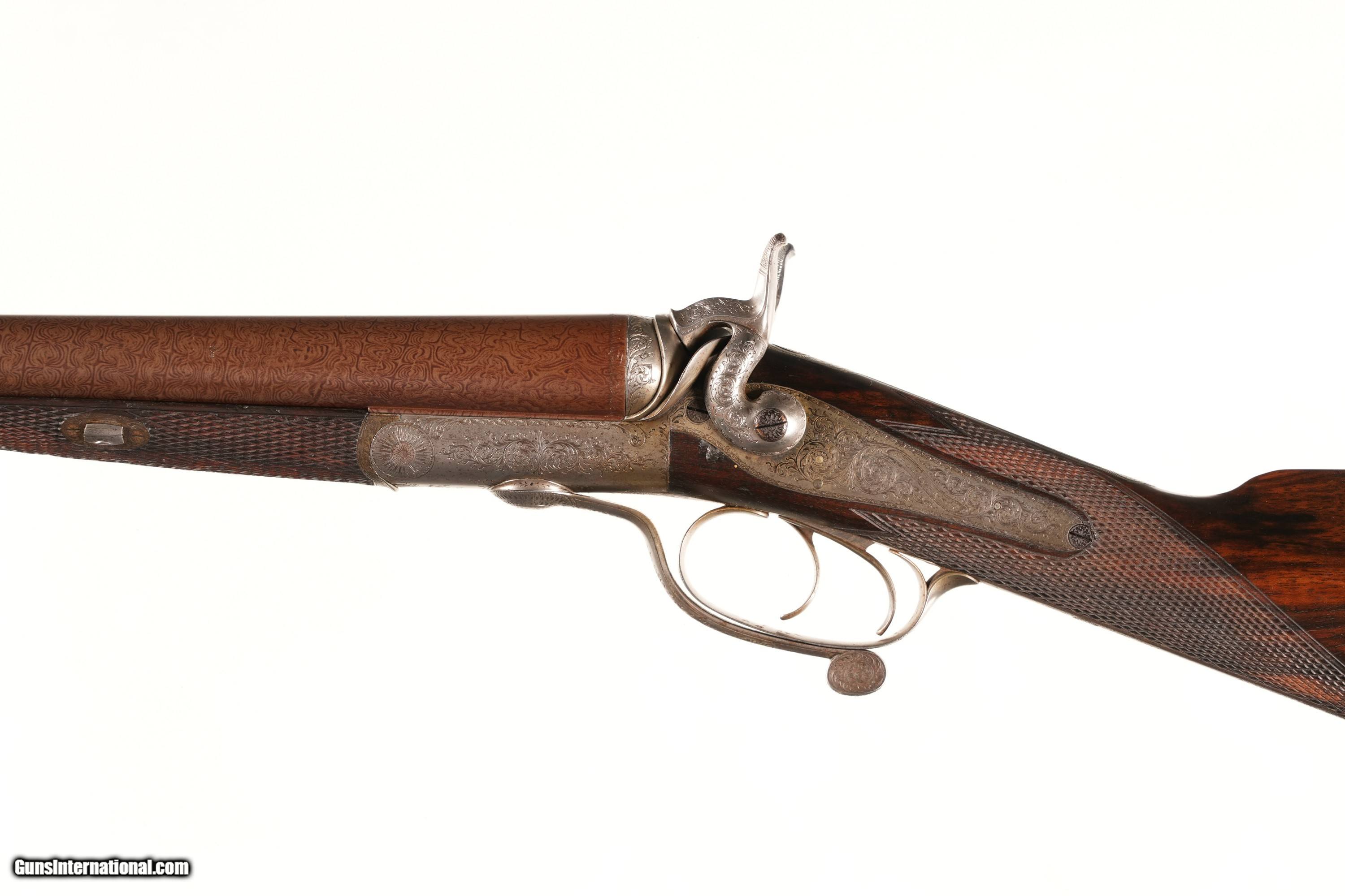 This example is in excellent condition, thanks to a tasteful professional restoration, with Damascus barrels displaying a good pattern, suitable for display or careful use. The fixed chokes are ideal for close-range targets (10–25 yards), perfect for driven game like partridge. The elaborately scroll- and banner-engraved back-action locks showcase Blanch’s artistry, complemented by the figured walnut straight-grip stock with minimal handling marks for a refined grip. The rotary under-lever and double triggers operate with a crisp action and tight lockup, reflecting Blanch’s enduring craftsmanship. Don’t miss this J. Blanch & Son Rotary Under-Lever—a stunning 12 Gauge side-by-side in excellent restored condition, perfect for collectors or black powder shooters. Click “Buy It Now” or call 478-337-1000 to claim this historical masterpiece today! Purchase Details:
