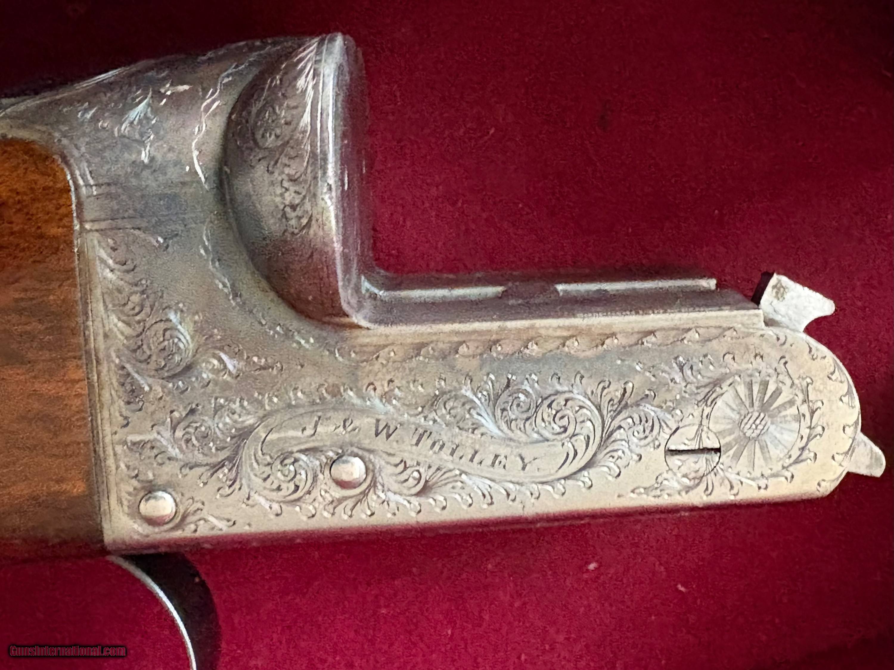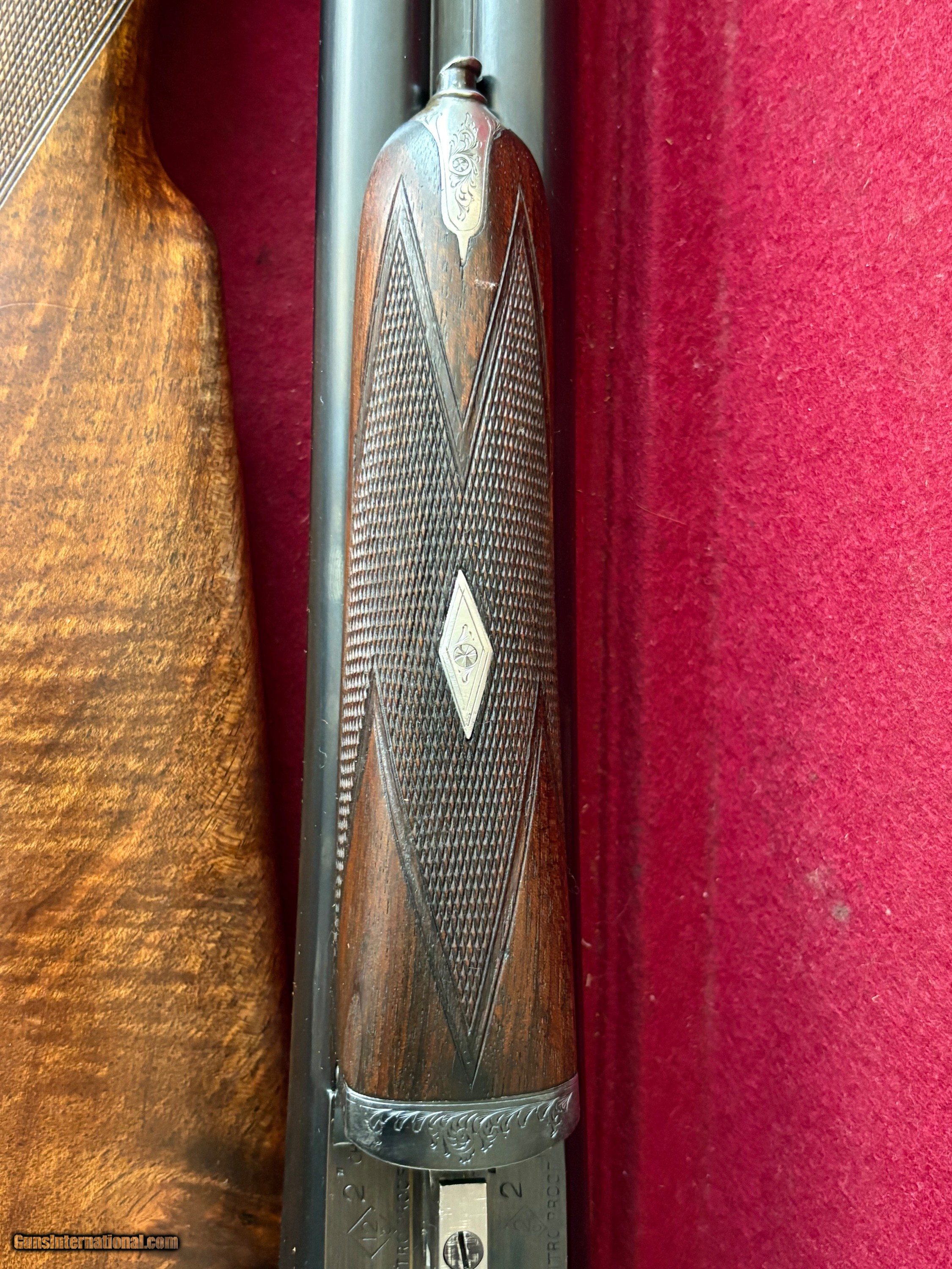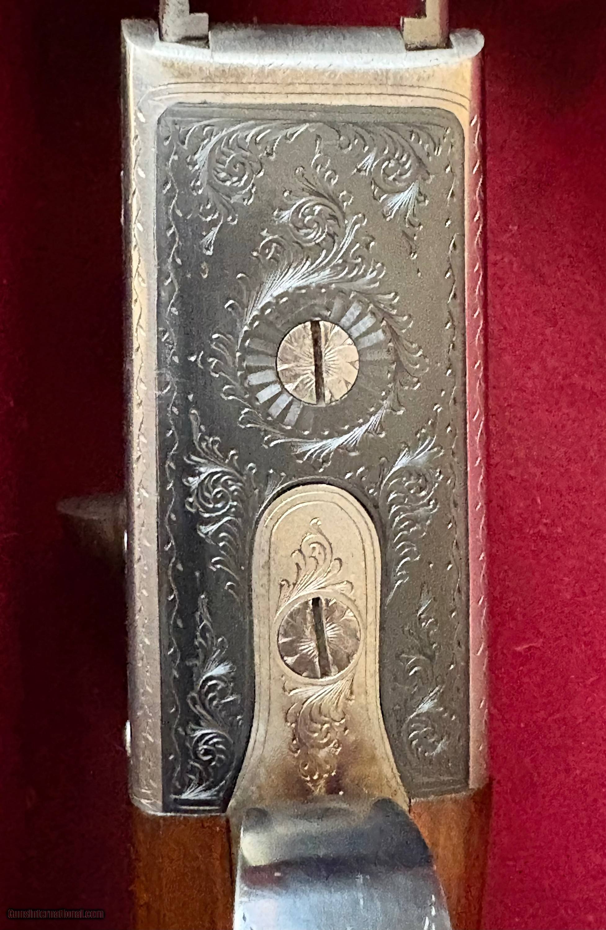 Description: Really nice J&W Tolley 12ga 2” "FOR TWO INCH CASE ONLY" Petite round-top action locks up tight. Engraving sharp. Screws good. Ejectors strong. Nicely figured stock. 14" LOP from rear 15” LOP from front. No cast. 2” DAH. 1.5” DAC 26" barrels Bores are excellent. IC/Full Min wall thickness .023/.024 Nitro proofed. Lightweight only 5.5lbs Includes fitted case. Case is dirty and stained but remains solid and functional. Free Ship CONUS Shotgun Gauge: 12 Gauge Manufacturer: Tolley Model: 2” Barrel Length: 26 Ejectors: Yes Condition: VG Metal Condition: VG Wood Condition: VG Bore Condition: Excellent Weight: 5.5 Case: Yes Proof:Nitro: Yes Price: $2,850.00 Contact Seller |