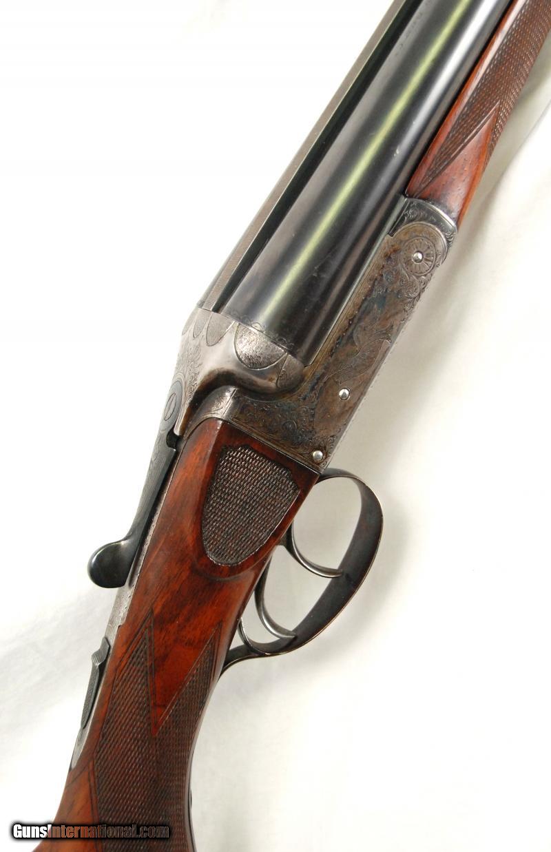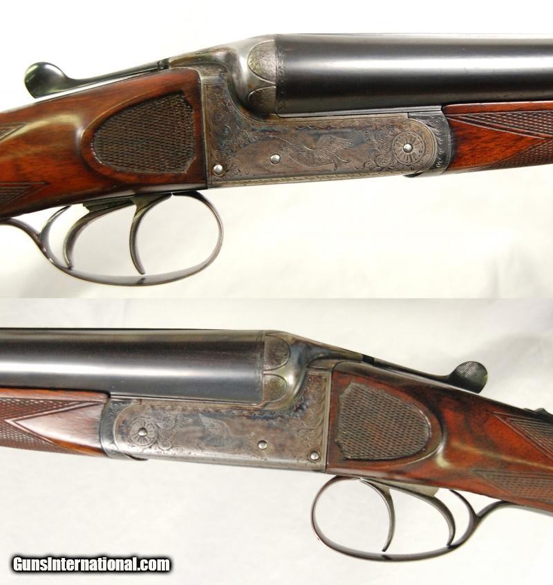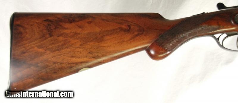 Description: MIDLAND Pigeon Gun, Boxlock 12 gauge, 2 3/4" ch., 28" bbls., Scroll & pigeon engraved case colored receiver, Flat filed pigeon rib, Rt. Choke: .732 / .015 / LM, Left Choke: .732 / .034 / F, Extractors, Double triggers, Nicely figured Walnut round knob semi-pistol grip stock w/ checkered side panels, Splinter forearm, DC: 1 7/16", DH: 2 1/8", Cast at face: 5/16" OFF 4 3/4", L.O.P.:14 3/8", Weight: 6 lb. 9 oz., Condition: Excellent, Made by Midland in Birmingham, England circa 1930's, Serial #112204. (C7112) FIELDSPORT $4495 To see & enjoy the entire inventory of fine shotguns, rifles and handguns, In the FIELDSPORT Gun Room, we invite you to visit us at FIELDSPORTLTD SOLD Manufacturer: Midland of Birmingham England Model: Pigeon Gun Serial Number: 112204 Chambers: 2 3/4 Ejectors: Extractors Condition: Excellent Barrels: 28 Barrel Type: SxS Action: Boxlock Triggers: Double trigger Gauge Info: 12 Stock: Nicely figured Walnut round knob semi-pistol grip stock Stock Comb: 1 7/16 Stock Heel: 2 1/8 Stock Cast: Cast at face: 5/16" OFF 4 3/4 Fore End: Splinter Butt Pad: Maker's butt plate LOP: 14 3/8 Rib: Flat filed pigeon Finish: Case colored receiver Weight: 6 lb. 9 oz. Manufacture Date: Circa: 1930's Choke Left: .732 / .034 / F Choke Right: .732 / .015 / LM Engraving: Scroll & pigeon engraved receiver w/ Pigeons Extras: Checkered side panels |
