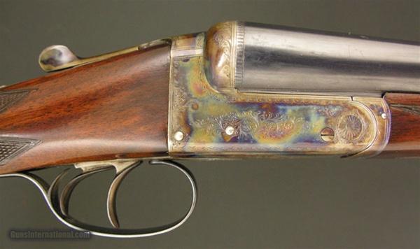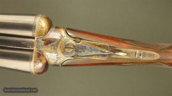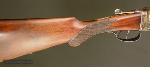 Description: WARD & SONS – Best Boxlock, 12ga., 30” IC/M, round knob pistol grip stock with an Old English pad, splinter forend, solid game rib, double triggers, automatic ejectors, perfect condition throughout, with 85% barrel bluing, 90% wood finish, and 100% case coloring, a very nice gun with a long length of pull and perfect dimensions. SOLD |