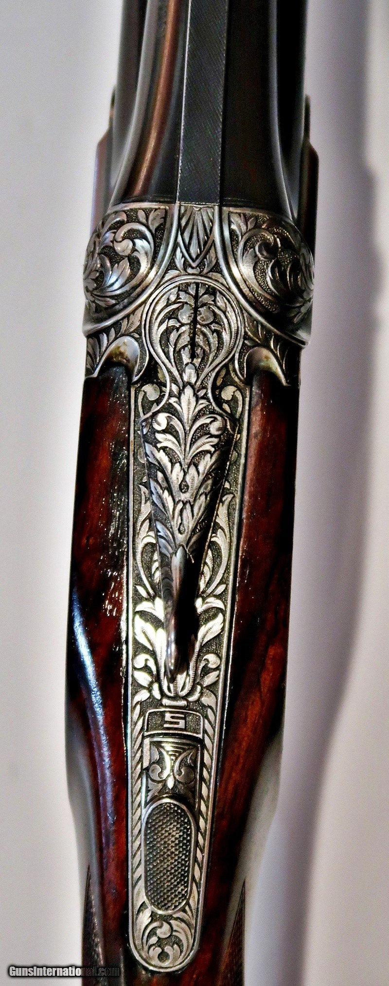 Description: ALEX MARTIN (SCOTTISH) DELUXE CONTINENTAL 20GA O/U SHOTGUN, DEEP CHISEL FULL COVERAGE FLORAL SCROLL, 30" BBLS, 2 3/4 & 3, CHOKED FX U .O25, O .028, IM/LF, MIN WALLS 35 PLUS, HAND FILED SOLID RIB, EJECTORS, SINGLE DROP OUT TRIGGER PLATE, BEAUTIFUL HIGHLY FIGURED DARK WALNUT, PURDEY PISTOL GRIP, TRIM FOREND, LOP 14 1/2, 1 1/4, 1 3/4- NEUTRAL, 6LBS 10OZ, NIZZOLI LEATHER CASE, 98% METAL & WOOD. SOLD Shotgun Gauge: 20 Gauge Manufacturer: ALEX MARTIN Model: DELUXE CONTINENTAL Barrel Length: 30 Bore: 20GA Chambers: 2 3/4 & 3 Ejectors: YES Condition: 98% CONDITION ! Action: O/U Triggers: SINGLE DROP OUT TRIGGER PLATE Stock: BEAUTIFUL HIGHLY FIGURED DARK WALNUT, PURDEY PISTOL GRIP, TRIM FOREND LOP: LOP 14 1/2, 1 1/4, 1 3/5- NEUTRAL Rib: HAND FILED SOLID RIB Weight: 6LBS 10OZ Chokes: IM/LF Engraving: DEEP CHISELED FULL COVERGAE FLORAL SCROLL Case: NIZZOLI LEATHER CASE Item Location: SAFARI OUTFITTERS LTD. 2517 ROUTE 44 SALT POINT, NY 12578 |
