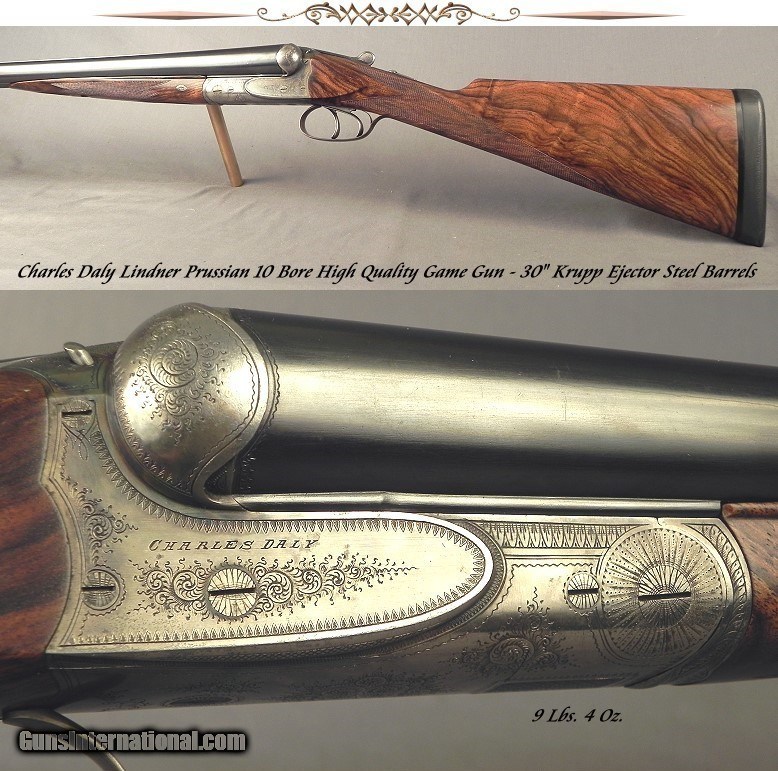 CHARLES DALY 10 BORE- LINDNER PRUSSIAN PIECE- 30" EJECT KRUPP STEEL Bbls.- EXC. WOOD- EXC. Bbls. INSIDE & OUT- EXC. MECHANICS- 2 7/8"CHAMBER