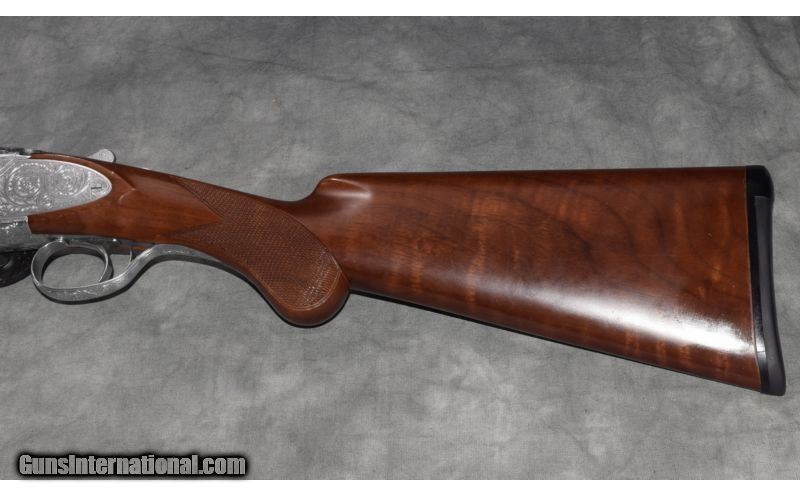 Description: DeHaan custom reworks imported over under shotguns made by Huglu. The wood to metal fit is outstanding. The joining of the Schnabel forearm, the receiver to butt stock, even the butt pad grind is above criticism. The hand engraving is beautiful the result of five or so hours of hand chiseling for the side plates alone on each and every DeHaan The wood has distinct mineral streaks and a satin finish. SOLD Caliber Info: 20 gauge. Chambers: 3 inch with extractors. Metal Condition: Very Good, minor handling marks. Wood Condition: Very Good, minor handling marks mainly on checkering. Bore Condition: Excellent, bright and clean with minor wear marks. Barrels: 28 inch blued vent ribbed. Triggers: Single, with safety selector. Stock: Satin finished turkish walnut, with pistol grip. Stock Dimensions: 13.5 inch LOP. 45 inch overall. Fore End: Schnabel style with side checkering. Butt Pad: Rubber and hard plastic. Weight: 6 lbs 9 oz. Sights: Single front brass bead. Chokes: Removable choke system, improved cylinder installed in both. Item Location: Chesterfield, MI |