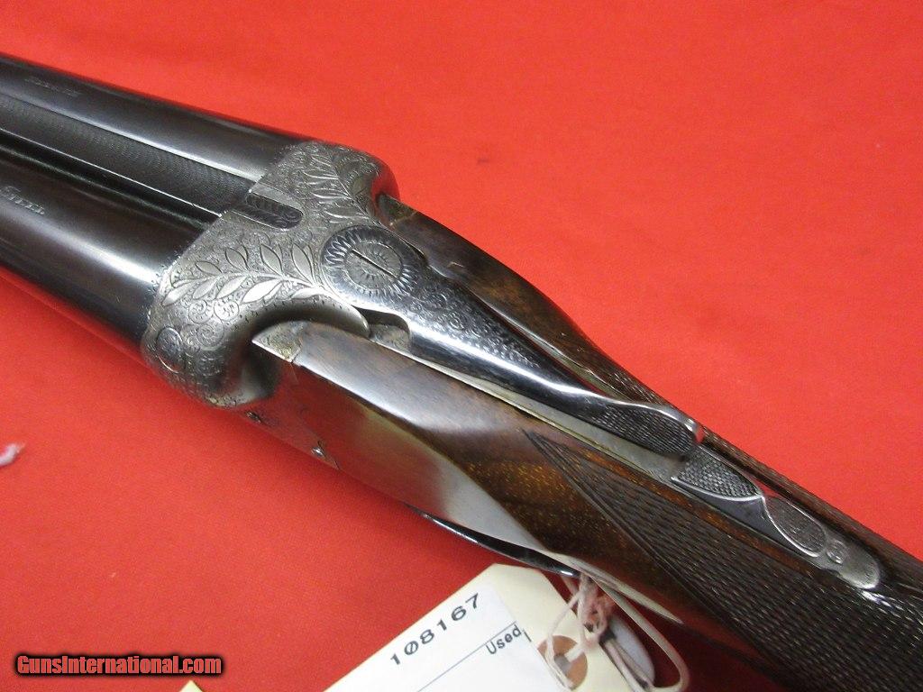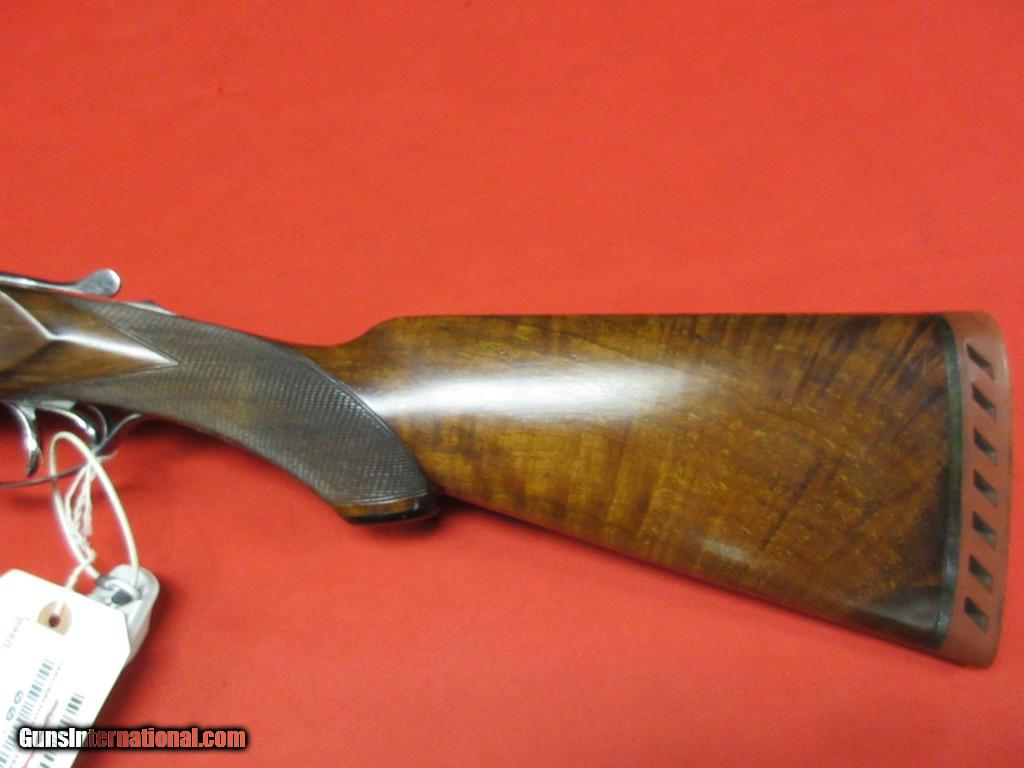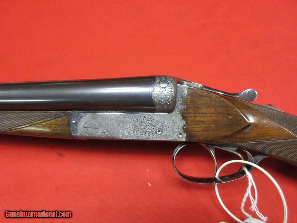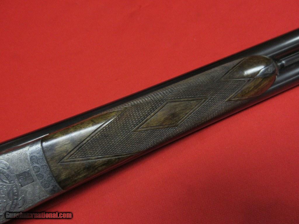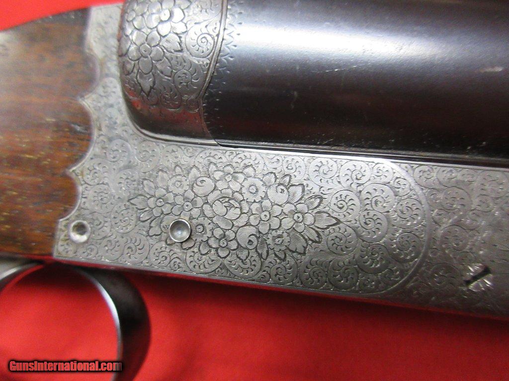 Description: Joseph Deforny Boxlock 12ga/28" Cyl/Full -- Scalloped boxlock with full-coverage hand-cut engraving, double triggers with auto-ejectors, sideclips, third bite, pistol grip stock, and splinter forend. It would cost a small fortune to reproduce this type of quality. SOLD |