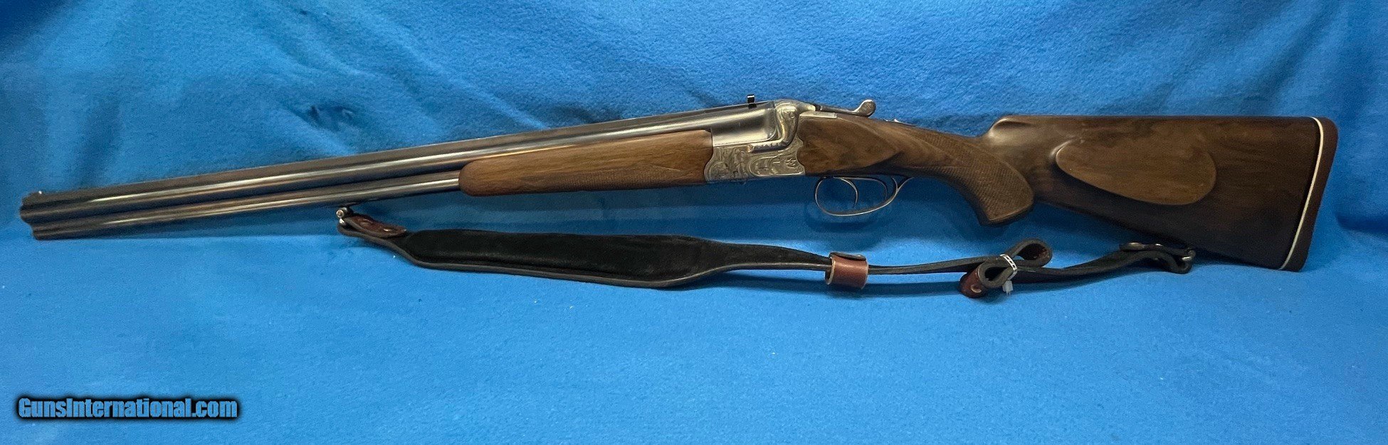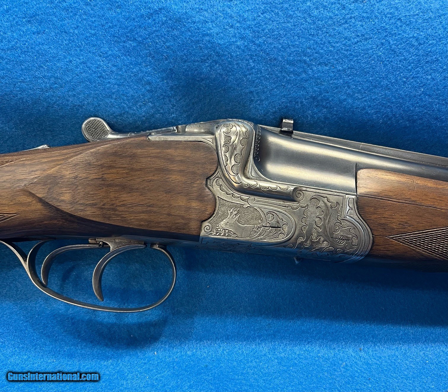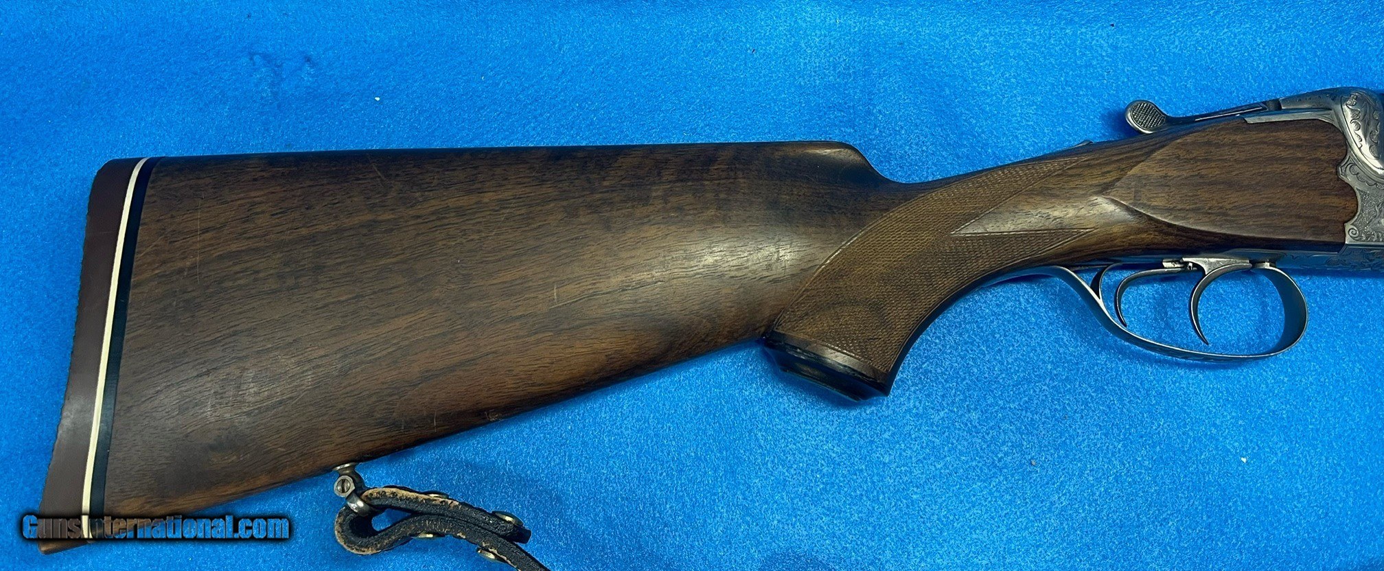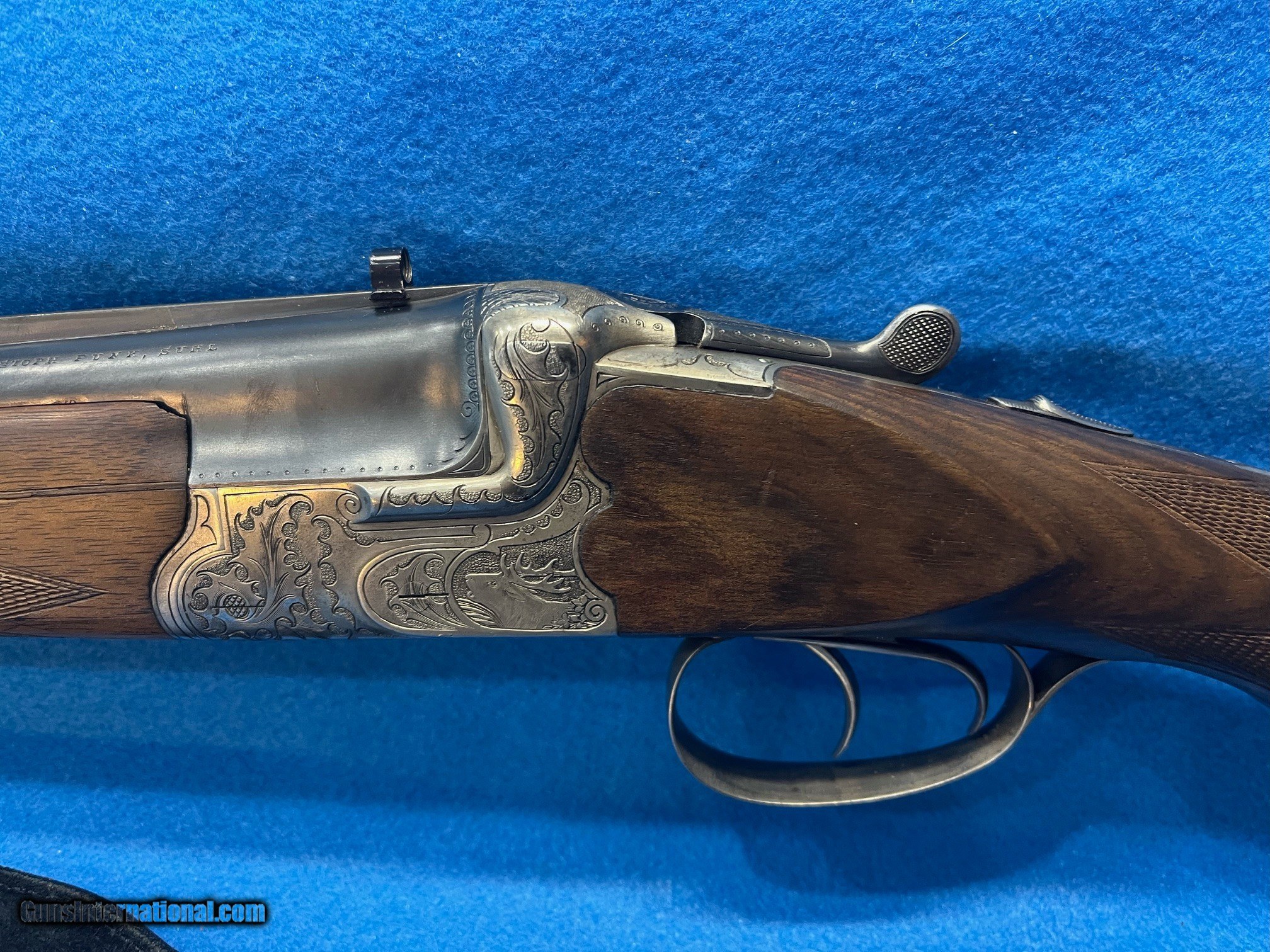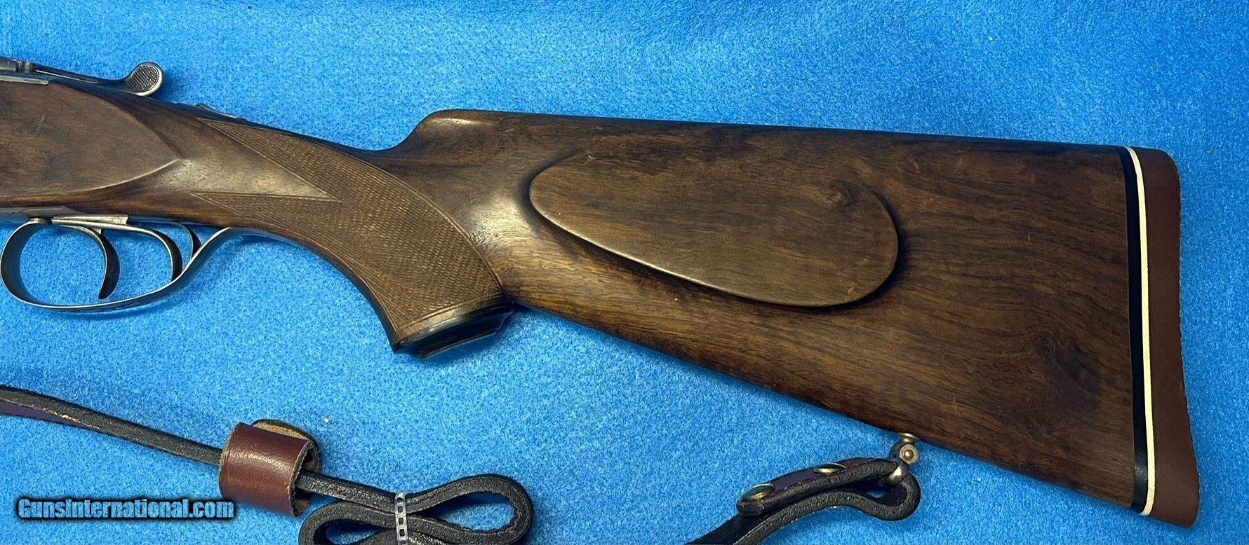 Description: MAGNIFICENT CHRISTOPH FUNK, OVER/UNDER, ,CAL 16GA./ 8MM X 57R MAUSER, SER. 37994, L.O.P. 14.75". MAGNIFICENT IT SURELY IS. THIS BEAUTIFULLY ENGRAVED CUSTOM O/U IS A GREAT EXAMPLE OF GERMAN PREWAR GUNSMITHING. IT HAS REATINED AT LEAST 99% 0F THE ORIGNAL FACTORY FINISH. THE VERY SLIGHT LOSS IF, ANY IS THE USUAL SHARP EDGE SILVERING. THERE ARE NO BLEMISHES ANYWHERE. THE PREVIOUS OWNER REMOVED THE MID RIB SIGHT AND A DOVETAIL FILLER PIECE HAS BEEN PROFESSIONALY INSTALLED. THE GUN FEATURES DUAL COCKING INDICATORS AND A CUSTOM "ANSON AND GREELEY" CROSS BOLT LOCKING FEATURE. THE ENTIRE RECECEIVER, TRIGGER GUARD AND FOREARM TAKEDOWN LEVER ARE FINSHED IN SILVER AND BEAUTIFULLY. ENGRAVED. A SMALL PEEP SIGHT HAS BEEN ADDED ABOVE THE SHOTGUN CHAMBER. THE FOREARM AND CHEEKPIECE BUTTSTOCK ARE BEAUTIFULLY HAND CHECKERED AND ARE WITHOUT A BLEMISH. ALL PARTS FUNCTION PERFECTLY AND BOTH BORES ARE MIRROR BRIGHT, THE RIFLE HAS RAZOR SHARP RIFLING.TODAY THIS HANDCRAFTED BEAUTY WOULD COST AT LEAST FIVE TIMES WHAT WE ARE OFFERING THIS "RANGE HEAD TURNER AT"....INVESTMENT PRICED AT ...$2495.***, *** 100% 0F THE GUN'S PRICE IS SATISFACTION GUARANTEED SOLD Rifle Caliber: 7.92x57mm Mauser Shotgun Gauge: 16 Gauge |