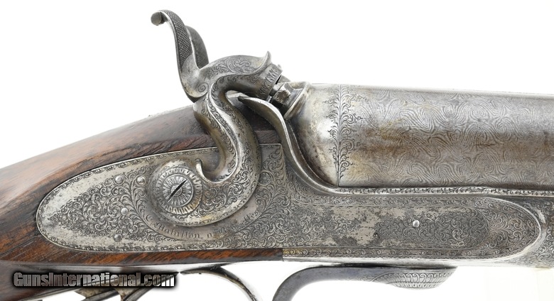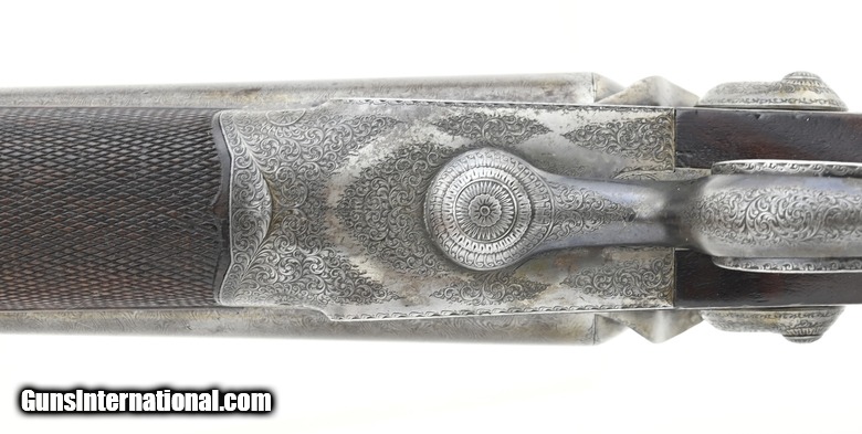 Description: Mahillon Double 12 Gauge shotgun. Very fin e Belgian made double with 30” Damascus barrels. Sidelocks, hammers, receiver, under lever and tang are scroll engraved. Walnut stock is nicely figured with contrasting colors. Stocks are finely checkered. Butt stock has heel and toe plates and is checkered between. Action and hammers work perfectly. Locks are marked “Mahillon Bruxelles”. A great example of quality craftsmanship. SOLD |