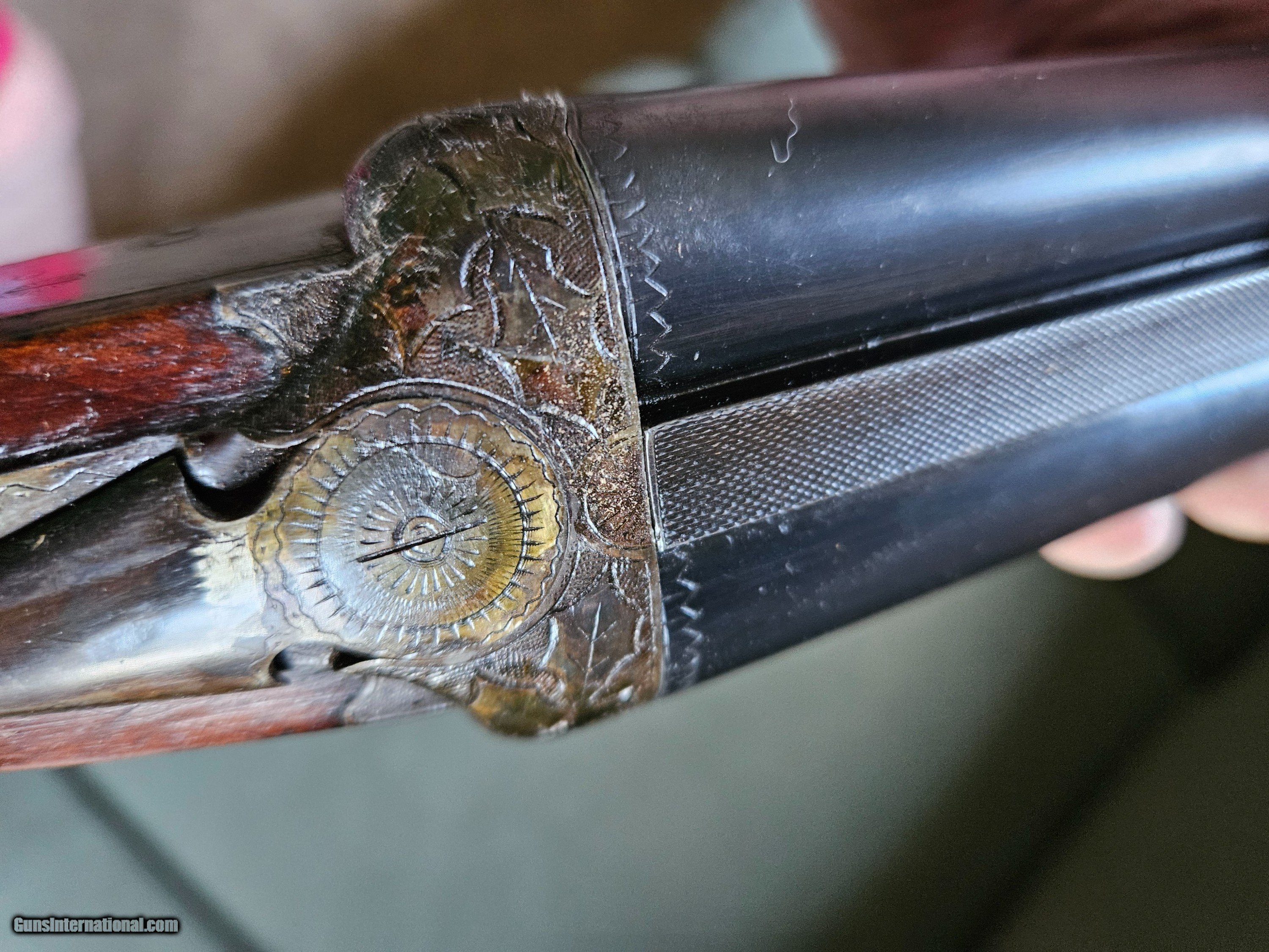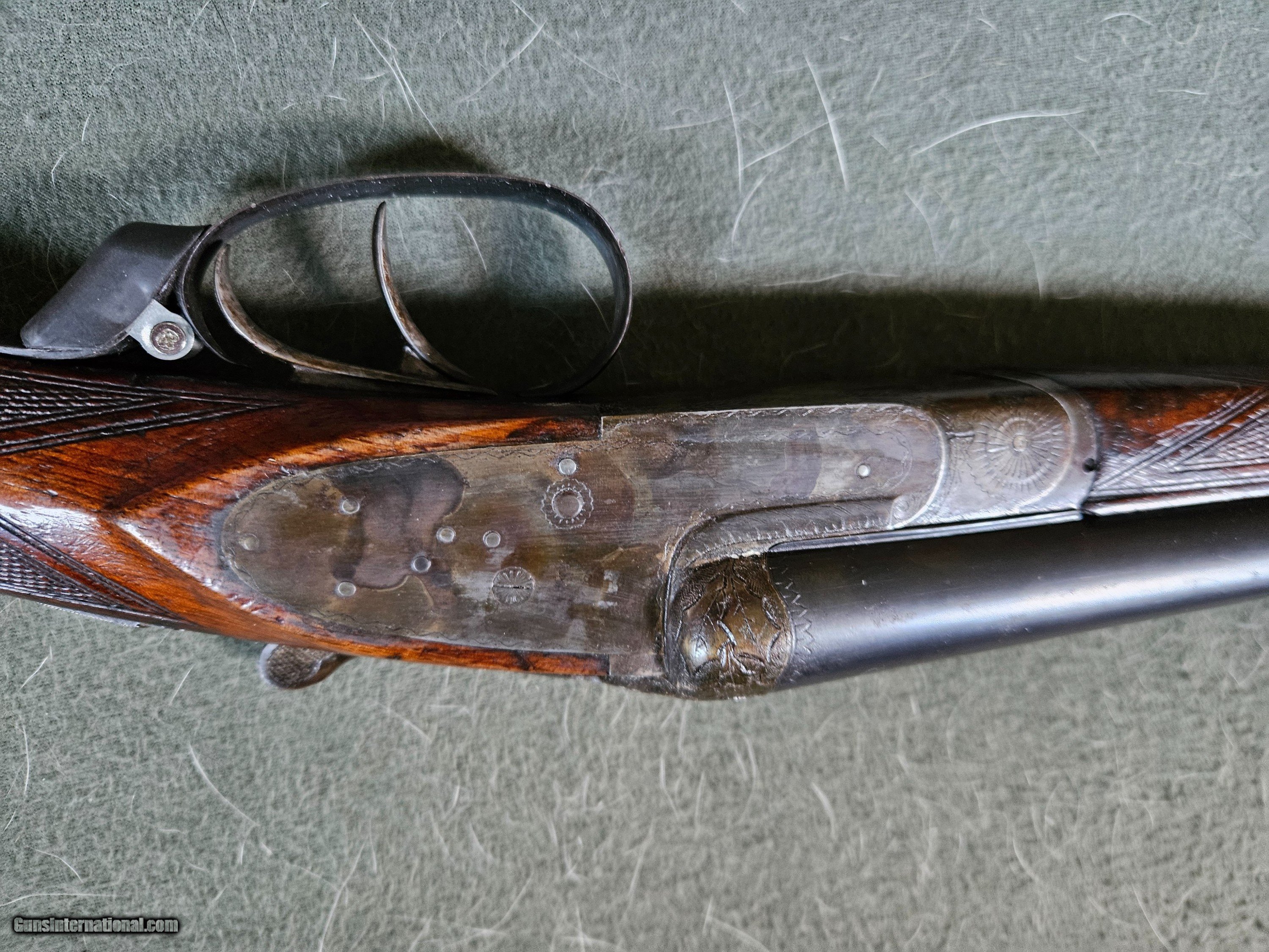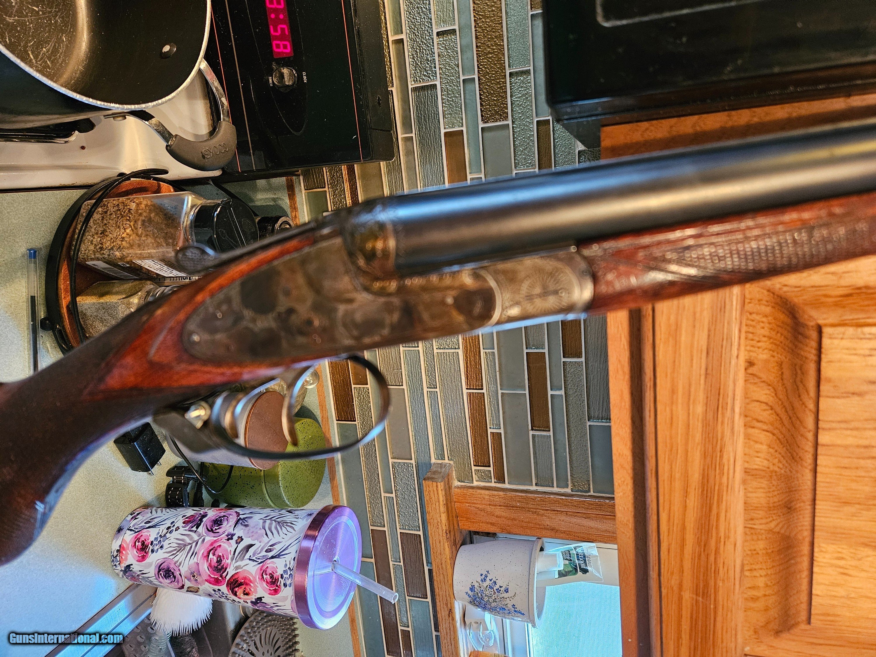 Description: Belgian 16ga Sidelock Ejector Gun. 70mm chambers.Prince of Wales grip. 14.5" lop. Side-clips. Engraved. Jostam pad. SOLD Shotgun Gauge: 16 Gauge Manufacturer: St. Hubert Barrel Length: 27.5 Chambers: 2&3/4 Ejectors: Yes Condition: Good Metal Condition: Good Wood Condition: Good Bore Condition: Vg Barrels: Sxs Action: Sidelock Triggers: Dt Stock: Prince of Wales |