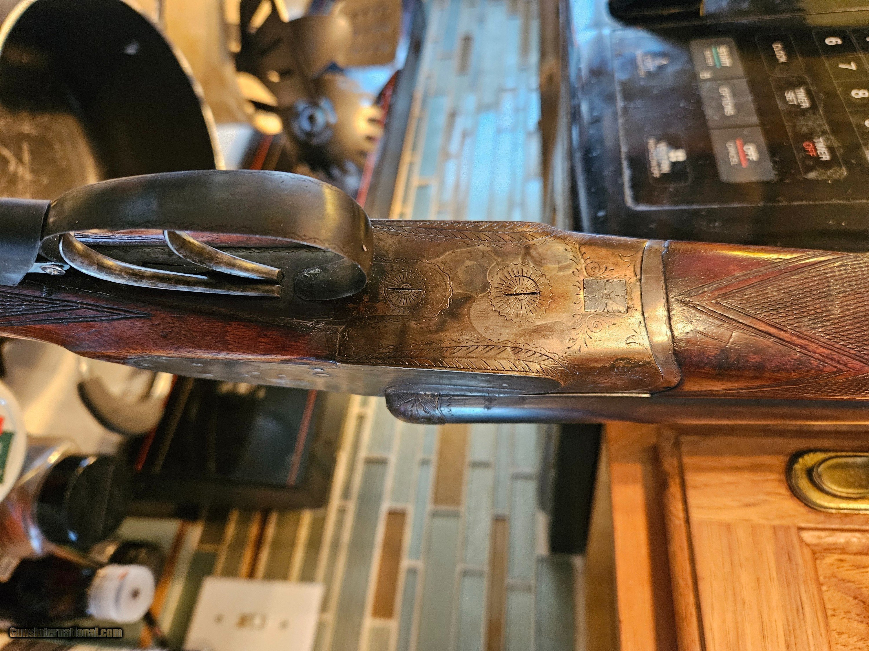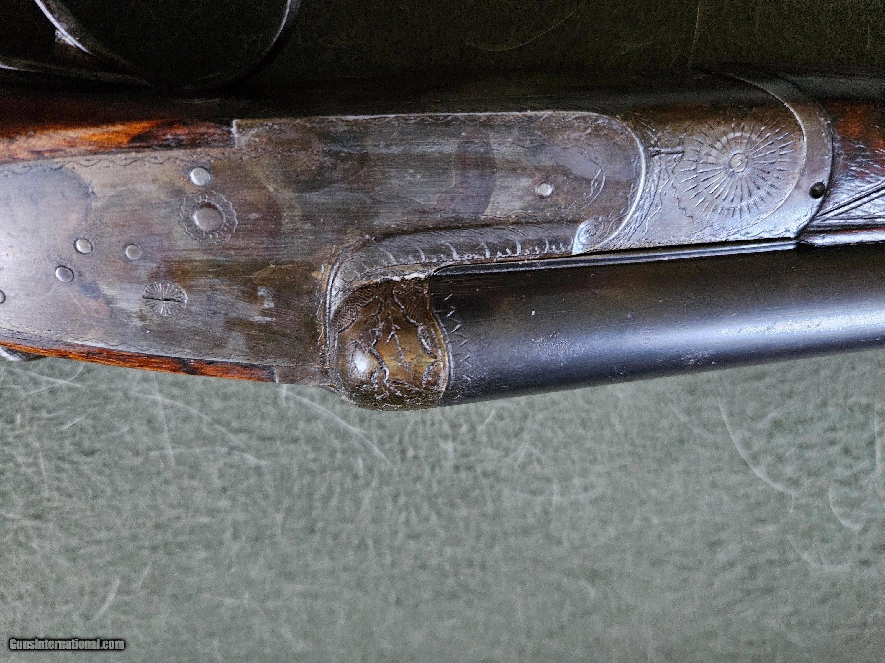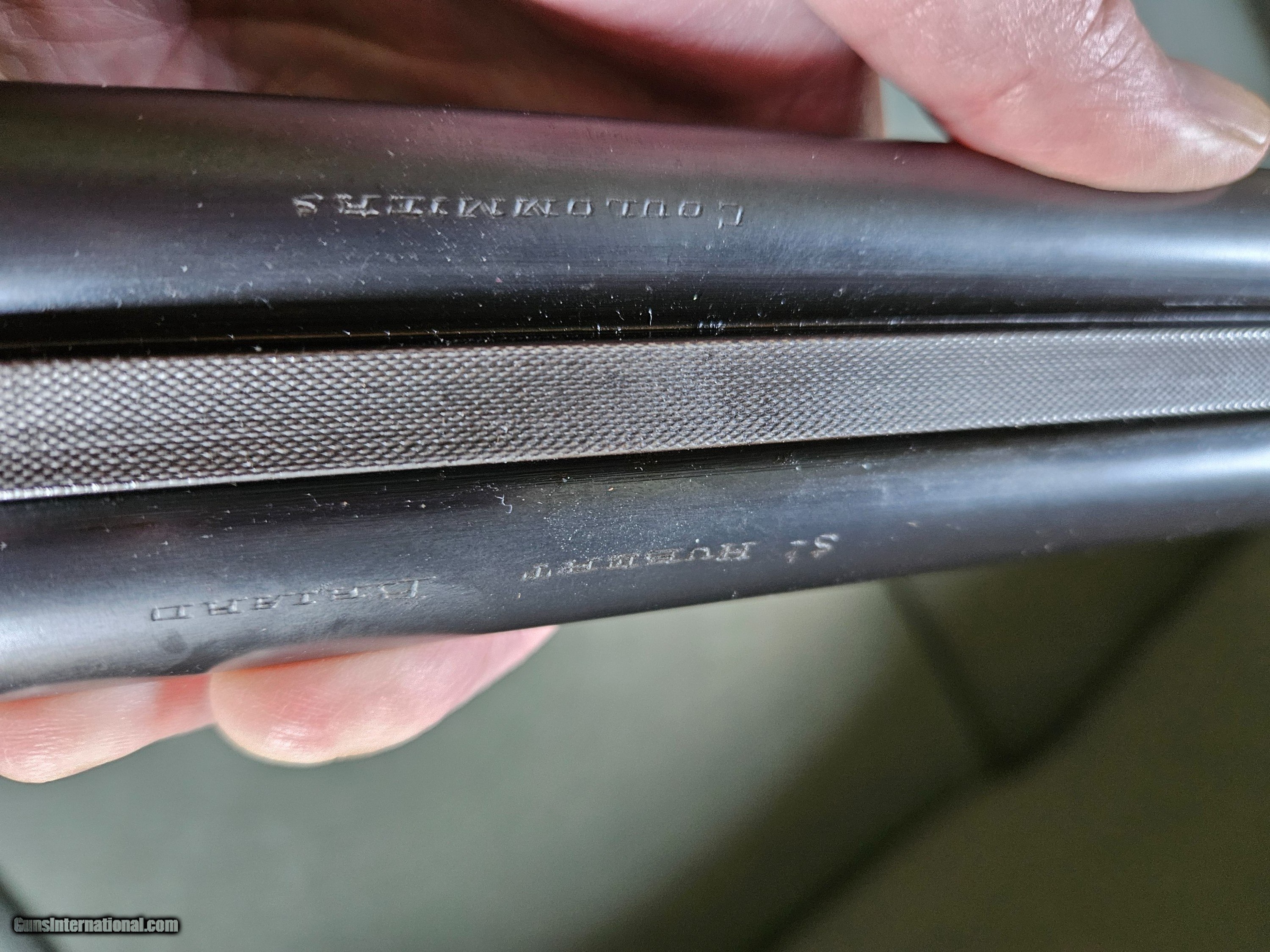Description: Belgian 16ga Sidelock Ejector Gun. 70mm chambers.Prince of Wales grip. 14.5" lop. Side-clips. Engraved. Jostam pad. SOLD Shotgun Gauge: 16 Gauge Manufacturer: St. Hubert Barrel Length: 27.5 Chambers: 2&3/4 Ejectors: Yes Condition: Good Metal Condition: Good Wood Condition: Good Bore Condition: Vg Barrels: Sxs Action: Sidelock Triggers: Dt Stock: Prince of Wales |