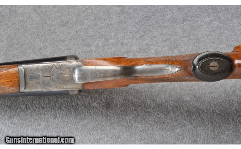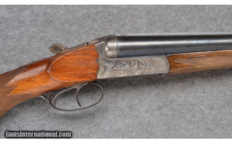 Description: Wood shows light use marks and part of the checkering on the forend has been partially recut. Barrel blue is thinning and shows a few light use scuffs. Bores remain bright and lockup is tight. Nicely engraved receiver shows remaining case color in protected areas. Length of pull is exceptionally long at 16 in. SOLD Manufacturer: S/N - 0410XXXX Caliber Info: 16 Gauge Chambers: 2 3/4" w/Extractors Metal Condition: Good Wood Condition: Good Bore Condition: Excellent Barrels: 28 1/2 Triggers: Double Stock: Checkered Walnut P.G. w/Right Hand Cheekpiece Stock Dimensions: 16 in. LOP Fore End: Checkered Walnut Butt Pad: Grooved Butt Plate Weight: 6 lbs 6 ozs Sights: Brass Bead Front Chokes: FULL Item Location: Charleston, WV |
