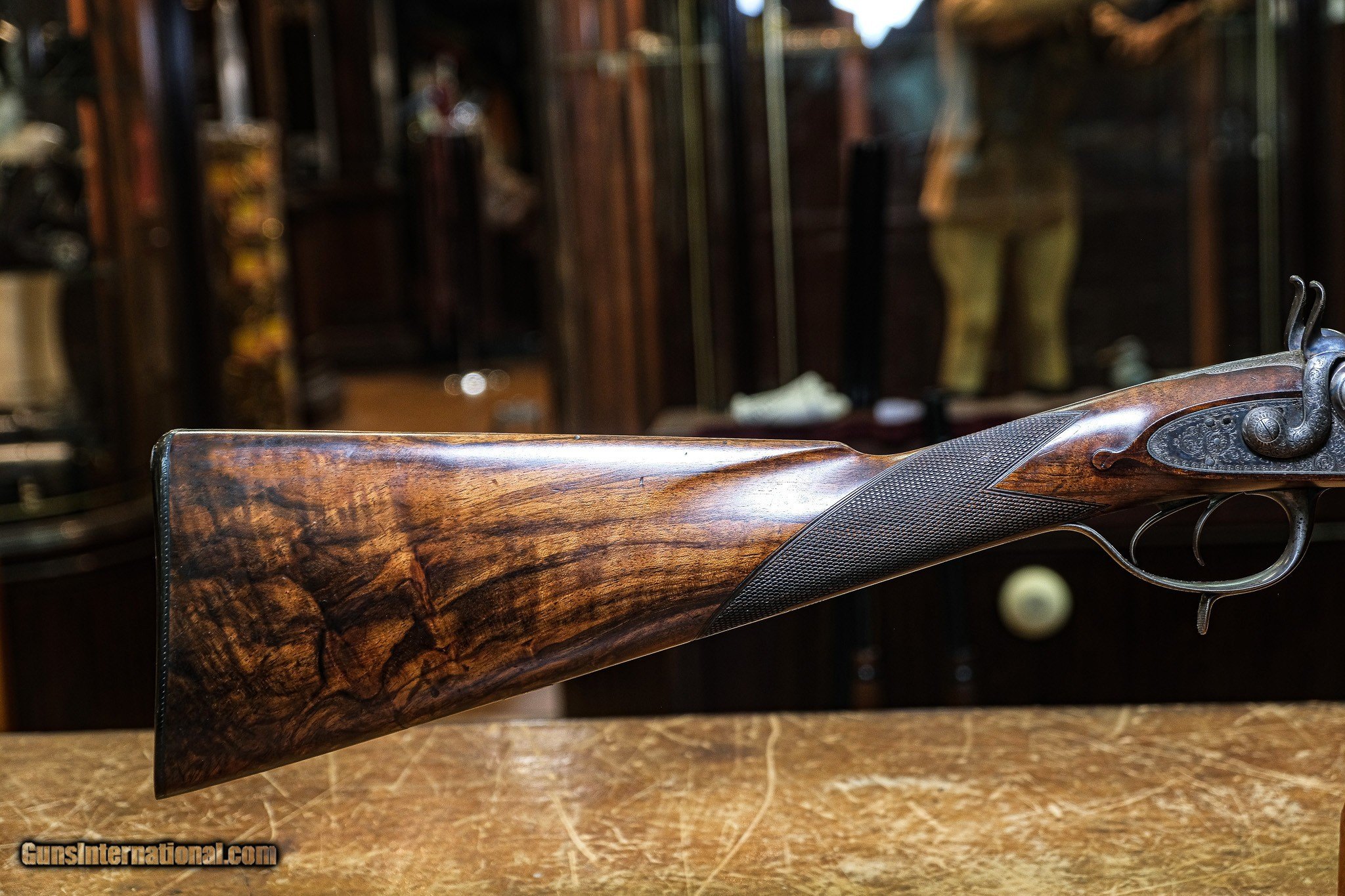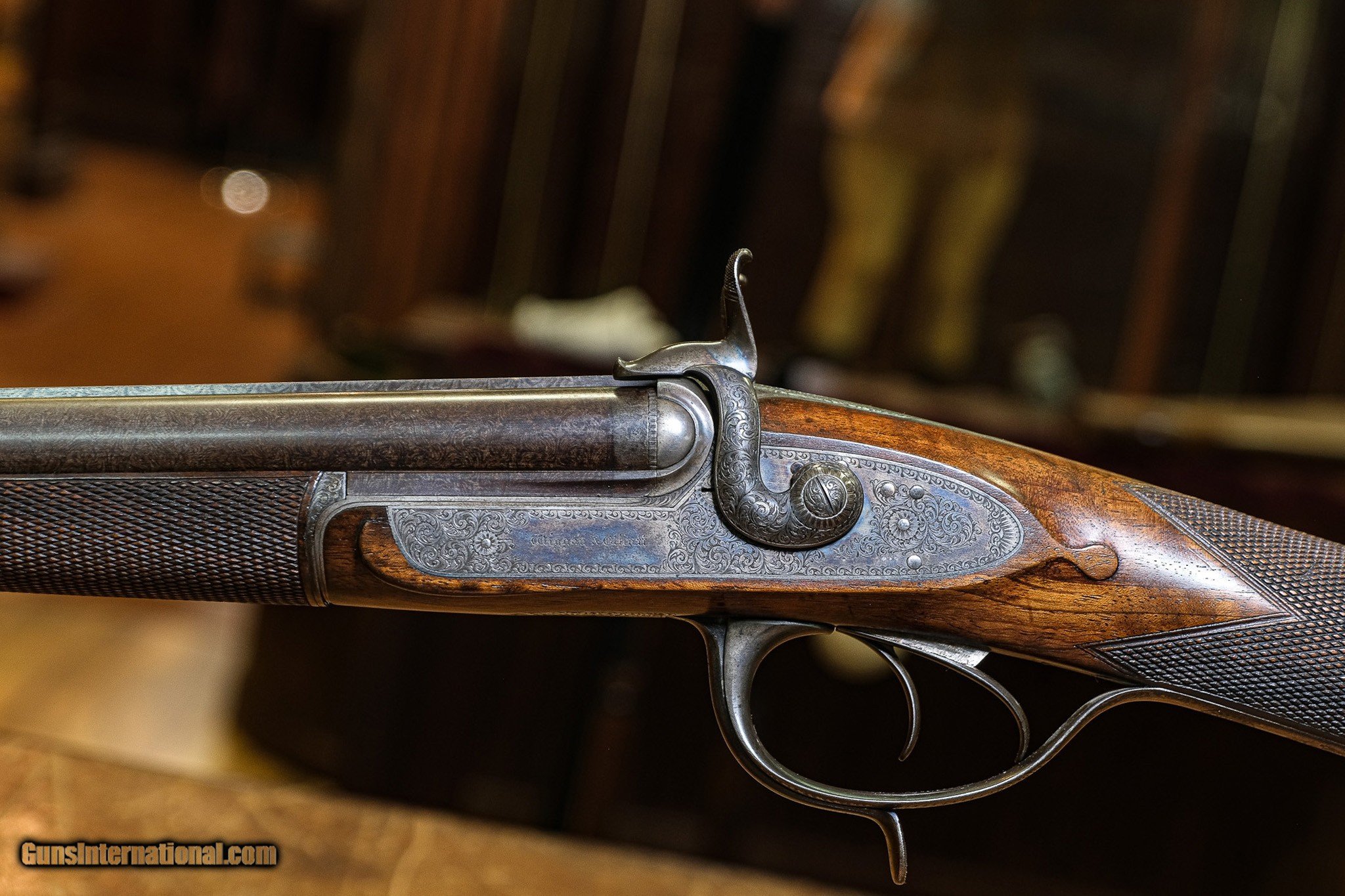 Wiggan & Elliott - Pinfire Underlever, SxS, Elliott's Patent To The Royal Family & Pacha of Egypt, 26ga. 30" Damascus Barrels. MAKE OFFER.