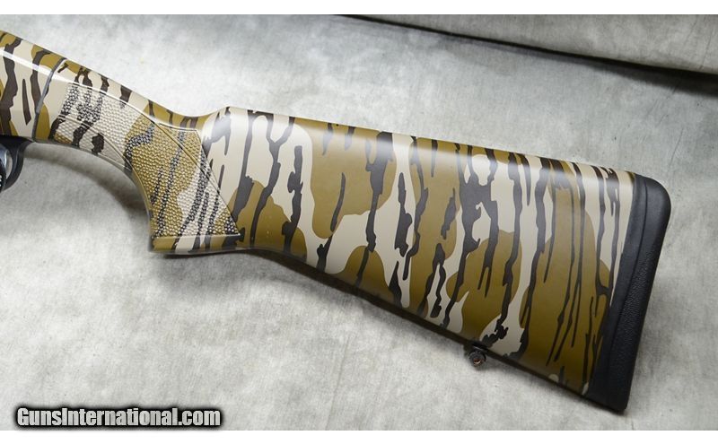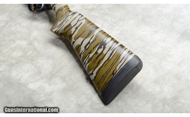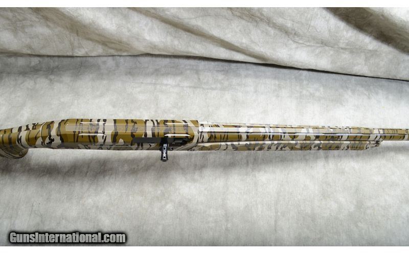 Description: Lightweight semiautomatic shotgun finished with Mossy Oak camouflage, soft recoil pad and three chamber. 12 Gauge SOLD Chambers: 2 + 1 capacity (plugged) 3 inch chamber. Metal Condition: LNIB. Wood Condition: LNIB. Bore Condition: LNIB. Barrels: 28 inch. Triggers: Factory trigger. Stock Dimensions: 14-1/2 inch LOP. Fore End: Semi-beavertail. Butt Pad: Soft rubber pad. Weight: 6 lb - 14 oz Sights: Ventilated rib with white bead. Chokes: Screw-in extended choke system. Item Location: Rogers |