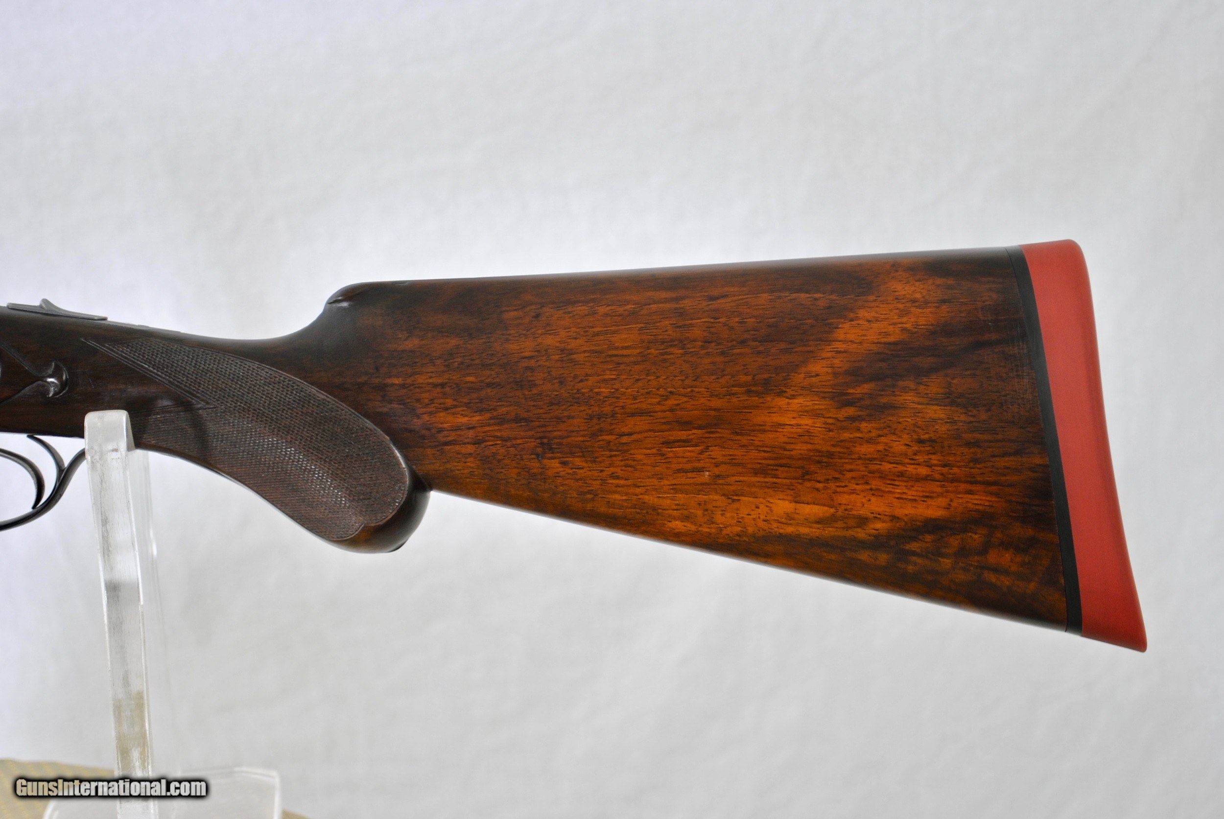 Description: Here is a Pre-War Miller & Val Greiss 12 Gauge with True 32" Krupp Three Ring Ejector Barrels. Back action sidelock with sideclips and a Purdey Style Third Fastener. Mirror bores measuring .726 with Full and Full Chokes (40/1000). Chambers as original at 2 1/2". No loose ribs. Gun is tight on face. Manual safety. Prince of Wales Diamond Grip. No cracks to wood. Shipping is $40. Stock dimensions follow. LOP - 14 1/8" Drop at Comb - 1 1/2" Drop at Heel - 2 5/8" For inquiries please call Guy - 407-721-3748 SOLD Curio/Relic: Yes |
