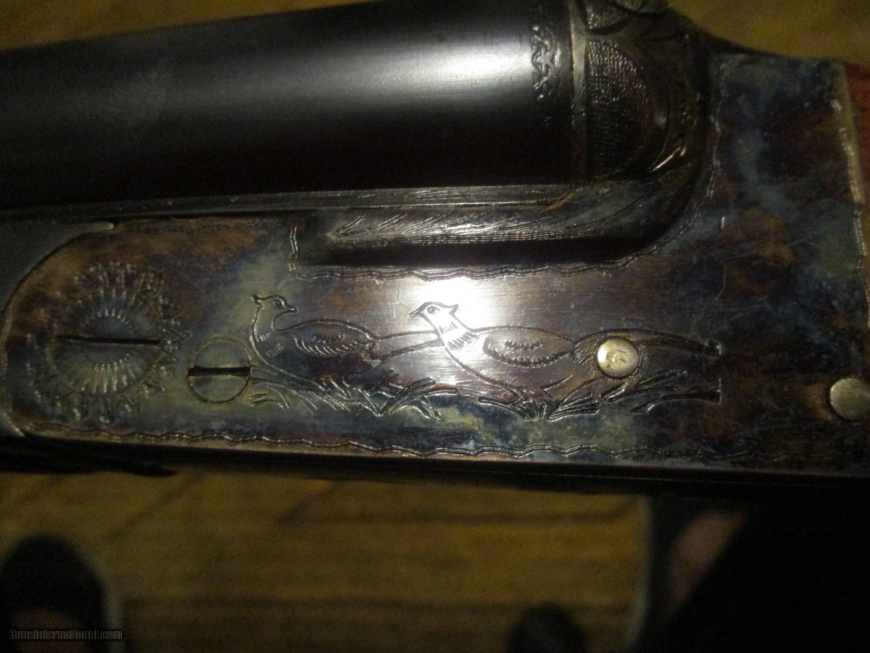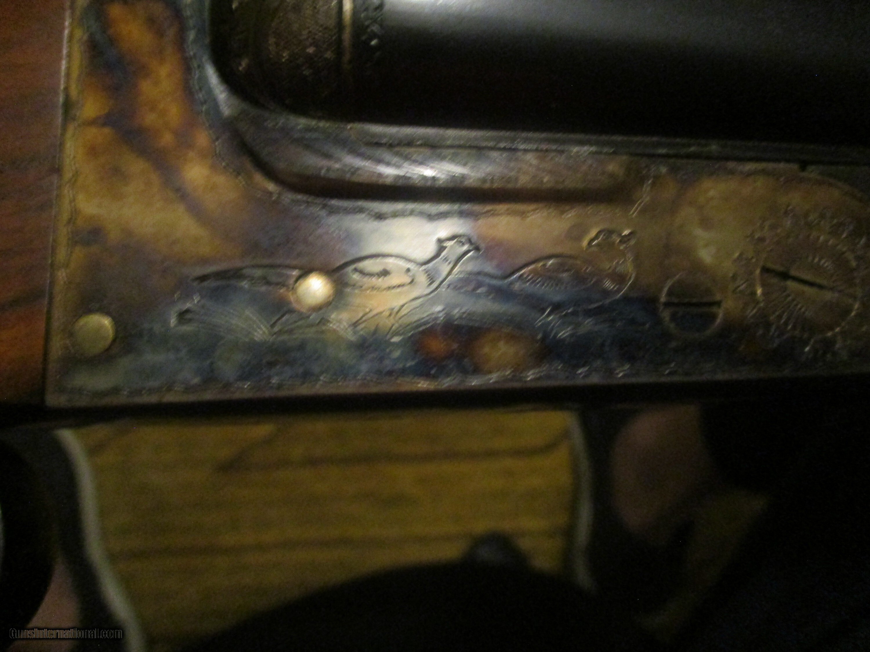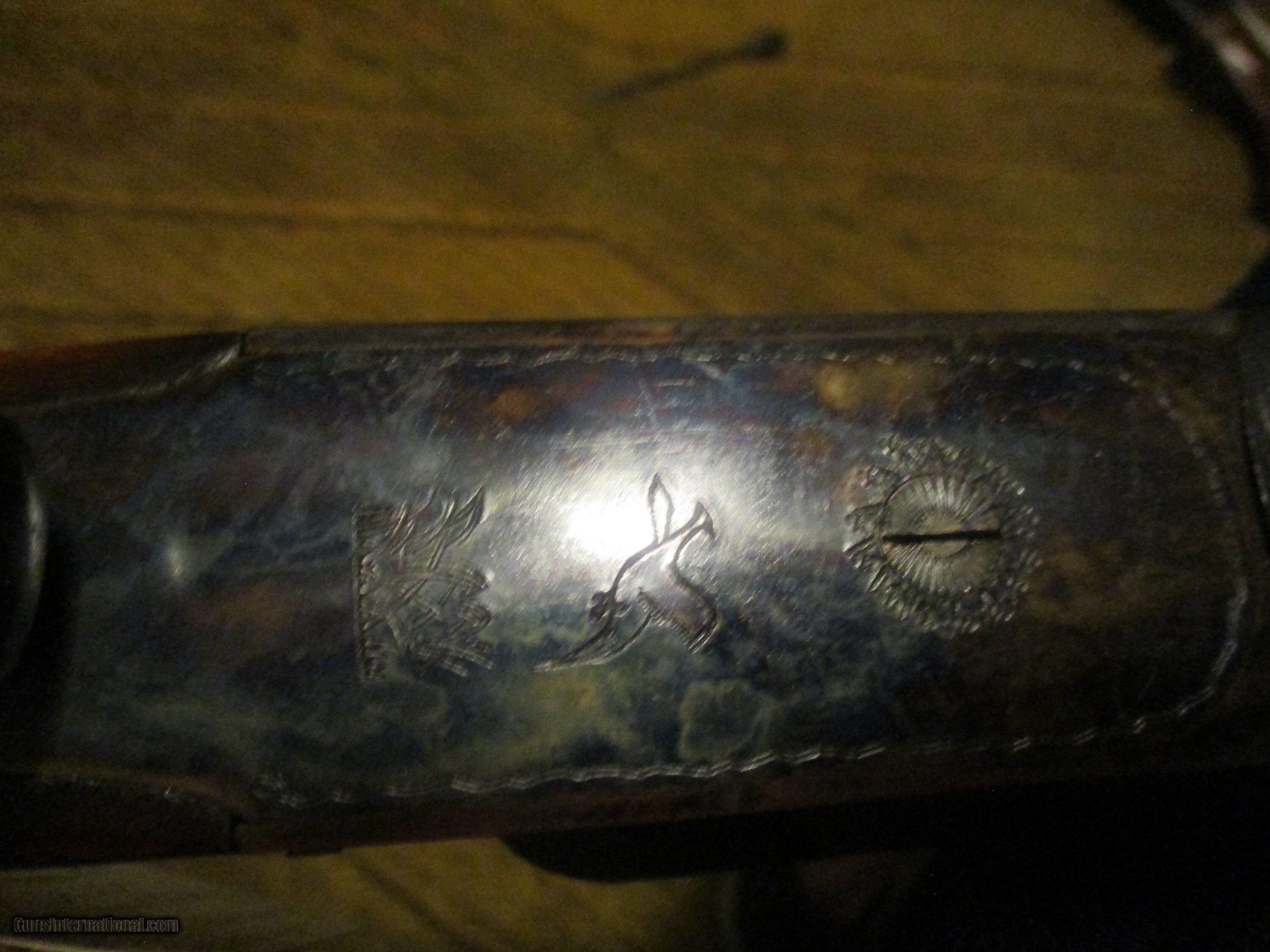 Description: 28" M/F checkered solid Churchill stvle tapered tapered rib, double triggers, rich vivid case colored receiver with engraved biurds,highly figured European checkerd PG stock & beavertail forearm, basketweave checkered buttplate, factory sling swivels, 98% overall, some light handling only, 6lbs., great quality, condition & appeal ! Price: $795.00 Shipping: $795.00 Contact Seller |