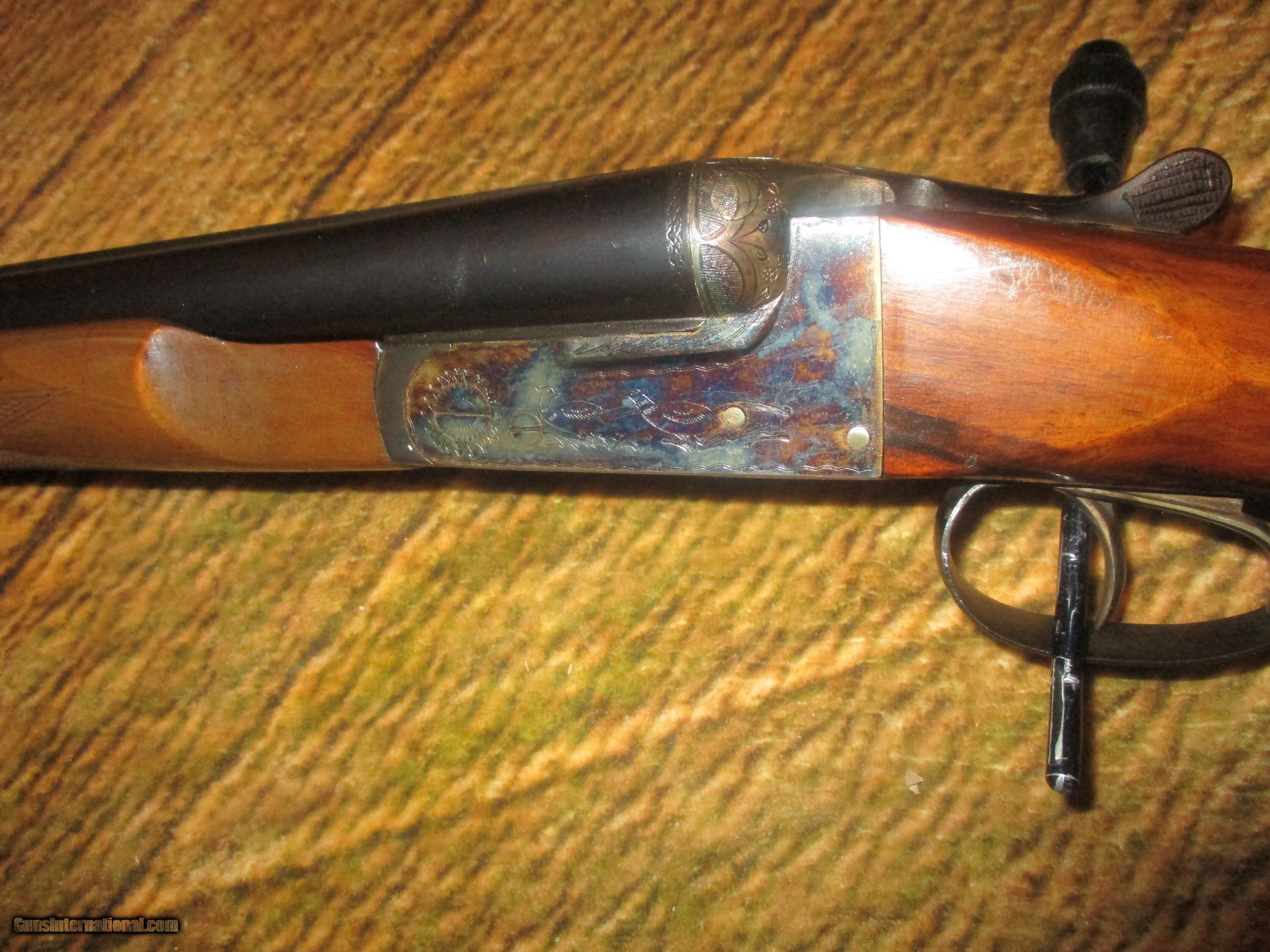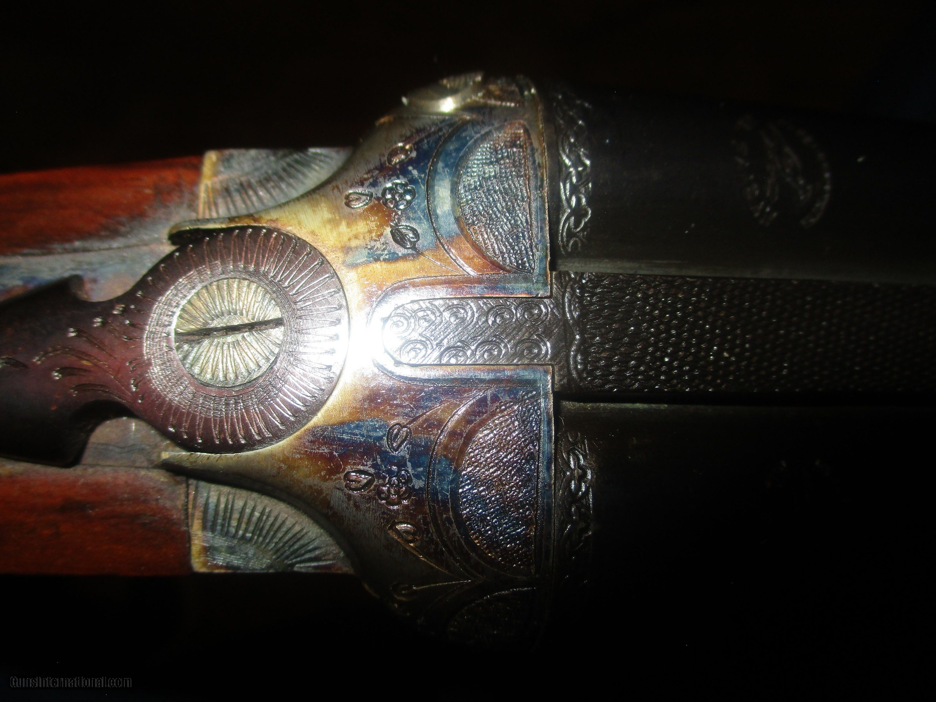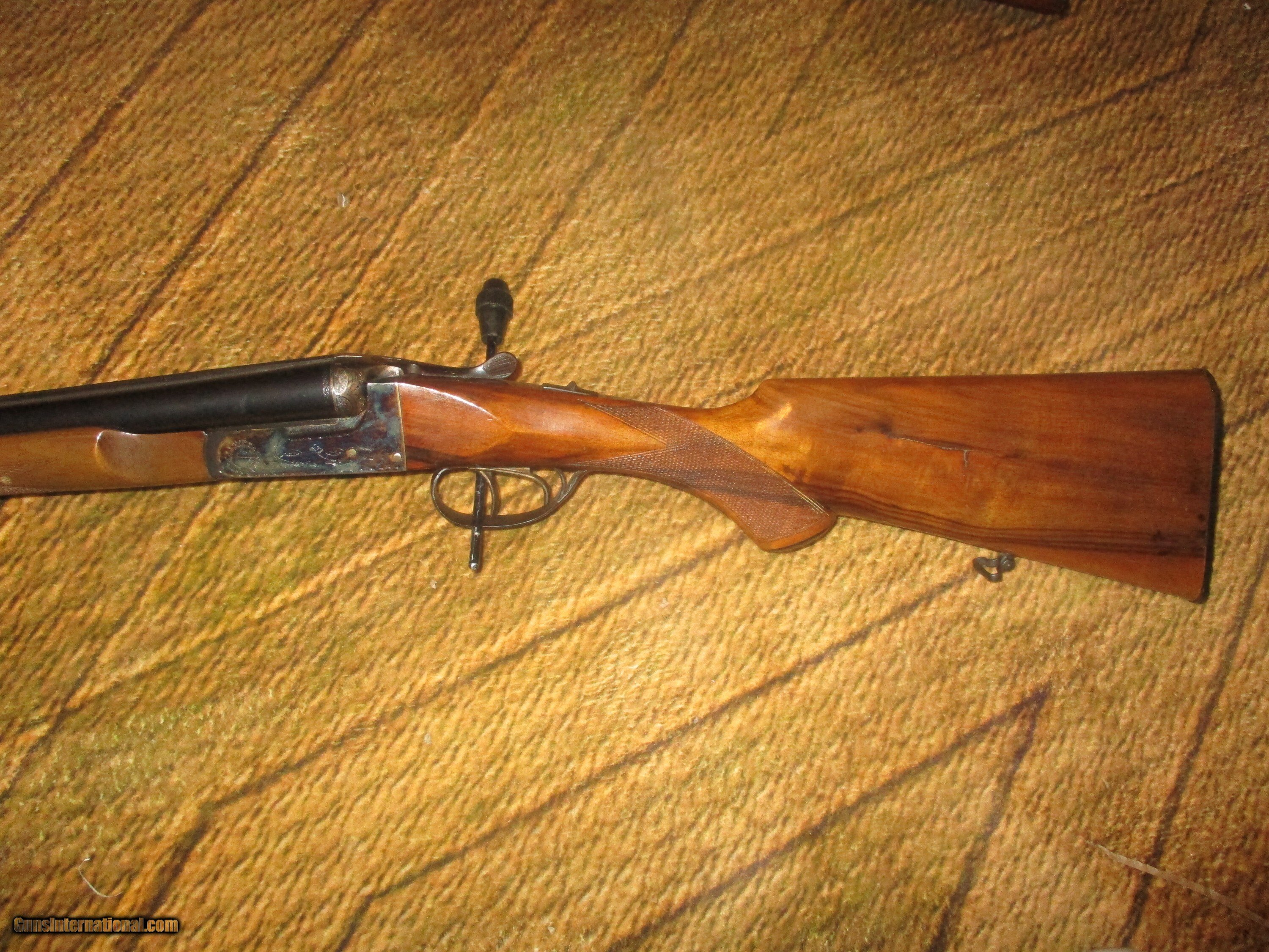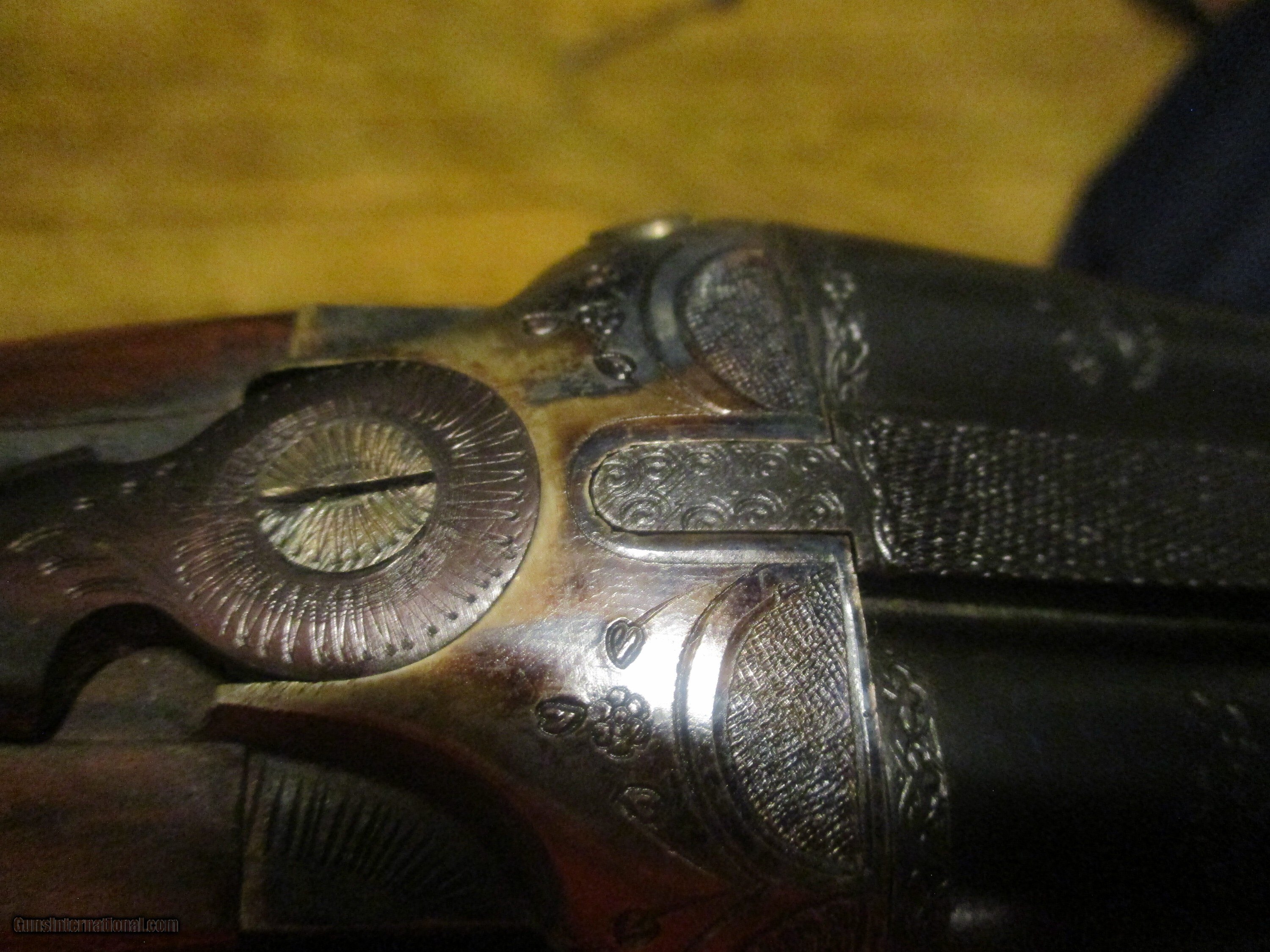 Description: 28" M/F checkered solid Churchill stvle tapered tapered rib, double triggers, rich vivid case colored receiver with engraved biurds,highly figured European checkerd PG stock & beavertail forearm, basketweave checkered buttplate, factory sling swivels, 98% overall, some light handling only, 6lbs., great quality, condition & appeal ! Price: $795.00 Shipping: $795.00 Contact Seller |