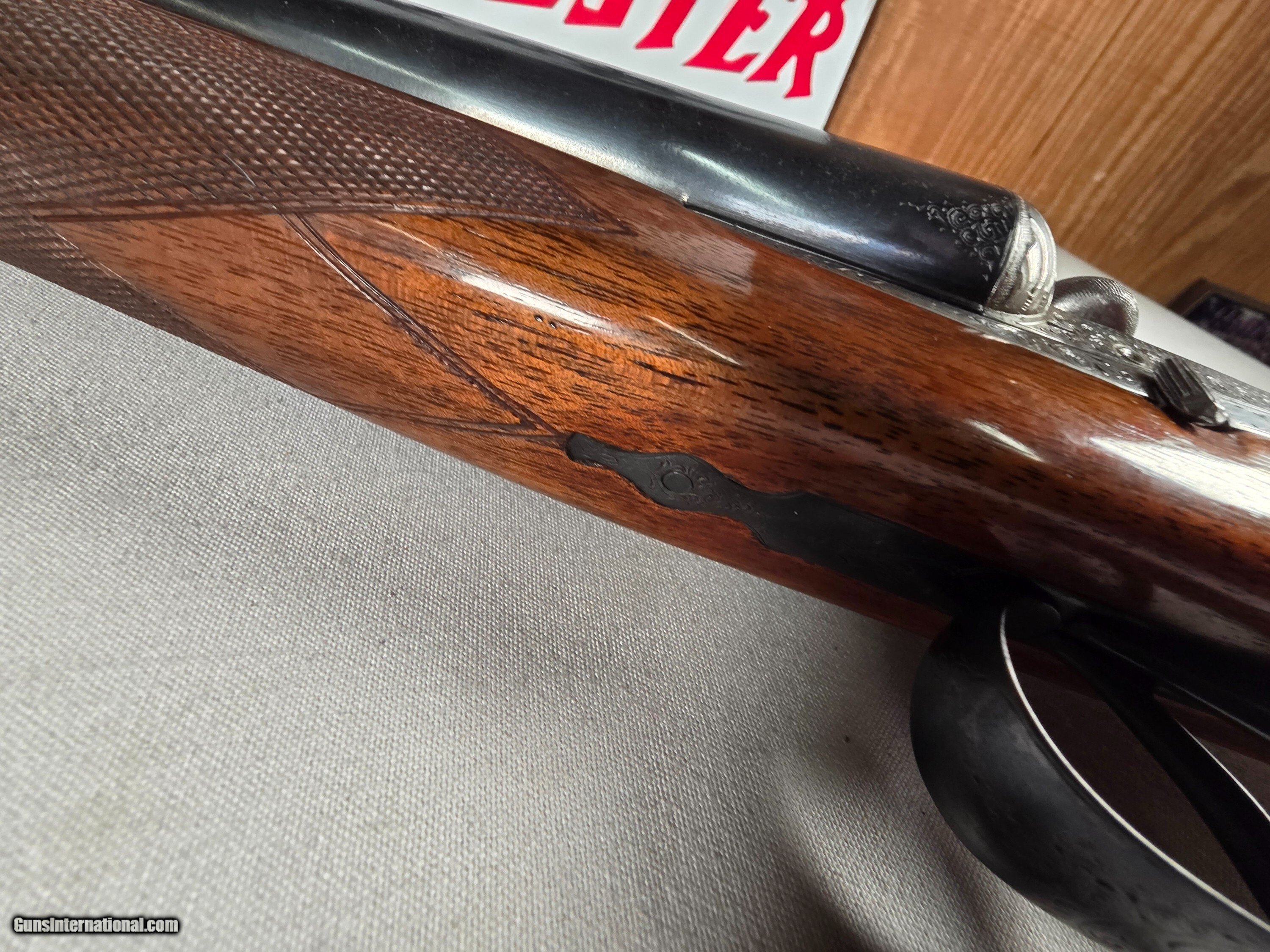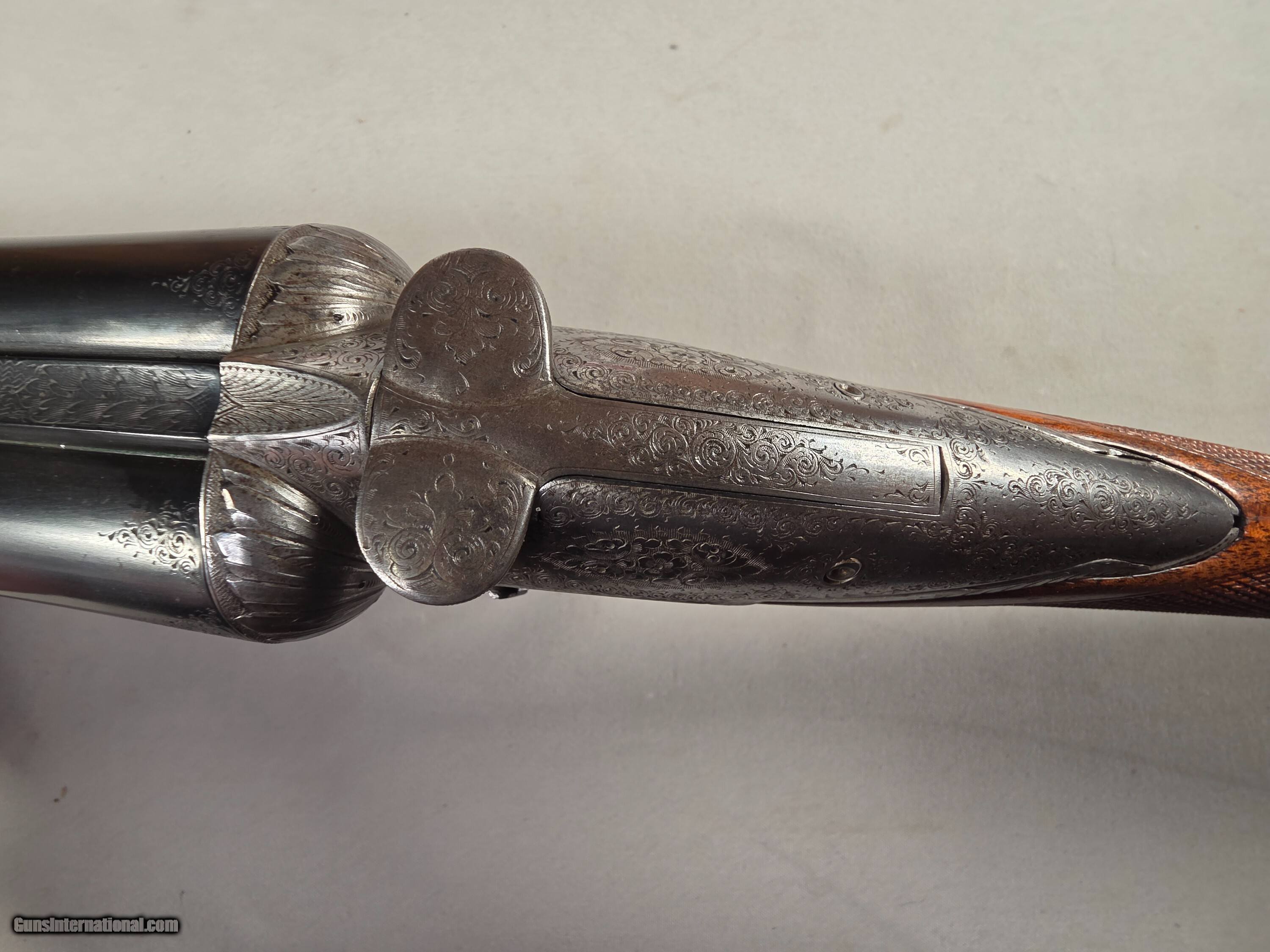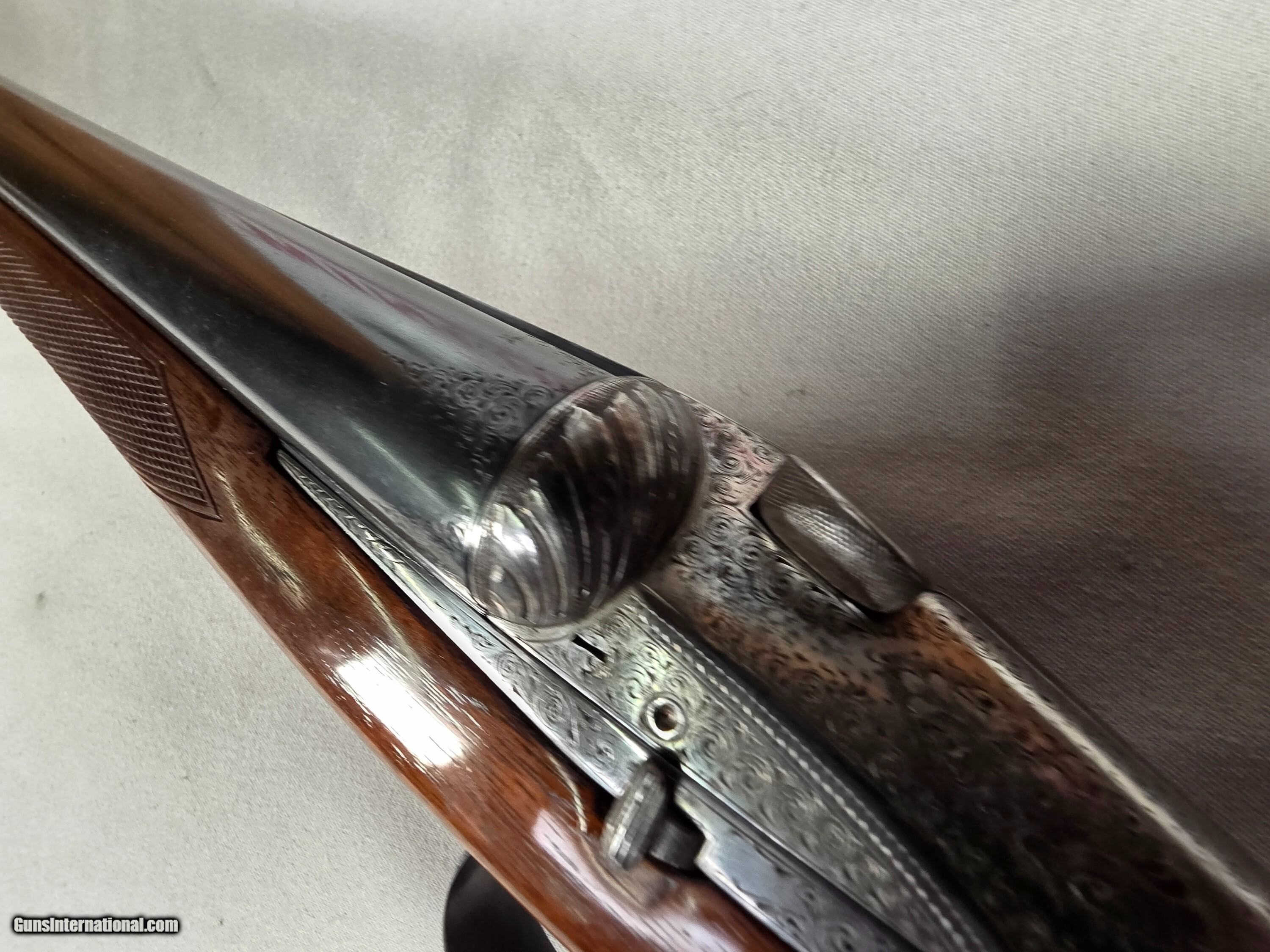 Engraved side by side shotgun, 27” barrels, made in the early 1900’s, 12 gauge, straight grip, sling swivels, so