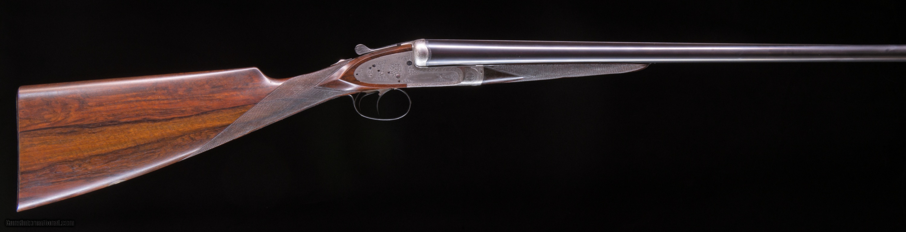 Description: Hammerless Sidelocks - This along with our number 3967 is a fabulous pair of Shotguns. Quality of a Boss, Purdey, or Holland Royal’s this pair is a joy to hold , fondle, and at a price much less than what the others would certainly cost you. BEST quality features include chopperlump barrels, double seared locks, bushed firing pins, and articulated front triggers. Featured in what I believe to be their original retailer’s trunk case these guns are in outstanding condition. The weight and choking combined with their original 2 3/4" chambering make these guns an excellent choice for sporting clays or the hard dying Montana, Dakota\'s and eastern Oregon ringnecks. Our wonderful client and French gun expert Martin provided us the following information on Chapu: Auguste Chapu was located at 5 Avenue de la Grande Armée, Paris from at least 1895 and likely to the 1930s. He was a retailer of high end shotguns and was involved in providing guns and ammunition to the pigeon competitors in the Bois de Boulogne, not far from his shop. Consolidation happened first with Lien-Chapu, then Callens bought that concern which became Lien-Chapu-Callens (1933) which in turn became Callens et Modé until the early 1990s. The Avenue de la Grande Armée shop stayed in all those changes as it is a prestigious location, in close proximity to the Arch of Triumph. Celestin Modé was a true entrepreneur in the business and had bought by the 1920s most of the Parisian second tier retailers and makers, such as Pirlet, Lefaucheux, Rieger, Rochatte, Beringer, Nouvelle, etc. His address was 91, rue de Richelieu. To be clear the price is for the pair, both guns in their excellent case. *** Note: To see this gun with high resolution photos and a zoom-in feature, go to the vintagedoubles main site and search for the gun ID: 3967 or browse the main site to see our full gun collection. |