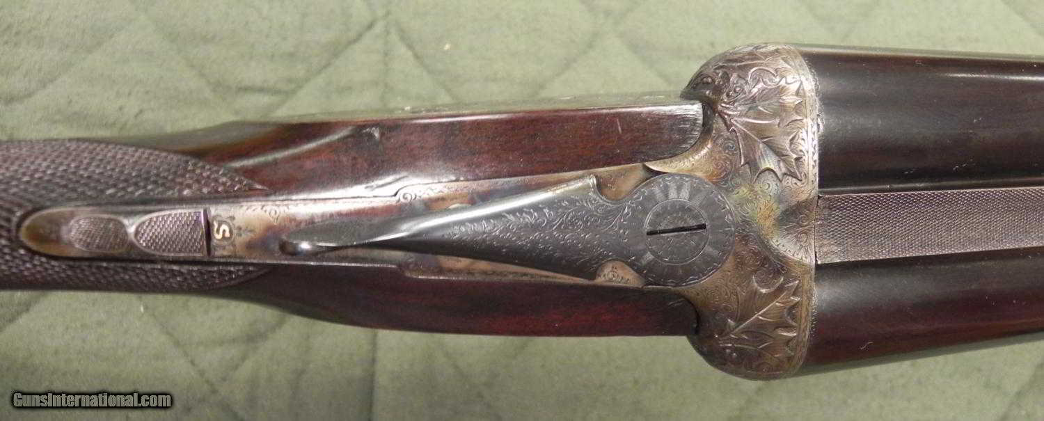 Description: Mainwaring ( Paris) sidelock,12 ga, 27 1/2 barrels, M/F, Dac 1 3/8, Dah 1 3/4,Cast off 1 3/4, positive pitch 2 3/4, 99%, Lop 14 7/8, leather cased with tools. SOLD |