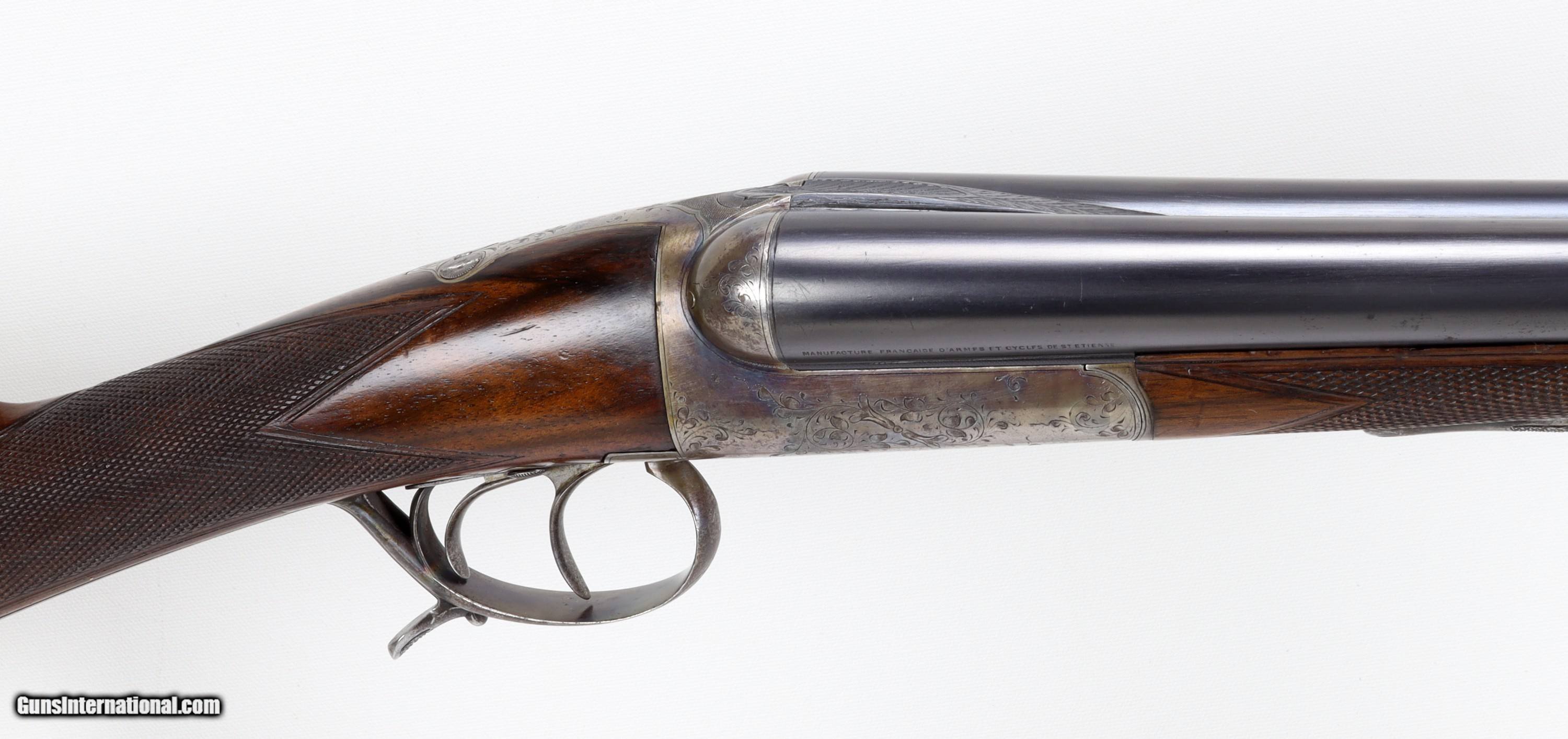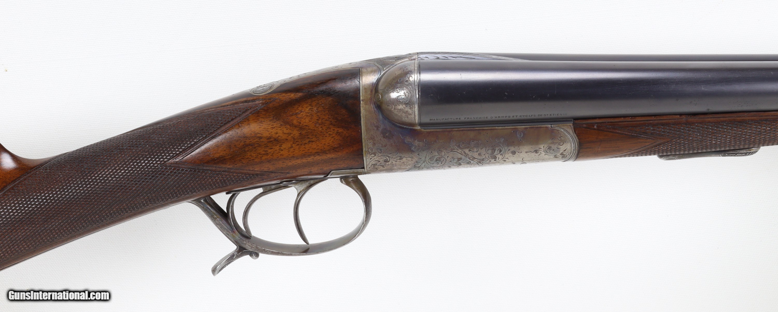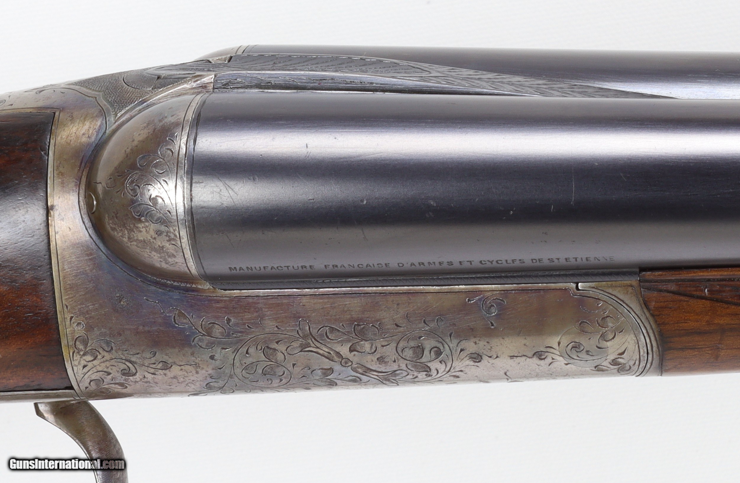 Description: MANUFRANCE, "FRANCAISE D, ARMES, IDEAL #3, SN#50279, 12GA, Round Body, 27 1/2" Barrels, Bright and Clear. LOP: 14 3/4 & 13 3/4, DAC: 1 3/8, DAH: 2 1/4", Weight: 6lbs, 14ozs. Choked. R- L Full, L-I Mod. "This is a Trigger Finger Lock Release Shotgun", Beautifully Made, Fun to Shoot, in Fine Original Shape, W/Retractable Sling. New Recoil Pad. Ships to Lower 48, W Insurance: $55.00 Manufrance Manufactured Guns from the late 1800's to the 1960's, When French Laws made the Manufacture of Firearms Un-Profitable. Sold to Alabama Buyer Pending Receipt of Funds SOLD |