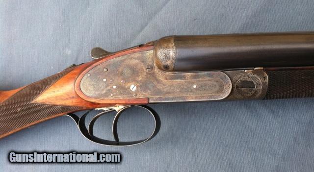 Description: Price Reduced! Maker: N. Guyot ARQ ER, 12 Rue de Ponthieu Paris, France Proofs between 1902 and 1922. Serial number: 12431 Model: Best Sidelock Gauge: 12g. 2-3/4" chambers (lengthened from 2-1/2" original) Barrels/Action: length 27-3/4" (metric equal to 28"), Chokes R-.015", L-,055", Chopper Lump Construction, underbite. Paris double proof, side clips and third fastener, Auto Ejectors. Engraving: Purdy Style Rose Bouquet & Scroll Stock Dimensions: 14-5/8" LOP, Drops of 1-1/2" and 2-3/8". Straight Grip. Weight: 6 lbs. 7 oz. This gun is in excellent condition. Paris Best qualtity through and through. Ship to FFL or C&R. Shipping included in advertised purchase price. $5,200 SOLD Curio/Relic: Yes Manufacturer: N. Guyot Model: Best Sidelock Serial Number: 12431 Bore: 12 Chambers: 2-3/4 Ejectors: YES Metal Condition: 98% Wood Condition: 95% Bore Condition: Exc. Barrel Type: Chopper Lump Action: Sidelock Triggers: Doube Stock: French Walnut Stock Comb: 1-1/2 Stock Heel: 2-3/8 Stock Cast: No Fore End: Splinter Butt Pad: Hard Plate LOP: 14-5/8 Weight: 6 lbs 7 oz. Chokes: Fixed Choke Left: .055 Choke Right: .015 Engraving: YES Item Location: Hilton, NY Proof:Nitro: YES |