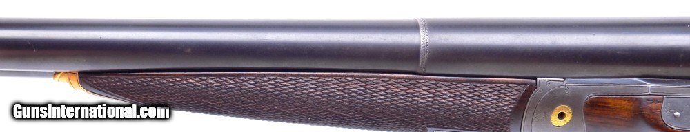 Description: Another “ESTATE” firearm listing brought to you from Dust 2 Dollars who prides themselves on showing the complete gun in high quality pictures along with a detailed description for your consideration. We offer you a “RARE” 20 Gauge Houllier Blanchard Top Lever Double Barrel Shotgun with Fluid Steel Barrels from 1887. To start with this is #2 of a pair of presentation shotguns that the history has been lost during the last 135 years. Is has been restored long ago judging by the repair to the butt stock. It wears 29 ¼ inch fluid steel barrels with 2 ½ inch cambers and excellent bores with no issues. The finish is in excellent condition with no signs of old pitting under the finish. The rib is marked with the roman number “II” followed by “HOULLIER BLANCHARD A. NOUVILLE SUCCESSEUR PARIS”. Or at least that is how I’m reading it. It’s in script and not easy to make out, neither is the writing in the scroll work on each side of the receiver. The left side “HOULLIER BLANCHARD A. NOUVILLE SUCC”. The right side “CANONNIER ARQUEBUSIER BREVET PARIS”. The lever is also marked with the roman number “II”. The markings on the water table and forearm are shown in the pictures. This design of the shotgun is such that the forearm is attached to the receiver. Once you push the release lever over, the gun opens and with a push of the button on the end of the forearm the barrels are released and lift off. The forearm has a plaque design that was carved out of the wood with gold initials as shown. I would expect those were those of the original owner the gun was presented too. The forearm is in excellent condition as you can see. The butt stock was broken and repaired as mentioned. Some of the filler has become loose over the years and the repair material has separated as you can see. The butt stock shows a high quality of figure as you can see. The birds beak checkered butt plate also shows quality. There are several gold accented parts to the gun as we have shown. The gun functions just fine and is a very fine looking and configured double from long ago. To start with this is #2 of a pair of presentation shotguns that the history has been lost during the last 135 years. Is has been restored long ago judging by the repair to the butt stock. It wears 29 ¼ inch fluid steel barrels with 2 ½ inch cambers and excellent bores with no issues. The finish is in excellent condition with no signs of old pitting under the finish. The rib is marked with the roman number “II” followed by “HOULLIER BLANCHARD A. NOUVILLE SUCCESSEUR PARIS”. Or at least that is how I’m reading it. It’s in script and not easy to make out, neither is the writing in the scroll work on each side of the receiver. The left side “HOULLIER BLANCHARD A. NOUVILLE SUCC”. The right side “CANONNIER ARQUEBUSIER BREVET PARIS”. The lever is also marked with the roman number “II”. The markings on the water table and forearm are shown in the pictures. This design of the shotgun is such that the forearm is attached to the receiver. Once you push the release lever over, the gun opens and with a push of the button on the end of the forearm the barrels are released and lift off. The forearm has a plaque design that was carved out of the wood with gold initials as shown. I would expect those were those of the original owner the gun was presented too. The forearm is in excellent condition as you can see. The butt stock was broken and repaired as mentioned. Some of the filler has become loose over the years and the repair material has separated as you can see. The butt stock shows a high quality of figure as you can see. The birds beak checkered butt plate also shows quality. There are several gold accented parts to the gun as we have shown. The gun functions just fine and is a very fine looking and configured double from long ago. SALE PENDING This will be shipped fully insured UPS Ground to you where allowed $75. It will be shipped in a foam lined double walled cardboard box that we have manufactured for us so that your gun arrives safe. Payment to be made by USPS Money Order or Cashier’s Check. All firearms come with a 3-day inspection from D2D’s. SOLD Antique: Yes Shotgun Gauge: 20 Gauge |