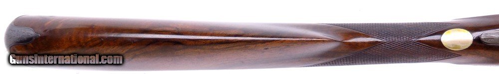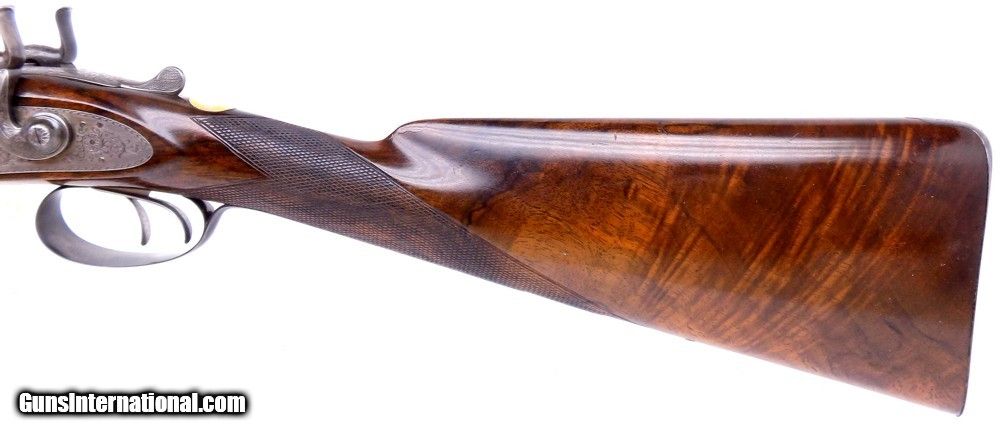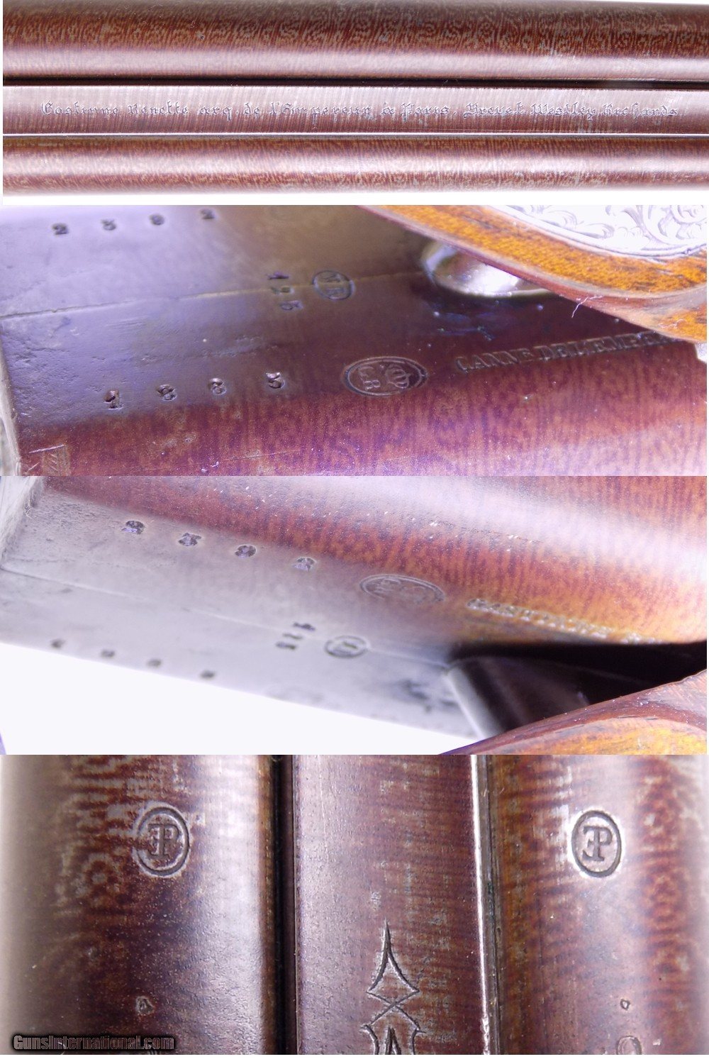 Description: ****************SALE PENDING**************** A customer has committed to the purchase of this listing. It takes time to complete a purchase so the listing may be "SALE PENDING" for some time before the transaction is completed. Another “ESTATE” firearm listing brought to you from Dust 2 Dollars who prides themselves on showing the complete gun in high quality pictures along with a detailed description for your consideration. We offer you a “SCARCE” Gastinne Renette (Paris) Top Lever 16 gauge Double Pinfire Shotgun manufactured in 1865. Louis-Julien Gastinne-Renette (1812-1885) was one of the leading Parisian gun makers in the mid-19th century and was the gun maker of Emperor Napoleon III and the king of Spain. He took over the shop of his father-in-law in 1840, and won numerous awards at French national as well as international exhibitions of the time. The shop and the shooting gallery of Gastine-Renette was the meeting point of all influential VIP’s in the country. Top lever pin fire shotguns by Gastinne Renette are very rare and scarcely seen. This one was refinished long ago and is in excellent condition as you can see. It wears 29 3/8 inch barrels with excellent bores. The damasks pattern is very vivid and well defined. The rib is marked “Gastinne Renette arq. de l'Empereur a Paris. Brevet Westley Richards". Brevet Westley Richards is French for "Westley Richards patented". Each barrel at the chamber is marked with an intertwined "EP" which is a Paris proof house marking. The bottom of each barrel is marked with a “Crown over GR” which was Gastinne Renette’s own cartouche. The other marks are a “WR” on the barrels flats which was the Westley Richards connection for their patented top lever locking system. The left barrel is also marked with the year of manufacture “1865”, with the right barrel showing the serial number of “2392”. The length of pull is 14 1/8 over the original butt plate. The metal shows fine and delicate engraving as you can see. The hammers are original and are also engraved. Each plate has the name “Gastinne Renette” engraved onto it as shown. The wood is in excellent condition with no signs of cracks, chips or repairs and is highly figured. The forearm design shows two very small wood plugs of which one is missing as shown. The original sling swivel under the barrel and in the butt stock has been removed. No alterations were done to the shotgun for this, they were just removed. The action is tight with no issues and both hammers function as they should. This will be shipped fully insured UPS Ground to you where allowed for $75. Payment to be made by USPS Money Order or Cashier’s Check. All firearms come with a 3-day inspection from D2D’s. SOLD Antique: Yes Shotgun Gauge: 16 Gauge |