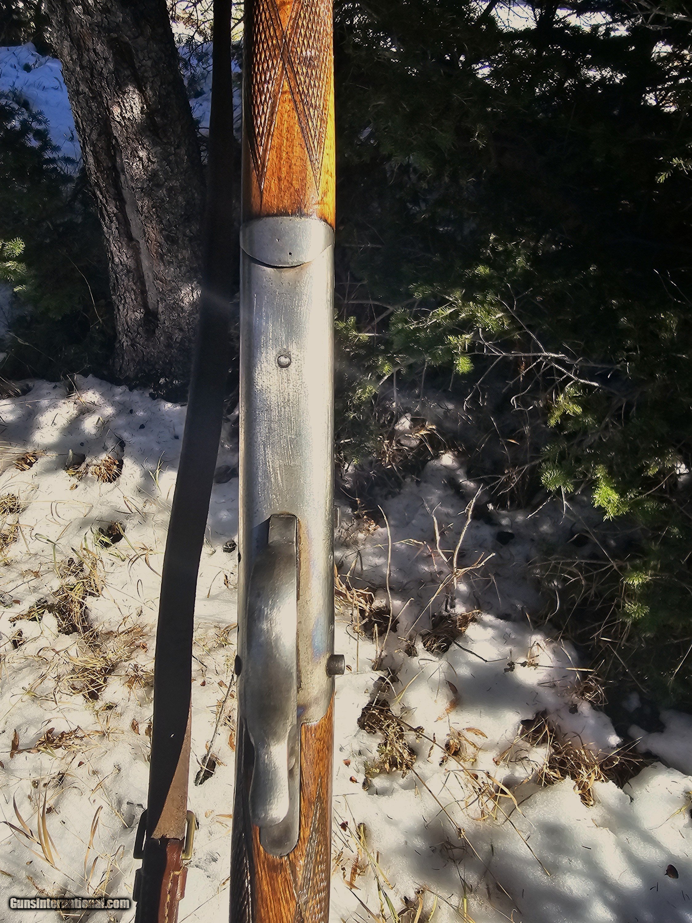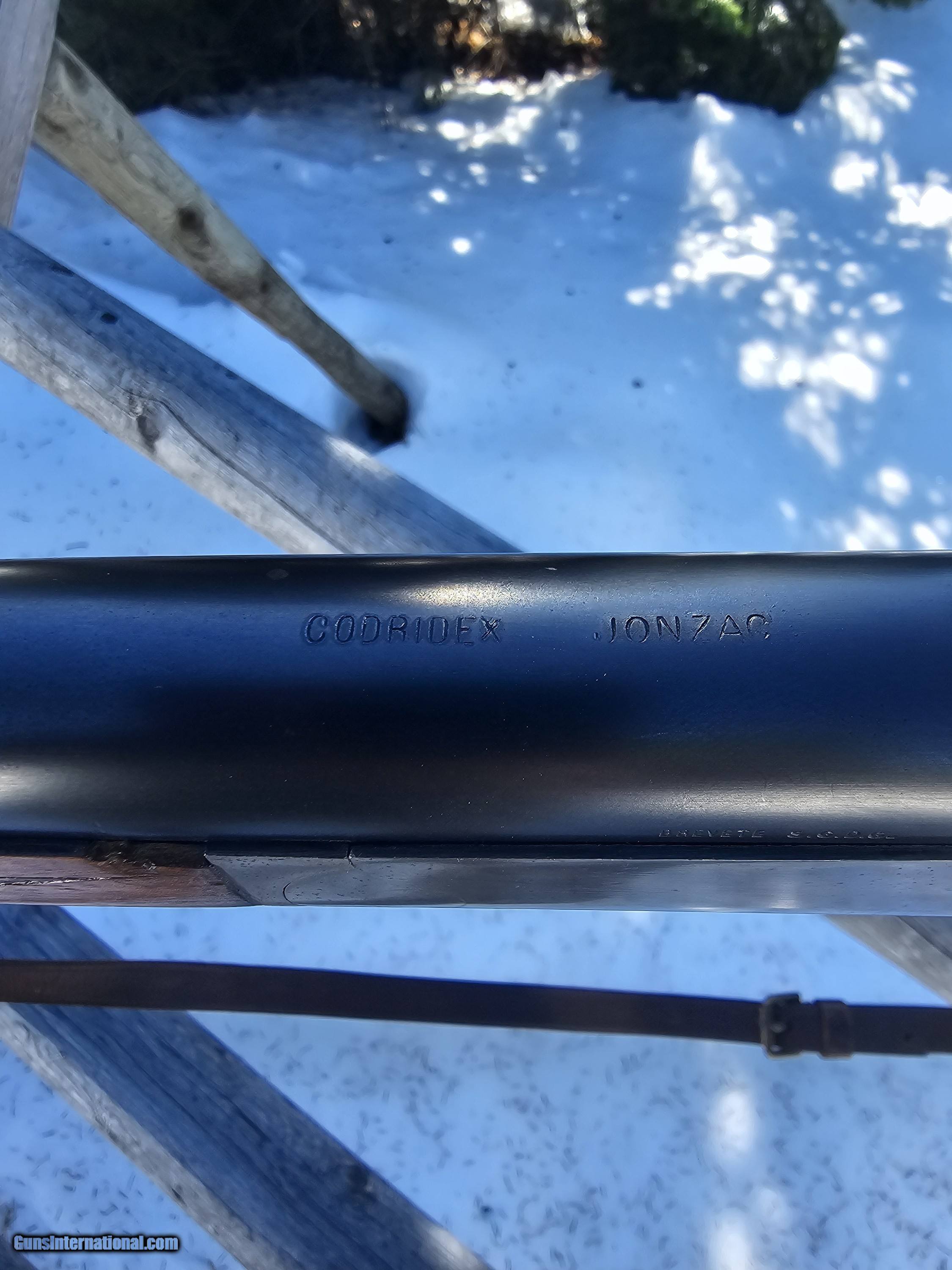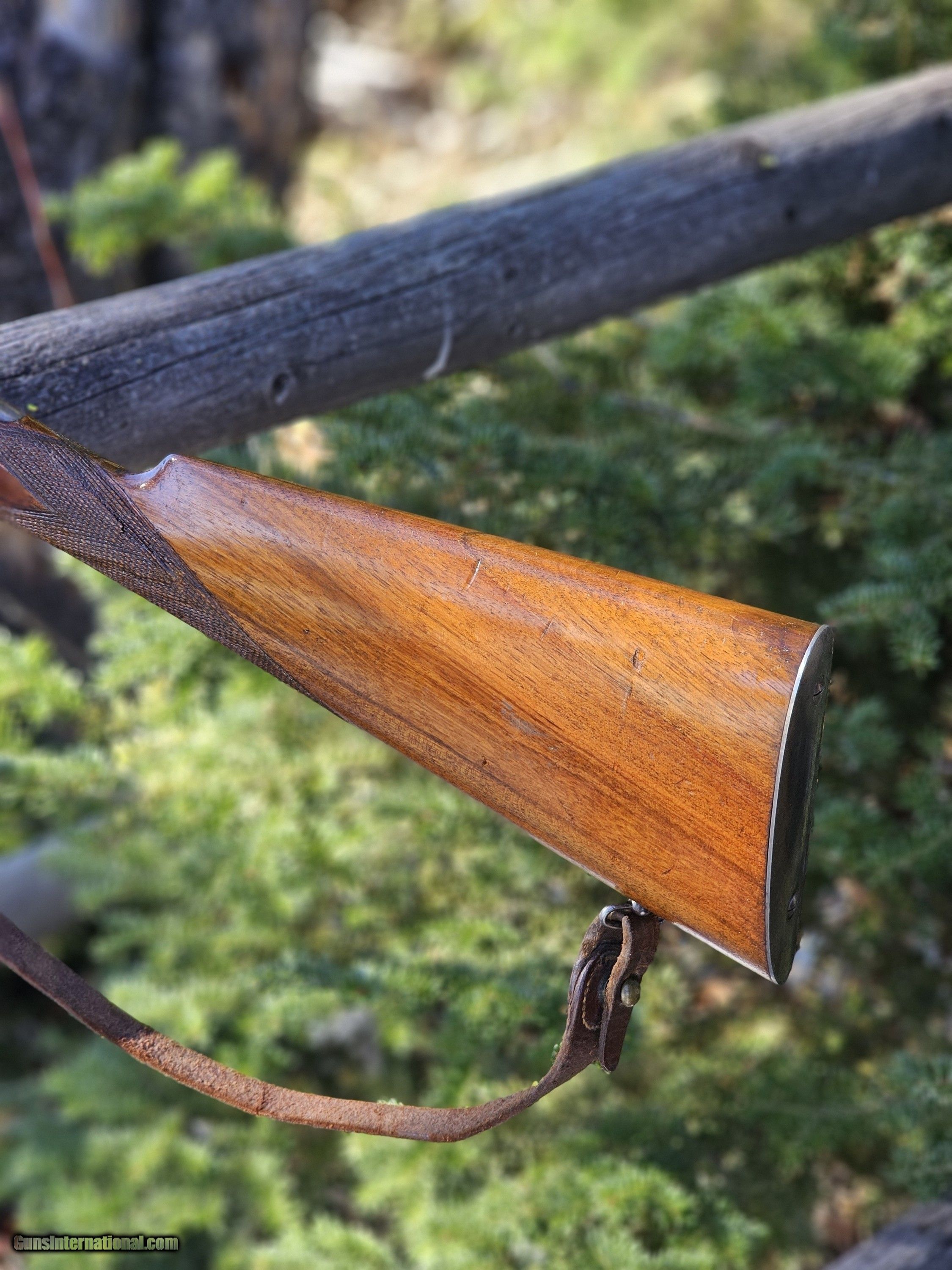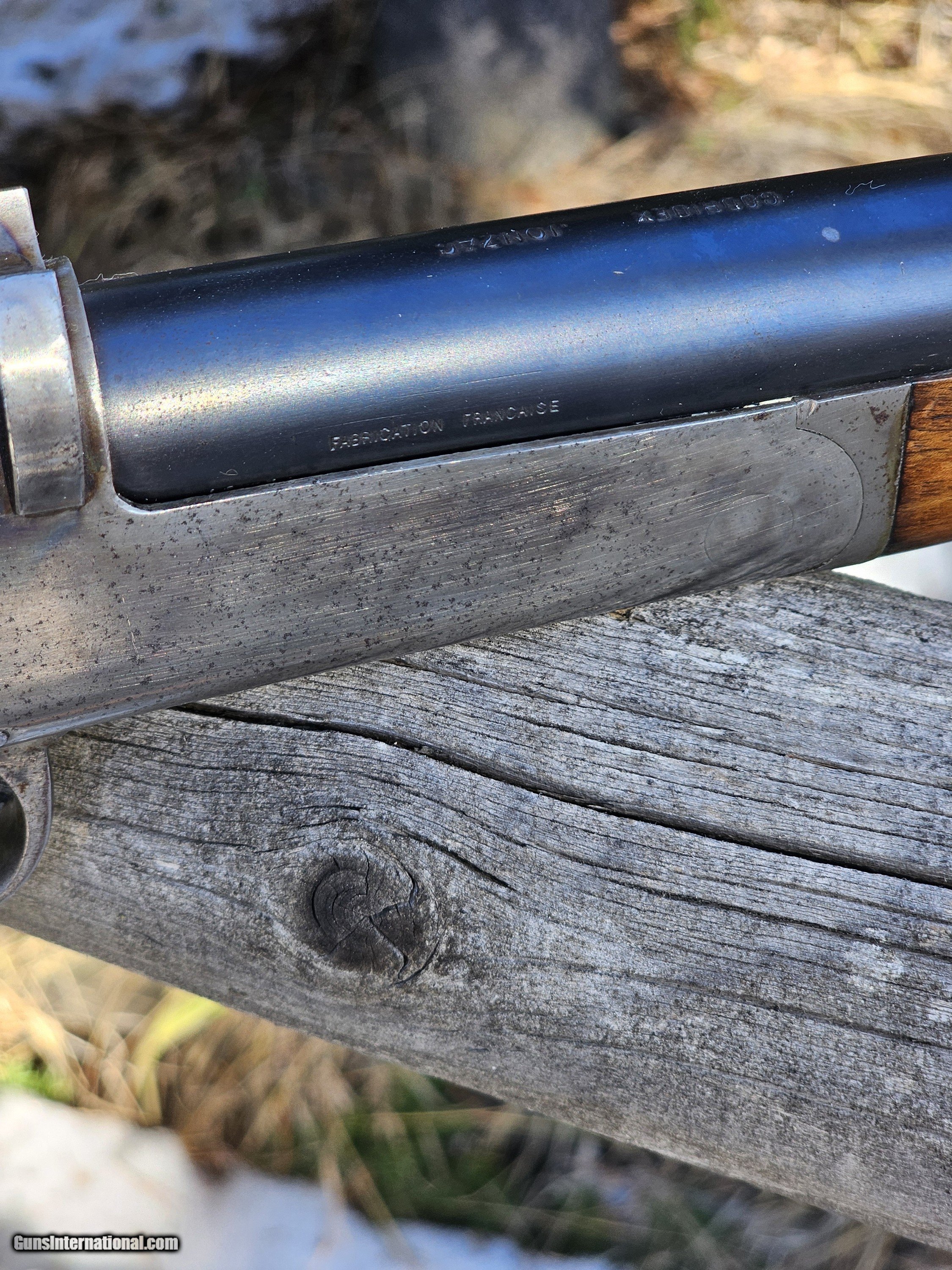 Description: Here is a neat little French 16 gauge under-lever single shot shotgun. The ribless barrel is 27 1/2" (70cm) with a 2 1/2" chamber and very good bore, choked full. The fore-end is of the pull-off variety. The length of pull is 13 7/8" with a smooth steel butt-plate. There are sling swivels and a vintage leather sling. The weight is 5 lbs 11 oz. A classic European game keeper-type gun. Curio/Relic: Yes Shotgun Gauge: 16 Gauge Price: $525.00 Buy Now Contact Seller |