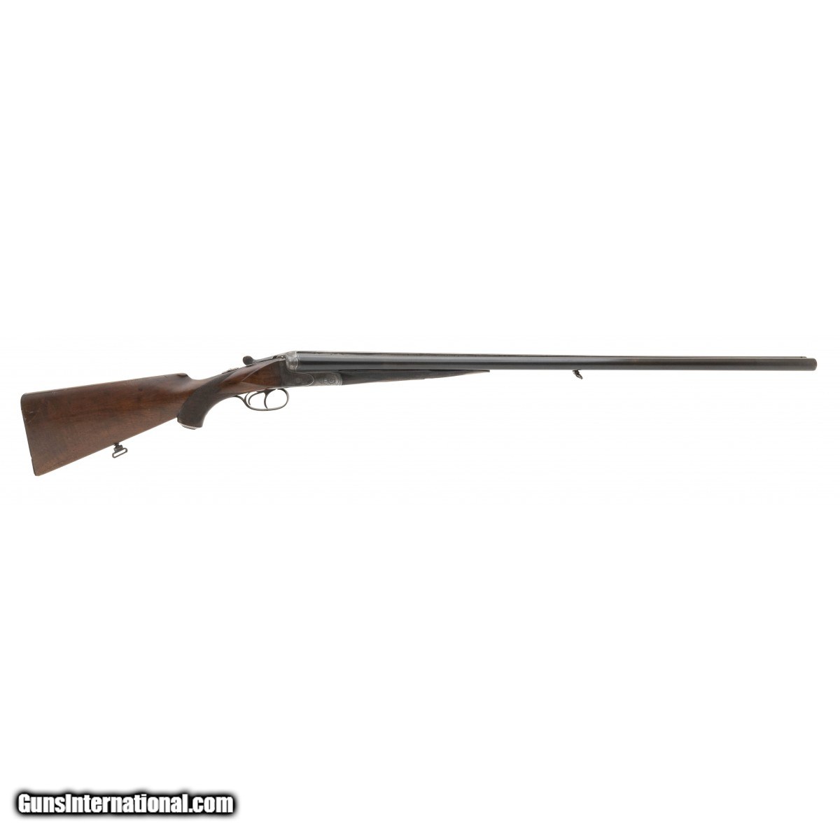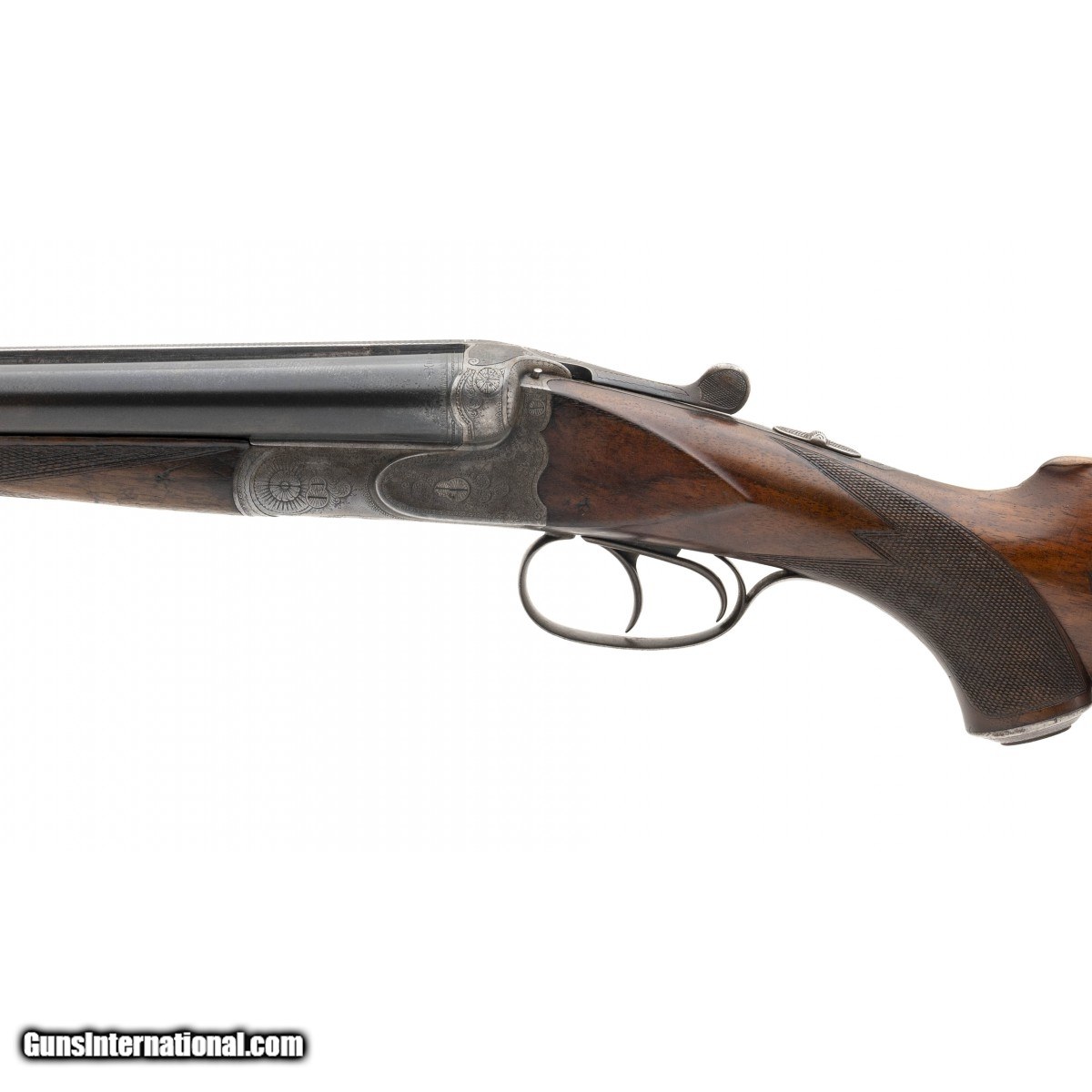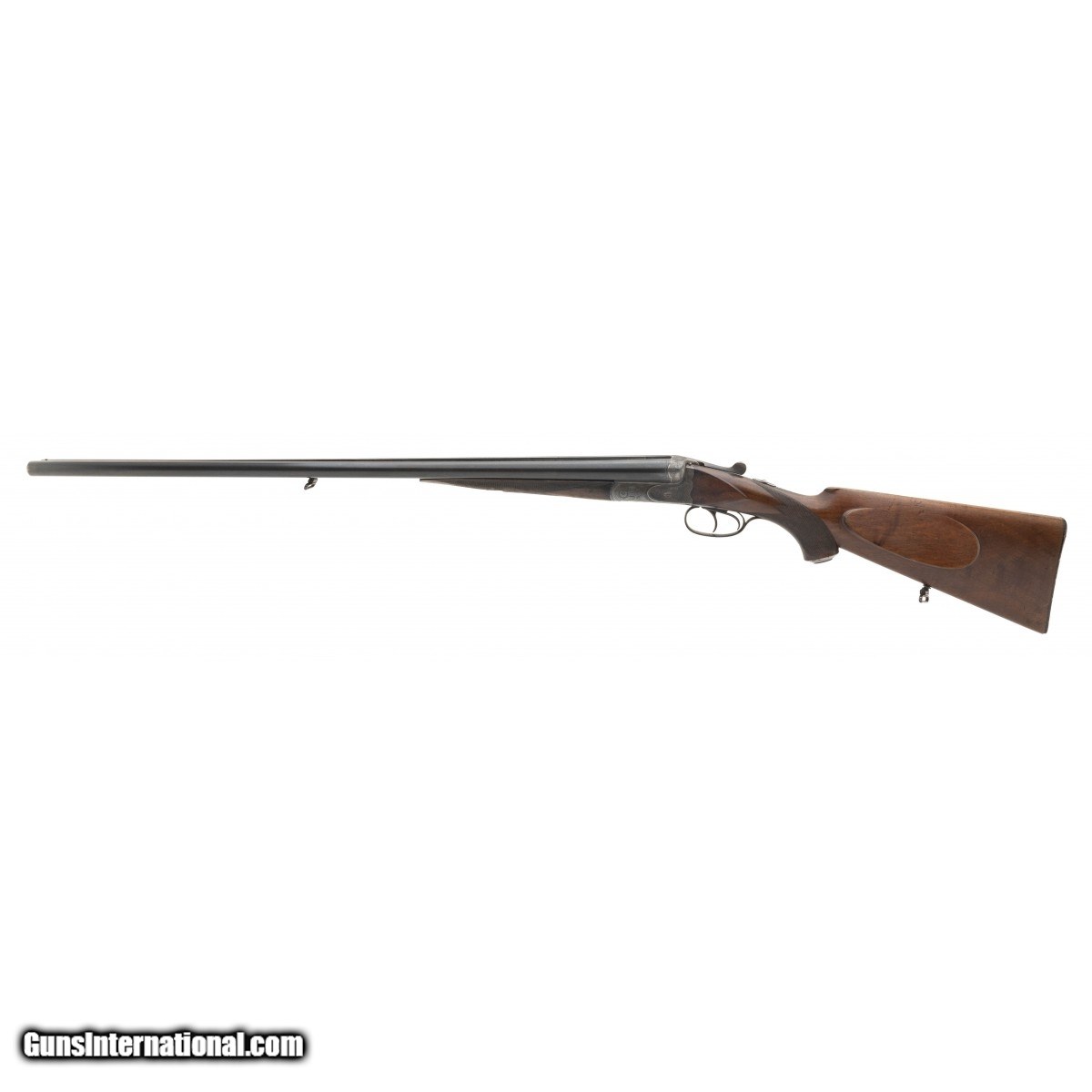 Description: " Pre war German side by side retailed by Henrich Munch. Shotgun is of a very high quality and has auto ejectors and cocking indicators. Chambers are 2 3/4"". Barrels are 29"" choked full. Receiver and pistol grip cap are scroll engraved. Horn butt has some bug damage, no cracks. Stocks has some field wear, otherwise good condition overall. SOLD |