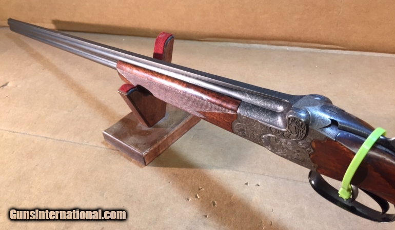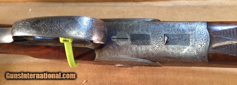 Description: Made in 1925, Sold to a New York City stock . Very Petite little shotgun made to full length. Highly Engraved .410 O/U. 14.5" LOP. Gun is in original condition, has never been re blued or re worked. Still shows original case coloring. In OUTSTANDING condition. Very Rare gun as very few Grade 1 .410's were ever made. Gun will make a beautiful addition to any collection. SOLD |