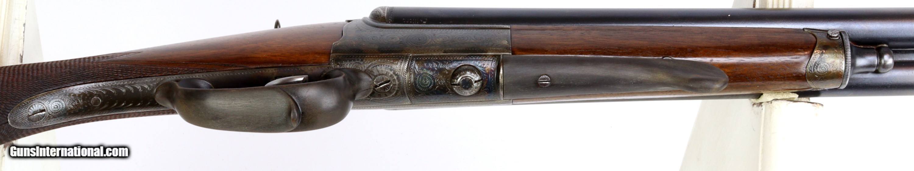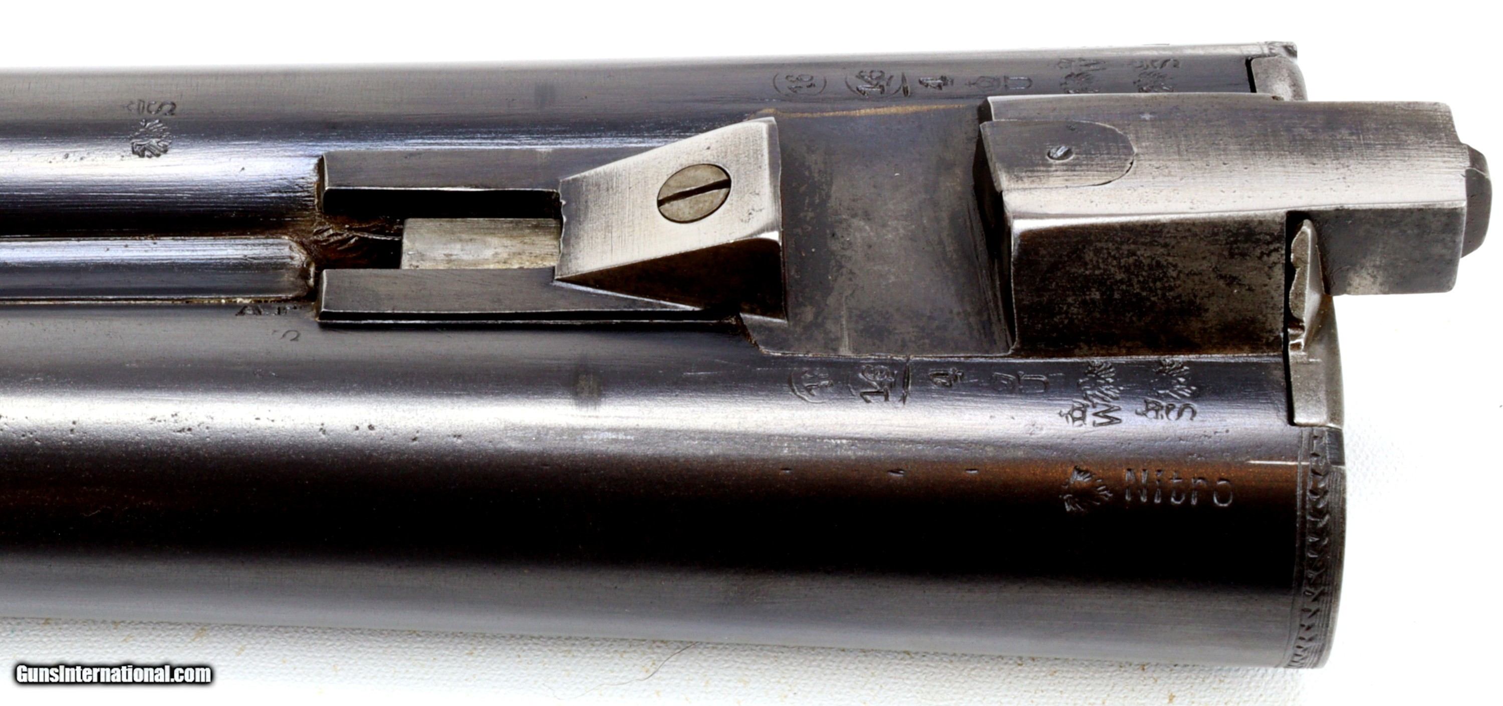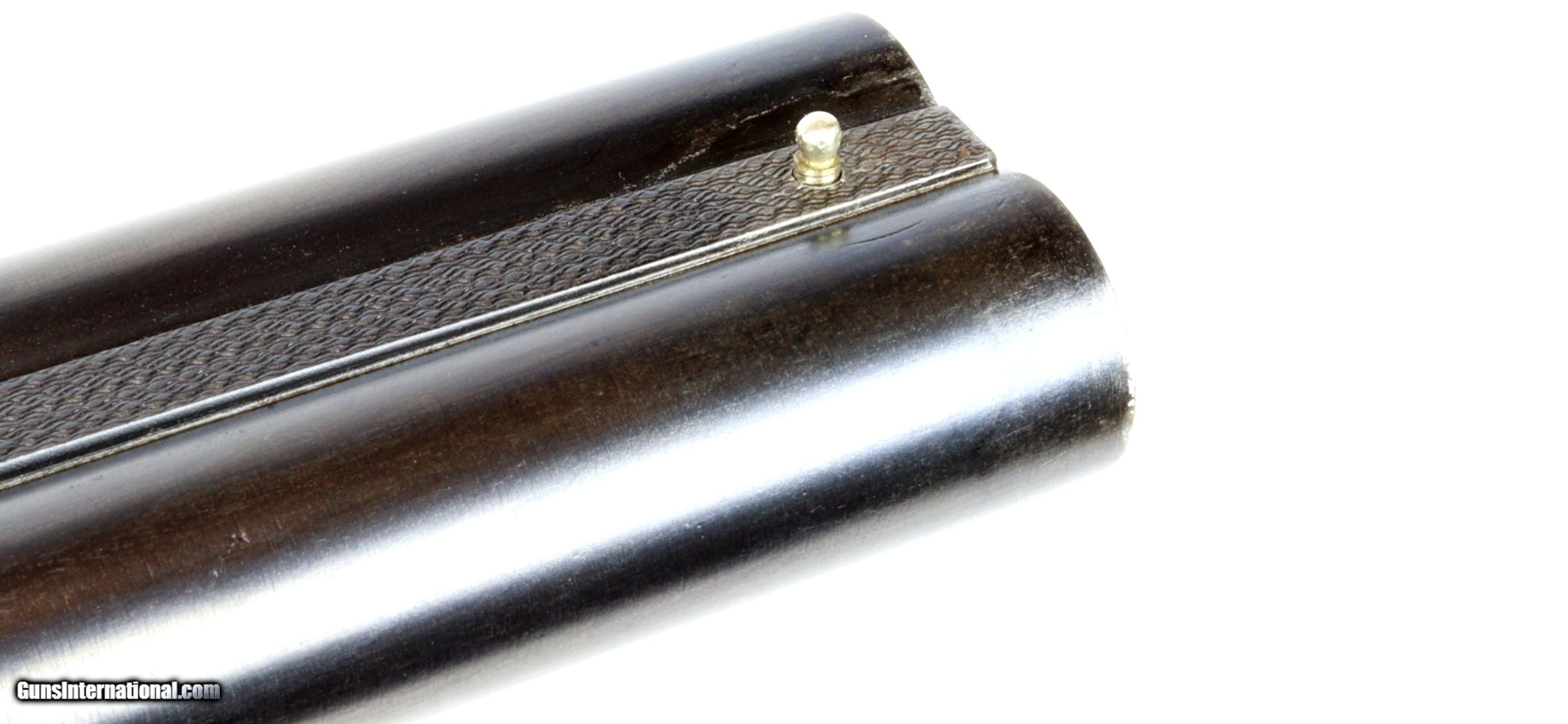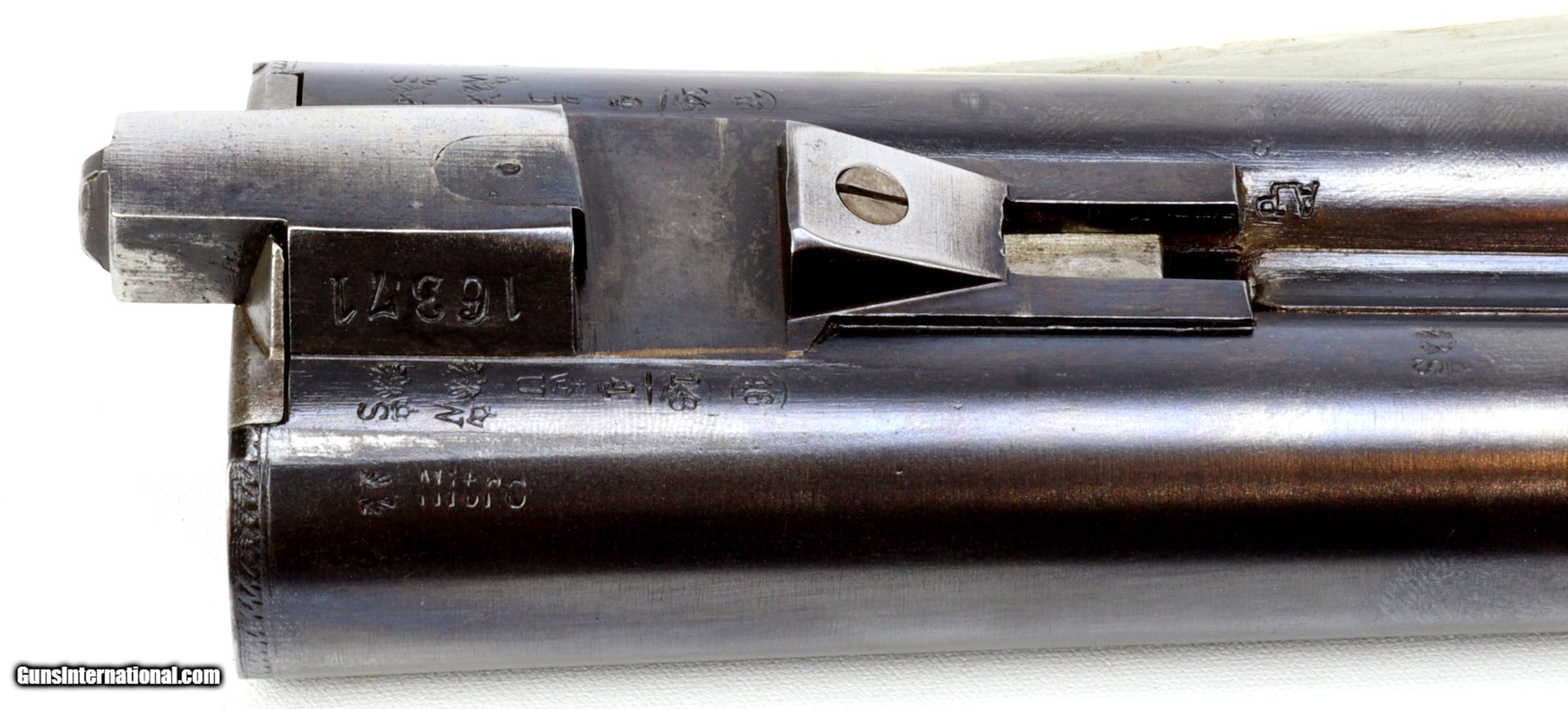Description: VERY NICE W. COLLATH(FRANKFURT) 16GA WITTENER EXCELSIOR SxS, BEAUTIFUL WOOD AND ENGRAVING! Underlever, trigger guard and pommel are made of horn, double triggers, and top tang safety disconnect is functional. MFG: Prior to 1906 S/N: 16371 BBL: 30" with 2 3/4" chambers CHOKES: L-Imp Mod, R-Cyl WT: 6.1lbs TRIGGERS: 1lb, 2.5lbs LOP: 13 1/2", 14 1/2" DAC: 1 1/2" DAH: 3" Very nice blue/color case finish(85% or so), walnut and checkering are beautiful, smooth black butt plate with sling swivels. Bore is lightly frosted with slight pitting in front of, but nearest the chamber. SHIPS INSURED TO THE LOWER 48 FOR $55.00 VISIT SHOOTERSEXCHANGEdotCOM SOLD Shotgun Gauge: 16 Gauge Manufacturer: COLLATH Model: SxS Shotgun Serial Number: 16371 Barrel Length: 30 Chambers: 2 3/4 Condition: VG Metal Condition: VG Wood Condition: VG Bore Condition: Good to VG For Age Triggers: 1lb, 2.5lbs Stock Comb: 1 1/2 Stock Heel: 3 Butt Pad: SMOOTH BLACK LOP: 13 1/2", 14 1/2 Rib: Solid Finish: Blue / Case Colored Weight: 6.1lbs Sights: Single Brass Bead Choke Left: Imp Mod Choke Right: Cyl Engraving: yes |