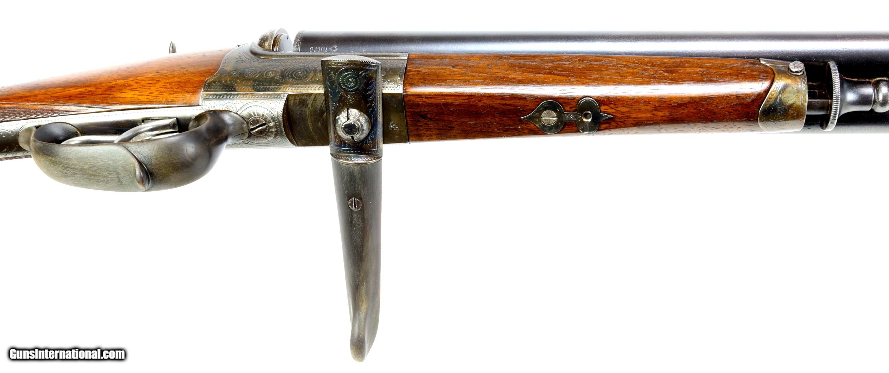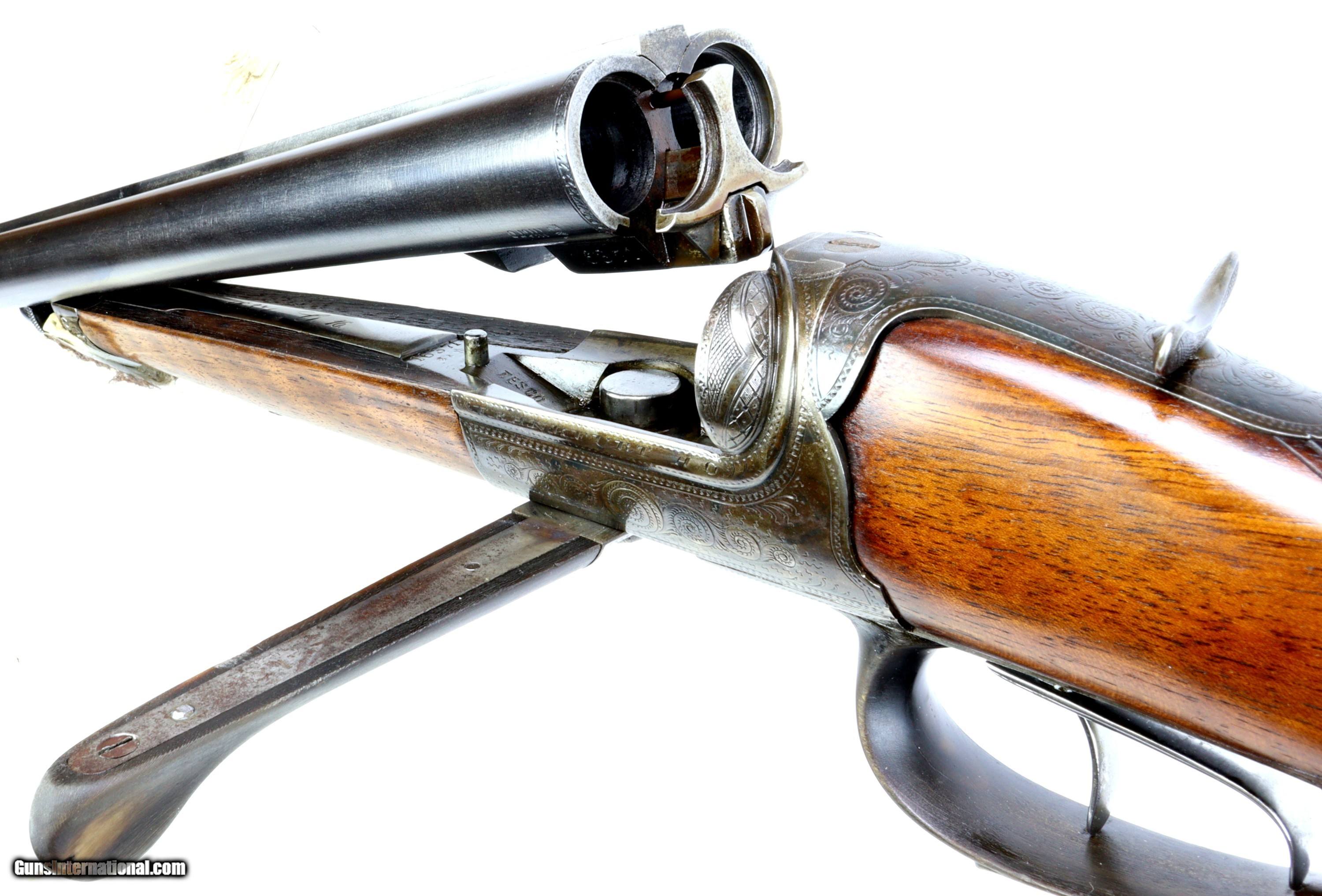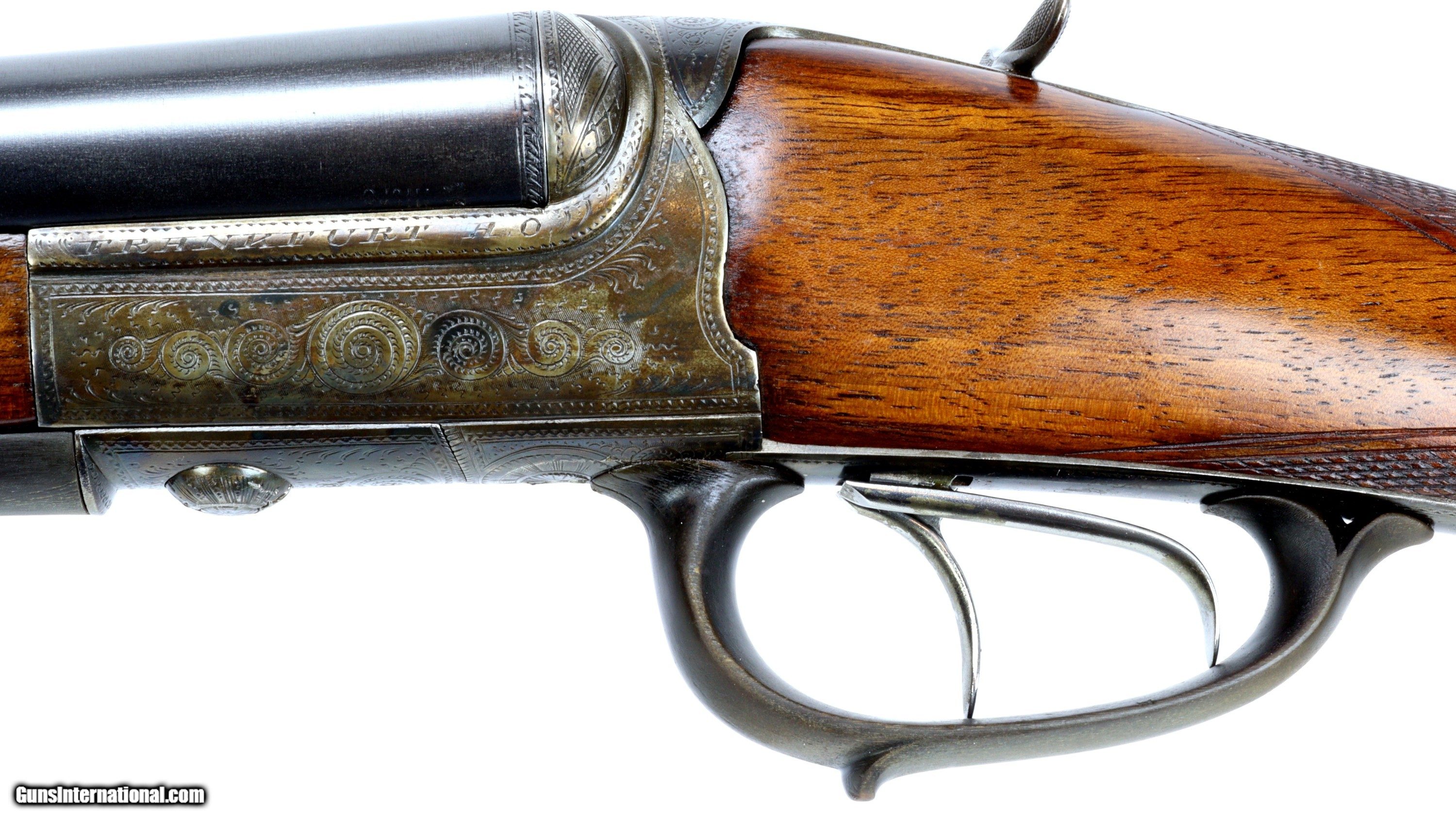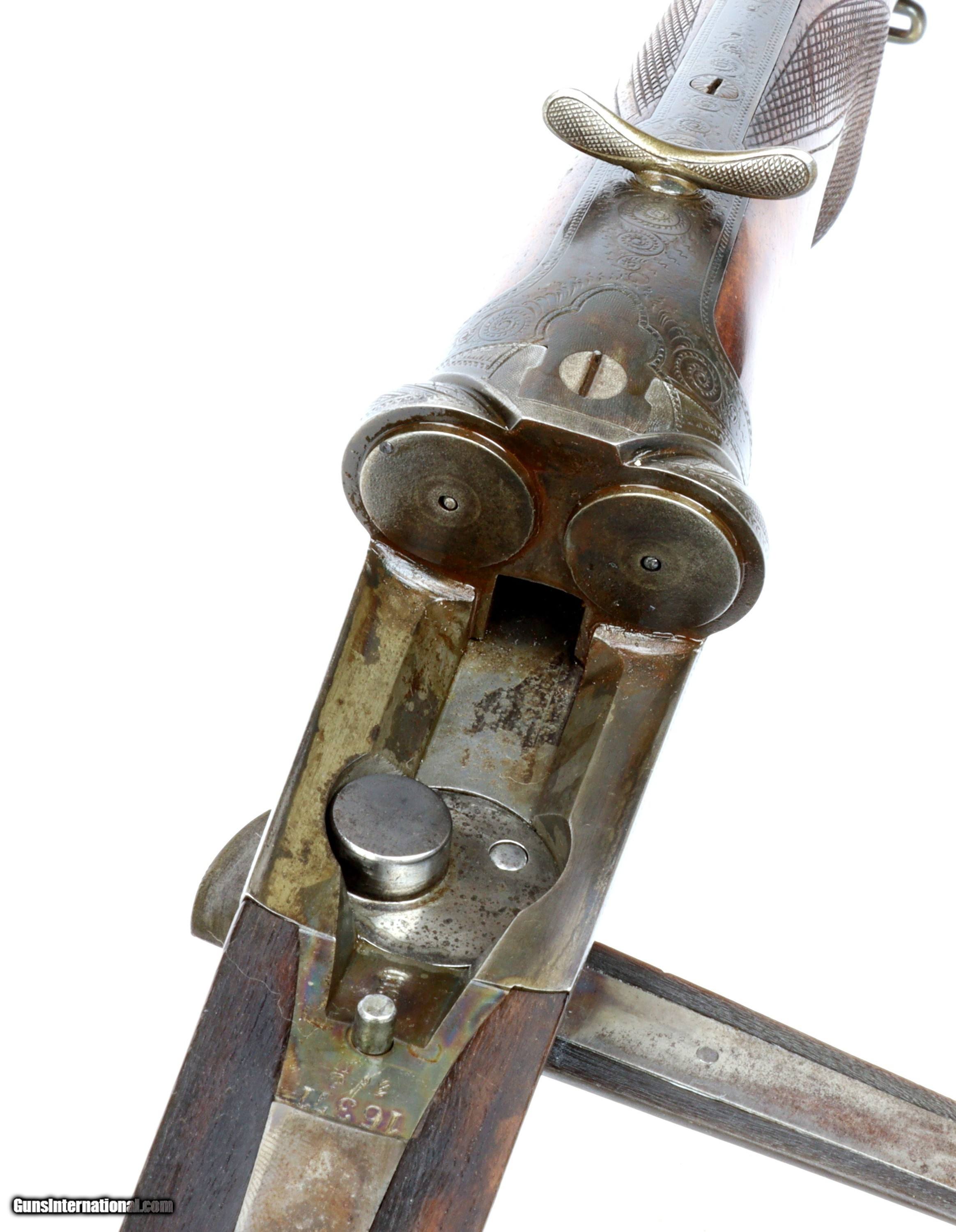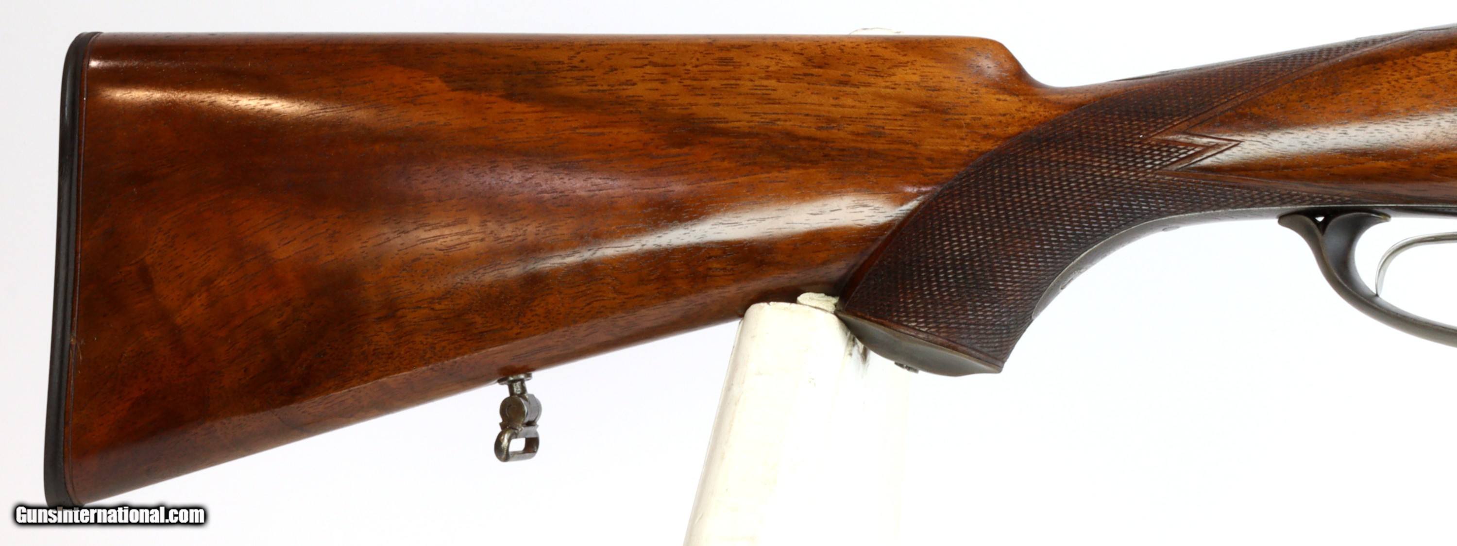 Description: VERY NICE W. COLLATH(FRANKFURT) 16GA WITTENER EXCELSIOR SxS, BEAUTIFUL WOOD AND ENGRAVING! Underlever, trigger guard and pommel are made of horn, double triggers, and top tang safety disconnect is functional. MFG: Prior to 1906 S/N: 16371 BBL: 30" with 2 3/4" chambers CHOKES: L-Imp Mod, R-Cyl WT: 6.1lbs TRIGGERS: 1lb, 2.5lbs LOP: 13 1/2", 14 1/2" DAC: 1 1/2" DAH: 3" Very nice blue/color case finish(85% or so), walnut and checkering are beautiful, smooth black butt plate with sling swivels. Bore is lightly frosted with slight pitting in front of, but nearest the chamber. SHIPS INSURED TO THE LOWER 48 FOR $55.00 VISIT SHOOTERSEXCHANGEdotCOM SOLD Shotgun Gauge: 16 Gauge Manufacturer: COLLATH Model: SxS Shotgun Serial Number: 16371 Barrel Length: 30 Chambers: 2 3/4 Condition: VG Metal Condition: VG Wood Condition: VG Bore Condition: Good to VG For Age Triggers: 1lb, 2.5lbs Stock Comb: 1 1/2 Stock Heel: 3 Butt Pad: SMOOTH BLACK LOP: 13 1/2", 14 1/2 Rib: Solid Finish: Blue / Case Colored Weight: 6.1lbs Sights: Single Brass Bead Choke Left: Imp Mod Choke Right: Cyl Engraving: yes |
