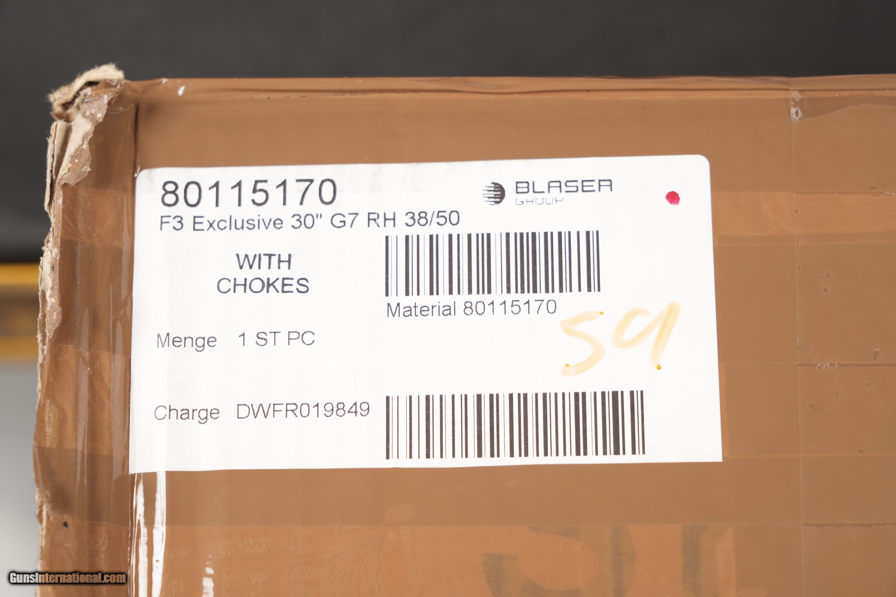 Manufacturer: Blaser Model: F3 Exclusive RH G7 Serial Number: FR019849 Barrel Length: 30 Price: $11,995.00 Buy Now Contact Seller |
