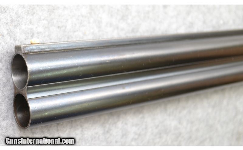 Description: BSW 16 gauge double triggers 2 3/4 inch chambers, with ejectors, solid rib, single white bead, and cylinder choked. The action as turned a nice dull gray with some traces of case color, barrels at the muzzle shows some blue wear. The bores are bright however the bottom barrel shows some very light freckling and one ding about half an inch in front of the fore end. Stock and fore end have been professionally refinish with re-cut checkering, with a nicely fit Pachmayr decelerator brown recoil pad. There are a few slight handling marks none are through the finish The pistol grip stock has horn grip cap, with horn trigger guard, you can see a small crack at the head of the stock on the right hand side that runs about half and inch. SOLD Manufacturer: 1938 Caliber Info: 16 Gauge Chambers: 2 3/4 inch chambers with ejectors Metal Condition: Action as turned a nice dull gray with some traces of case color, barrels at the muzzle shows some blue wear with one ding on the bottom barrel. Wood Condition: Stock and fore end have been professionally refinish with re-cut checkering, with a nicely fit Pachmayr decelerator brown recoil pad. There are a few slight handling marks none are through the finish Bore Condition: Bright bore with a little light freckling and one ding bottom barrel right in front of the fore end. Barrels: 26 inch barrels Triggers: Blued double triggers Stock Dimensions: 13 3/4 inches LOP from front trigger, 2 inches DAC, 2 3/4 inches DAH, 1/8 inch cast off Fore End: Three piece fore end has been professionally refinish re-cut checkering, shows some slight handling marks none are through the finish Butt Pad: Pachmayr decelerator recoil pad Weight: 6 lbs 12 oz Sights: Single white bead Chokes: Cylinder chokes Item Location: Mitchell, SD |