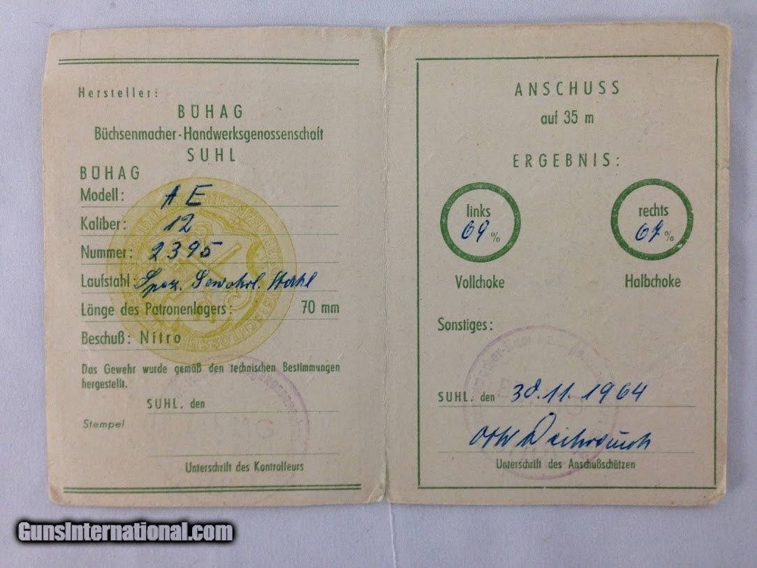 Description: Guns Listing ID: 47014 THIS IS A COLLECTORS GUN FROM GERMANY 1964 COMES WITH ORIGINAL PAPERWORK LEATHER CASE. SOLD Manufacturer: BUHAG SUHL Model: AE Condition: Used - Non-Certified Barrels: 28.5 BARREL Finish: BLUED |