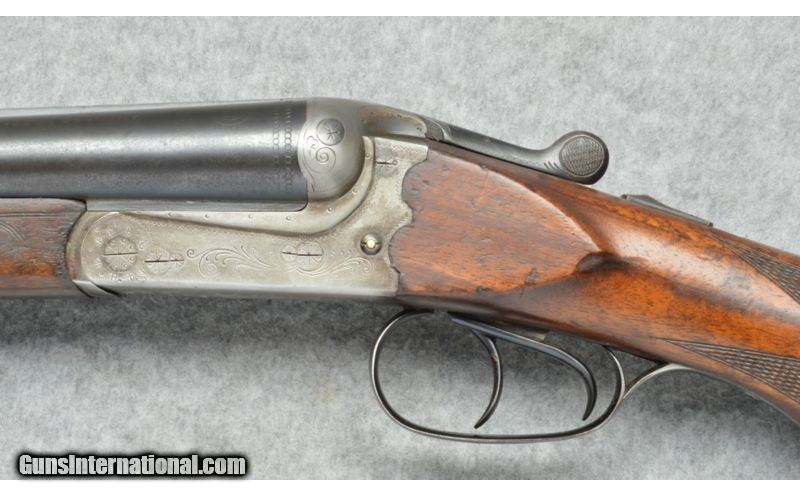 Description: SOLD Manufacturer: October 1971. Caliber Info: 12 Ga. Chambers: Break action two round capacity, 2 3/4 inch chambers. Metal Condition: Fair to good, minor surface pitting on barrels, case finish is mostly missing from the receiver. Wood Condition: Fair to good, small gouge in the fore-end, worn checkering, small dents in the stock. Bore Condition: Good, minor pitting at the forcing cones. Barrels: 30 inch side by side barrels. Triggers: Two triggers, tang mounted safety. Stock: Checkered pistol grip stock with Monte Carlo cheek piece. Stock Dimensions: 14 3/8 inch length of pull front trigger, 13 3/8 inch length of pull rear trigger. Fore End: Checkered fore-end matches the stock. Butt Pad: Black synthetic butt plate, has a chip in the top left. Weight: 7 1/4 pounds. Sights: White bead at the muzzle. Chokes: Fixed chokes, left is Extra Full, right is Full. Item Location: Berlin, MA |