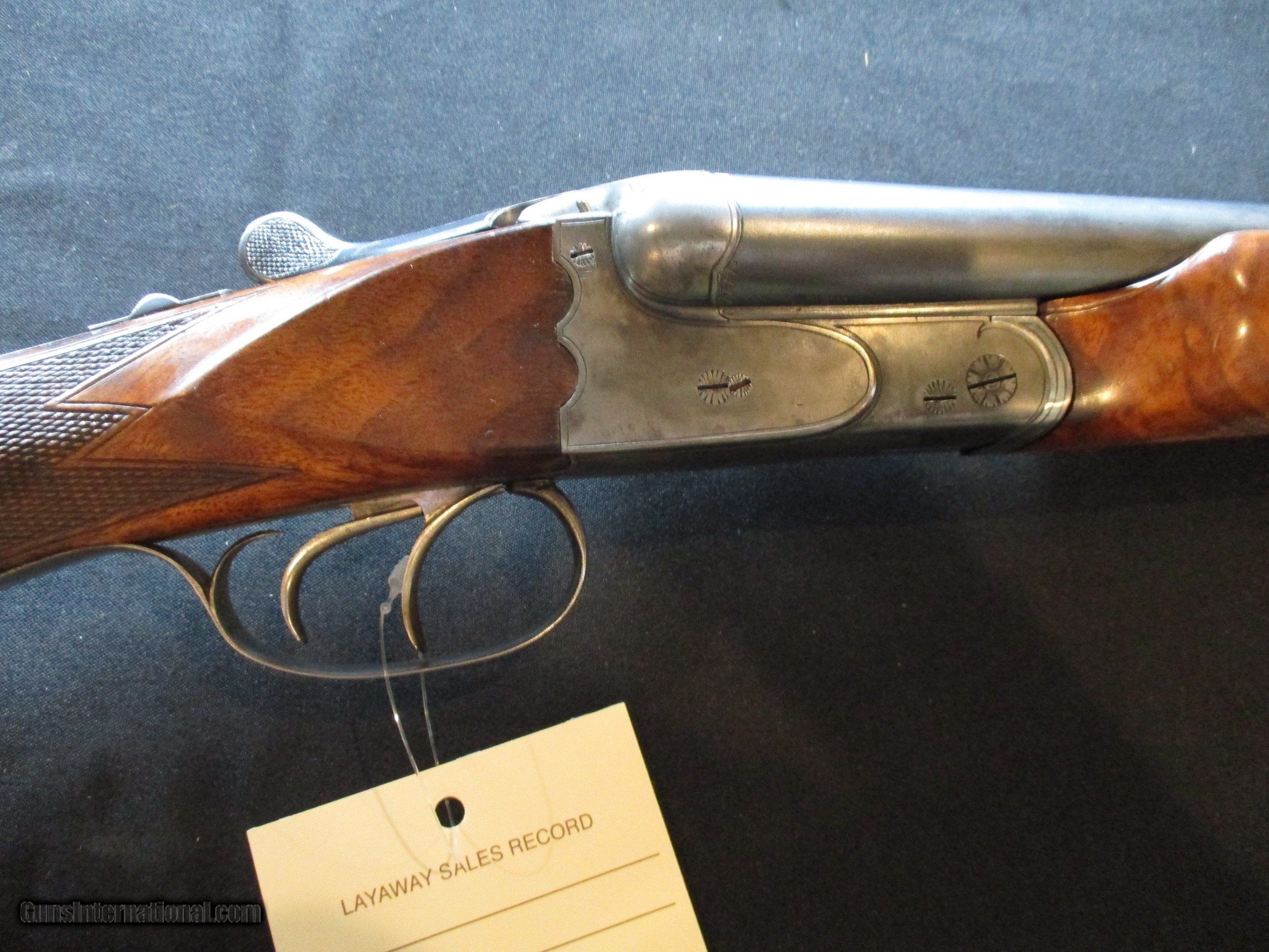 Description: German Unmarked box lock, 16ga, 28.5" barrels, double trigger, ejectors, 2.75" chambers. Sn is 93xx and all numbers match. Nice clean old classic gun! 1 1/2 DAC 2 1/2 DAH 3/16" Cast off 14 5/8" LOP 6 lb, 7 oz. Email me if you would like these pics sent to you, they will come through bigger and better than on the listing page here. Email me with any questions. I am a store front dealer, and I will close s if the gun sells locally. Once ahas reached my reserve, I will pull it from my shelves. Please check your local laws to confirm it is legal to own in your state! Buyer pays $25 shipping and insurance to your FFL, in the lower 48. AK, HI or PR is extra. I will ship to California, NO PROBLEM! All my guns come with a non firing, 3 day unconditional return privilege, from the day UPS delivers to your dealer. Buyer pays shipping both ways if the gun comes back. I can add a new hard case by PLANO for secure shipping for $25 if the buyer wishes (highly recommended, cheap insurance, really helps keep the UPS monster from eating my guns!). No sales tax on guns ship out of Kansas, guns sold in Kansas are subject to Kansas sales tax. I am a licensed FFL, and will include a copy of my FFL with the gun for your dealers records. I will ship to a C&R if the gun is eligible (you look it up!). I will ship to California, but you need to confirm the gun is legal where you are, California or other. I am always looking for good clean, old original Winchesters to buy, consign, or trade, especially pre '64's model 70's and model 54's. WE ALSO TRADE FOR CLASSIC CARS AND TRUCKS! I will leave feedback as soon as the buyer leaves feedback on me. Email me with any questions, and good luck! SOLD |