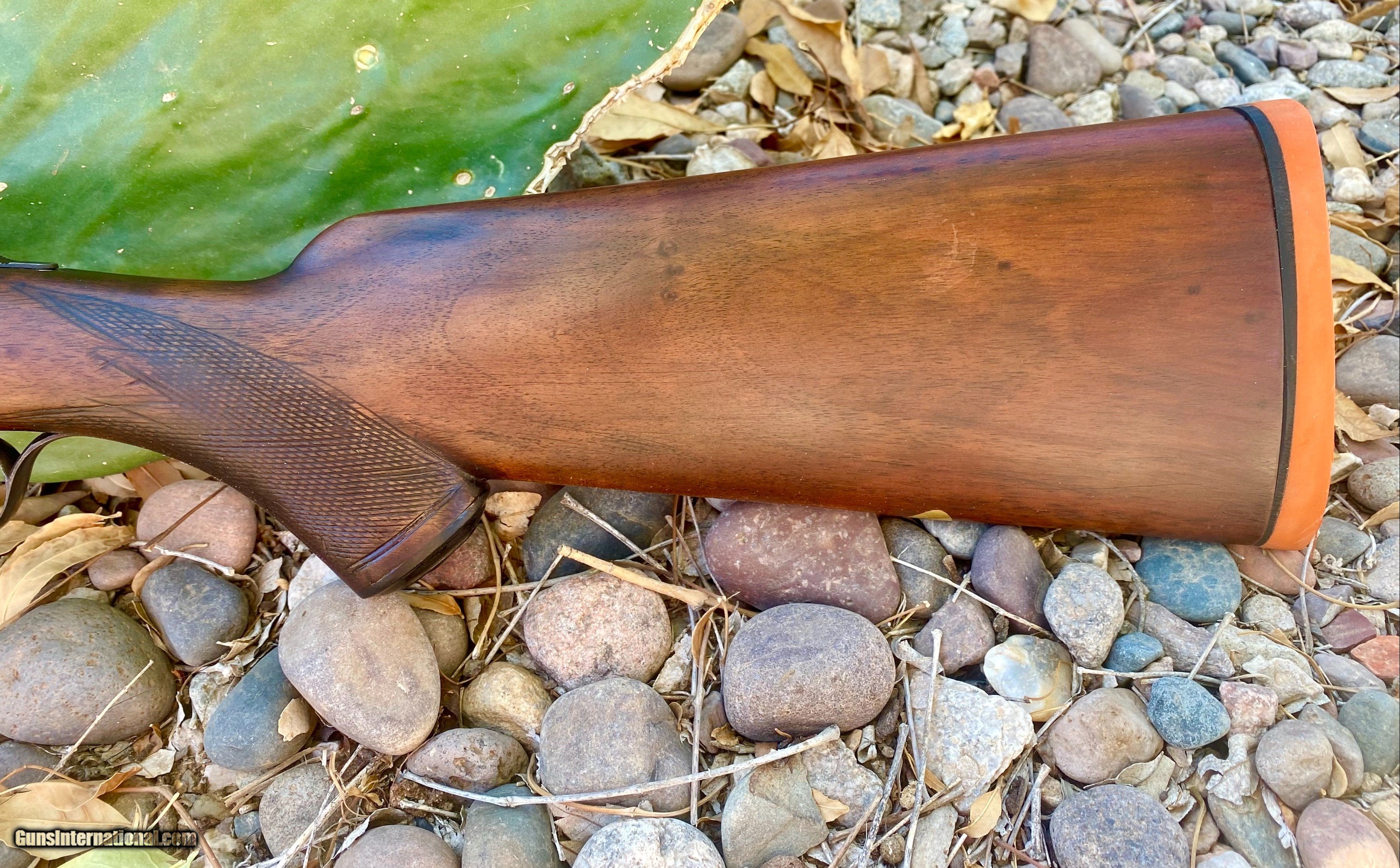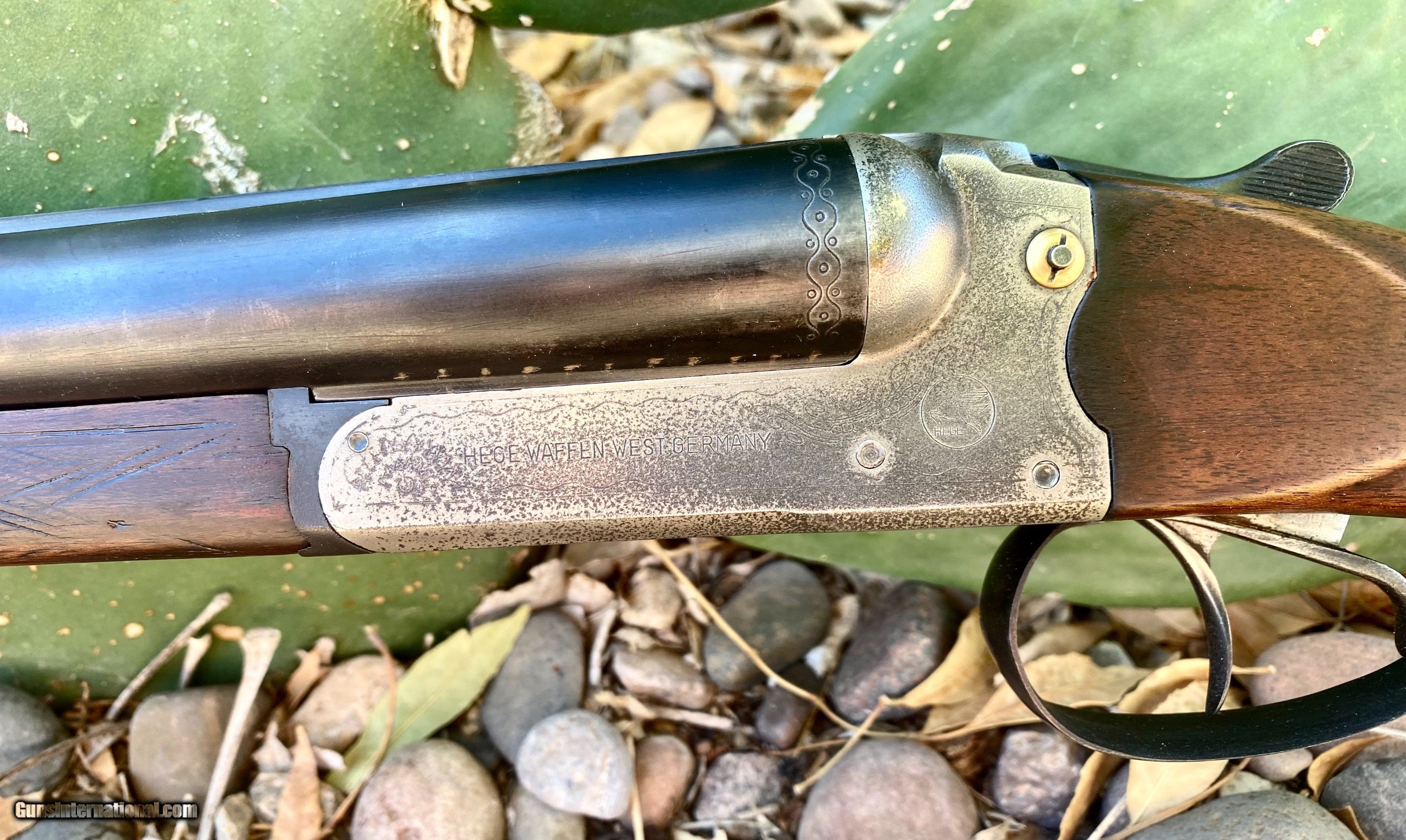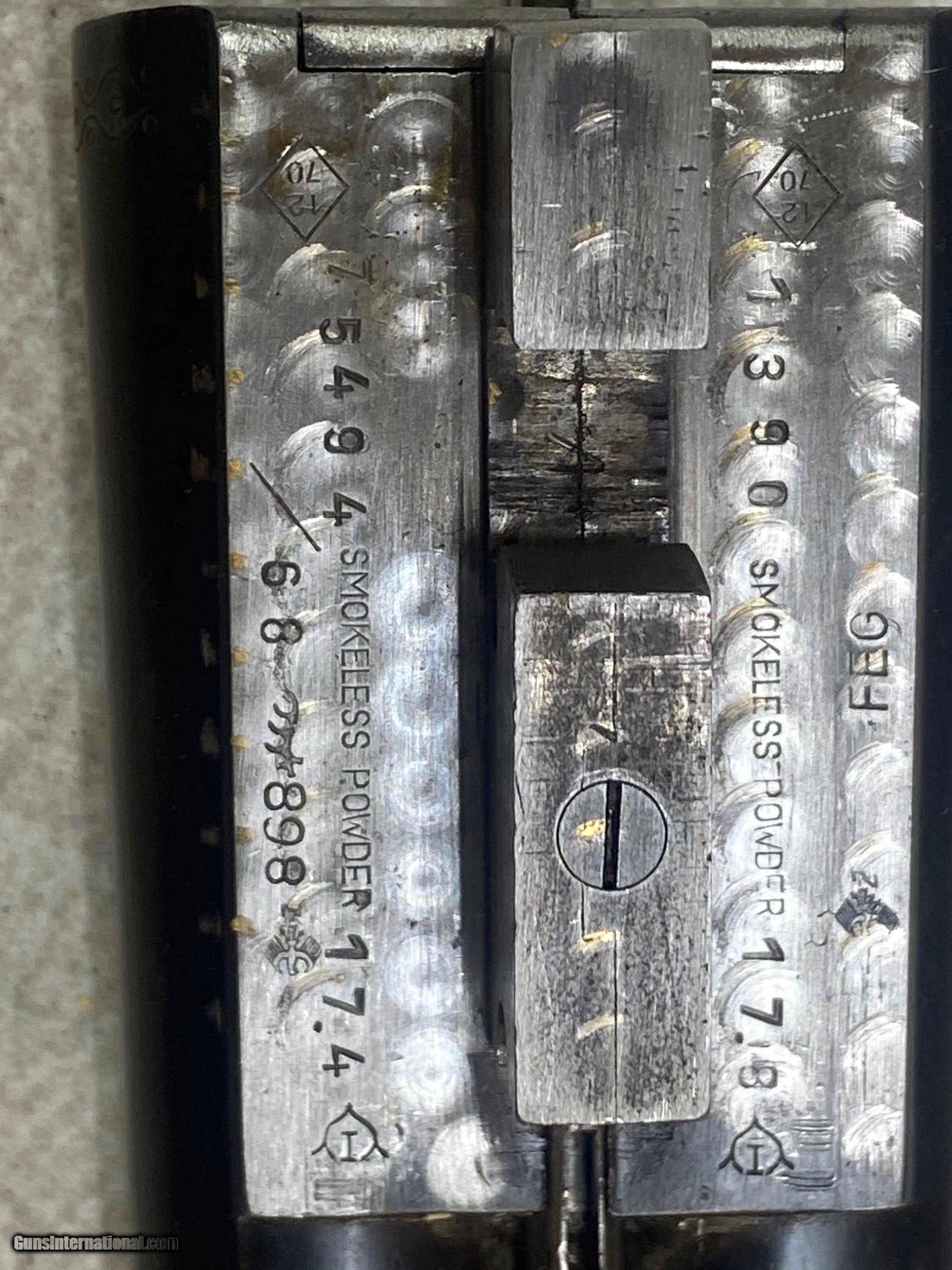 Description: 12 GA scallped back boxlock ejector with cocking indicators. Made in West Germany. Weighs 6 1/2#. 28" barrels with nice blue. The bores are bright and measure .719 right and .719 left. Choks are .020 right and .035 left. Double triggers. Strong, nicely timed ejectors. 2 3/4" chambers. The action is tight and on face. The wood is in good shape with no missing pieces or cracks. Oil finish. LOP is 14 3/4" to a 1/2" rubber pad. DAC 1 1/4", DAH 2". Pistol grip stock with a splinter fore-end. This gun will someone a really nice, lightweight shooter at a bargain price. SOLD Shotgun Gauge: 12 Gauge |