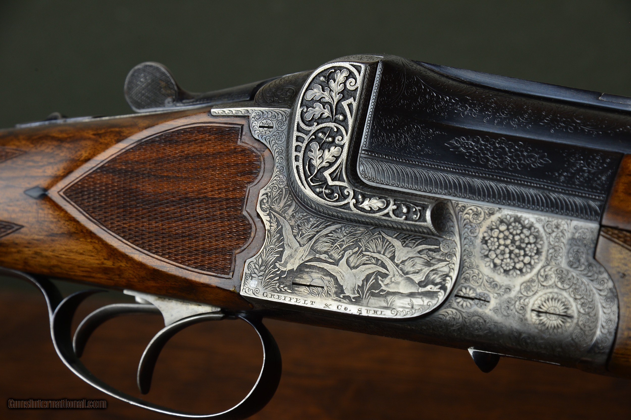 Greifelt & Co. 12 Ga Boxlock Ejector Imported by VL&D with Profuse Engraving and Highly Figured European Walnut Stock – 30” Barrels