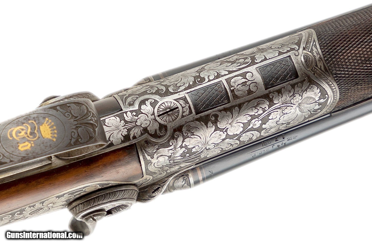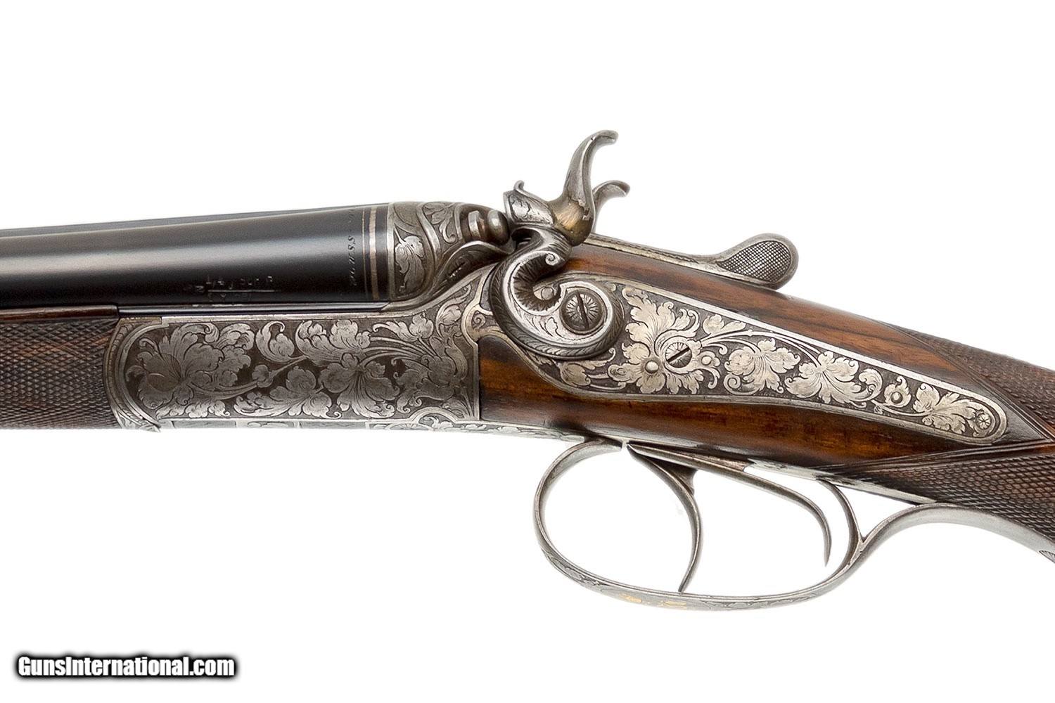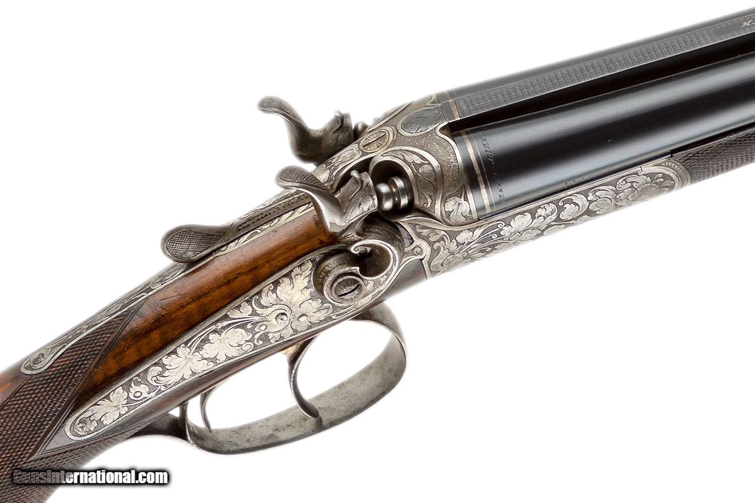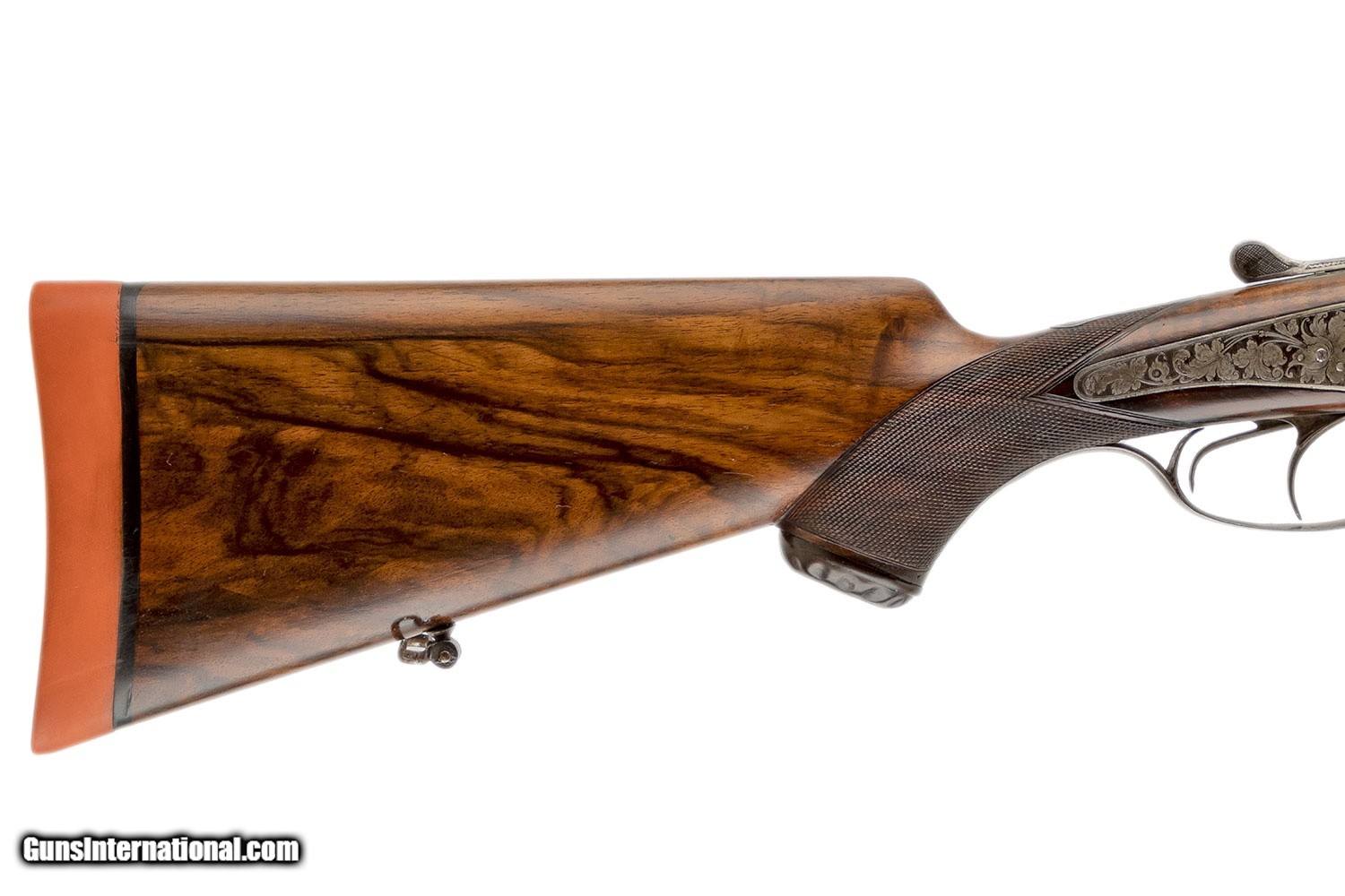 Description: SN# 191XX 26 7/8" SOLID RIB BARRELS (.018 AND .025 CONSTRICTIONS) 2 1/2" CHAMBERS RIGHT BARREL GERMAN PROOFED 28 GA FOR BLACK POWDER WALLS: .023 RT, .024 LT BORES: .555 BOTH BARRELS DOUBLE TRIGGERS EXTRACTORS SPLINTER FOREARM PISTOL GRIP SILVERS STYLE RECOIL PAD CHEEK PIECE SLING SWIVELS GREAT CONDITION WITH SOME LIGHT HANDLING IN WOOD BORES ARE BRIGHT AND SHINY RIGHT BARREL SHOWS SIGN OF "REPAIRED" DENT ABOUT 10" FROM MUZZLE LEFT HAMMER HAS BEEN REPAIRED 5LBS 0 OZ 2 3/8" DAH 1 1/4" DAC 13" LOP SOLD |