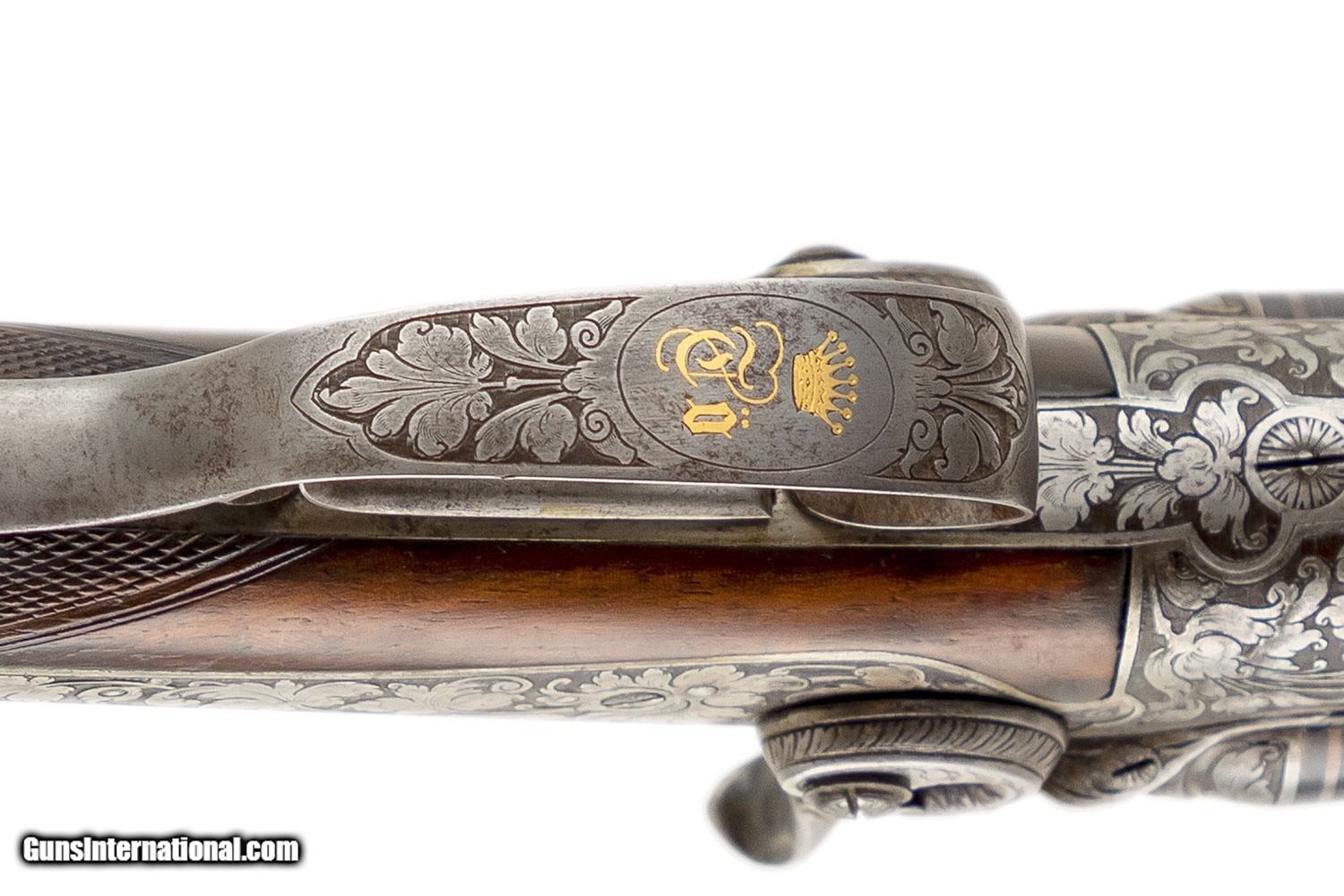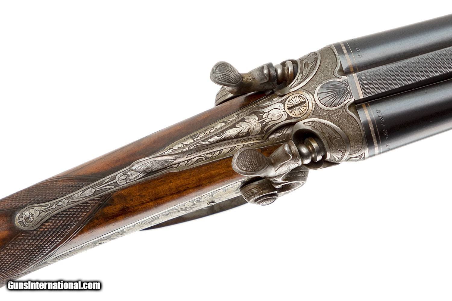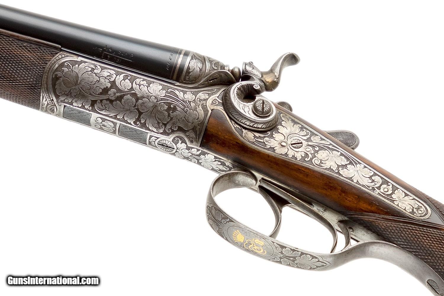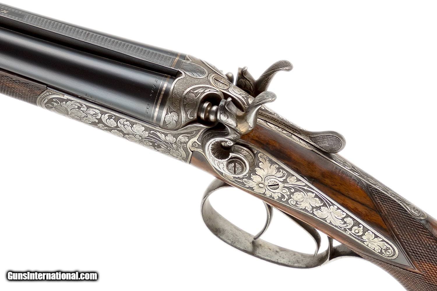Description: SN# 191XX 26 7/8" SOLID RIB BARRELS (.018 AND .025 CONSTRICTIONS) 2 1/2" CHAMBERS RIGHT BARREL GERMAN PROOFED 28 GA FOR BLACK POWDER WALLS: .023 RT, .024 LT BORES: .555 BOTH BARRELS DOUBLE TRIGGERS EXTRACTORS SPLINTER FOREARM PISTOL GRIP SILVERS STYLE RECOIL PAD CHEEK PIECE SLING SWIVELS GREAT CONDITION WITH SOME LIGHT HANDLING IN WOOD BORES ARE BRIGHT AND SHINY RIGHT BARREL SHOWS SIGN OF "REPAIRED" DENT ABOUT 10" FROM MUZZLE LEFT HAMMER HAS BEEN REPAIRED 5LBS 0 OZ 2 3/8" DAH 1 1/4" DAC 13" LOP SOLD |