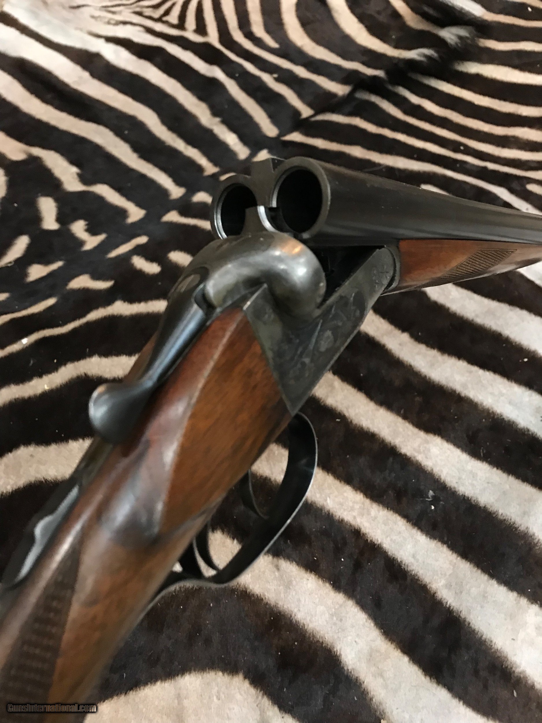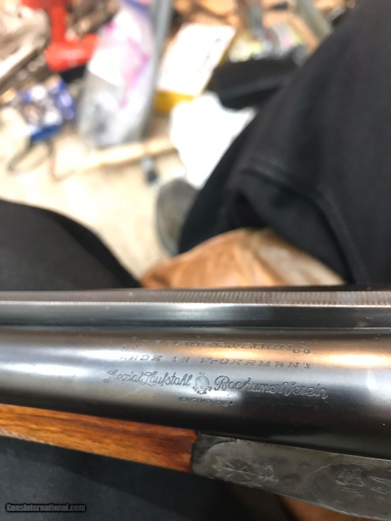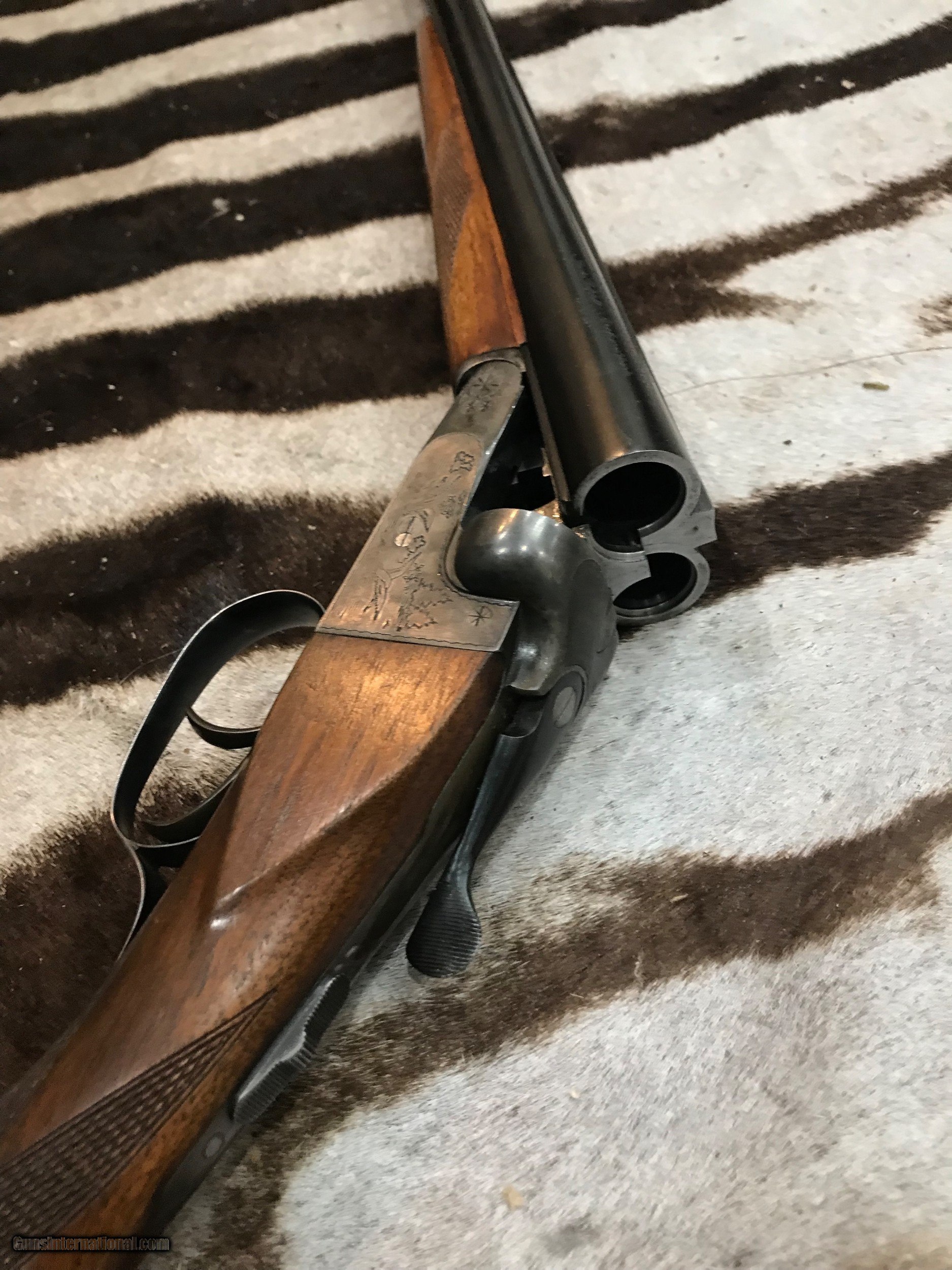 Description: Very nice JP Sauer model 60 double in 12 gauge, the engraved receiver retains about 60% of the color casing, barrels are 100% blue and 100% bore, wood is about 80% condition with some handling marks but nothing major. Overall the gun is in excellent working condition, 72 cm (28-1/5") barrels full and modified, extractors 2-34" chambers. $1200.00 plus shipping with insurance . SOLD SOLD Curio/Relic: Yes Manufacturer: J.P. Sauer & Sohn Model: Double Caliber Info: 12 gauge Chambers: 2-3/4” Ejectors: No Condition: Used Metal Condition: 90% Wood Condition: 80% Bore Condition: 100% Barrels: 28-1/5” Action: Boxlock Triggers: Double Gauge Info: 12 Stock: European walnut original Butt Pad: Original LOP: 14-1/5” Rib: Yes Weight: 6 pounds 6 ounces Chokes: Fixed Choke Left: Modified Choke Right: Full Engraving: Yes Item Location: Texas Proof:Nitro: Yes |